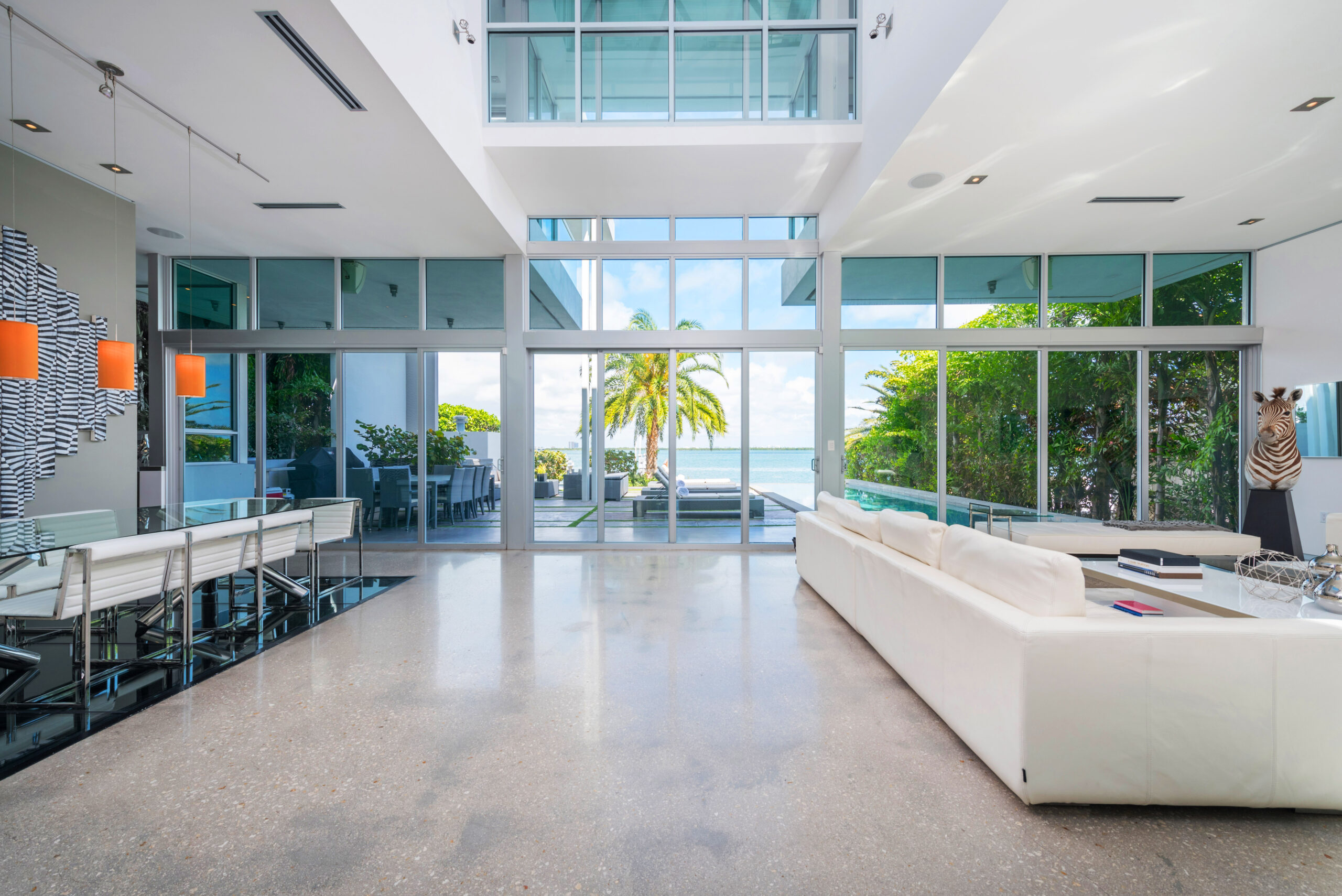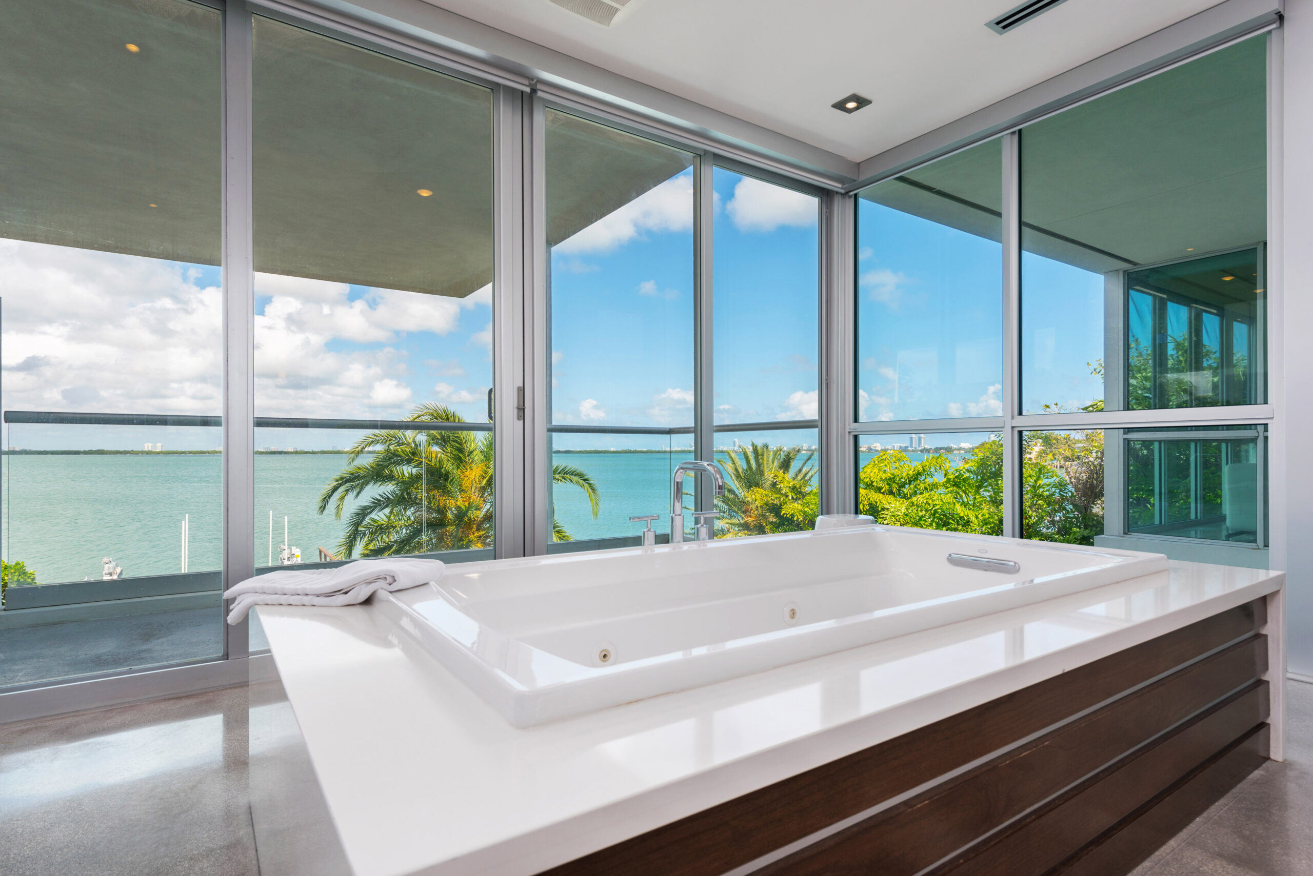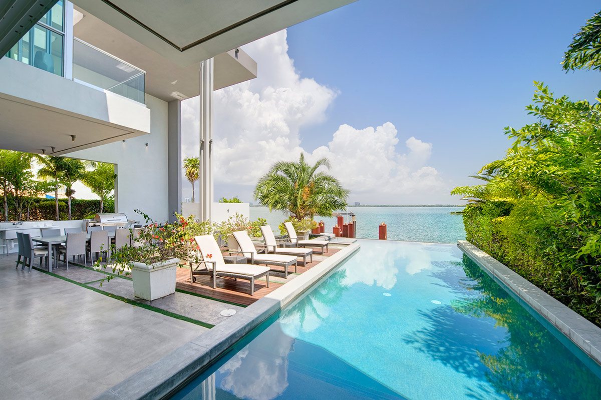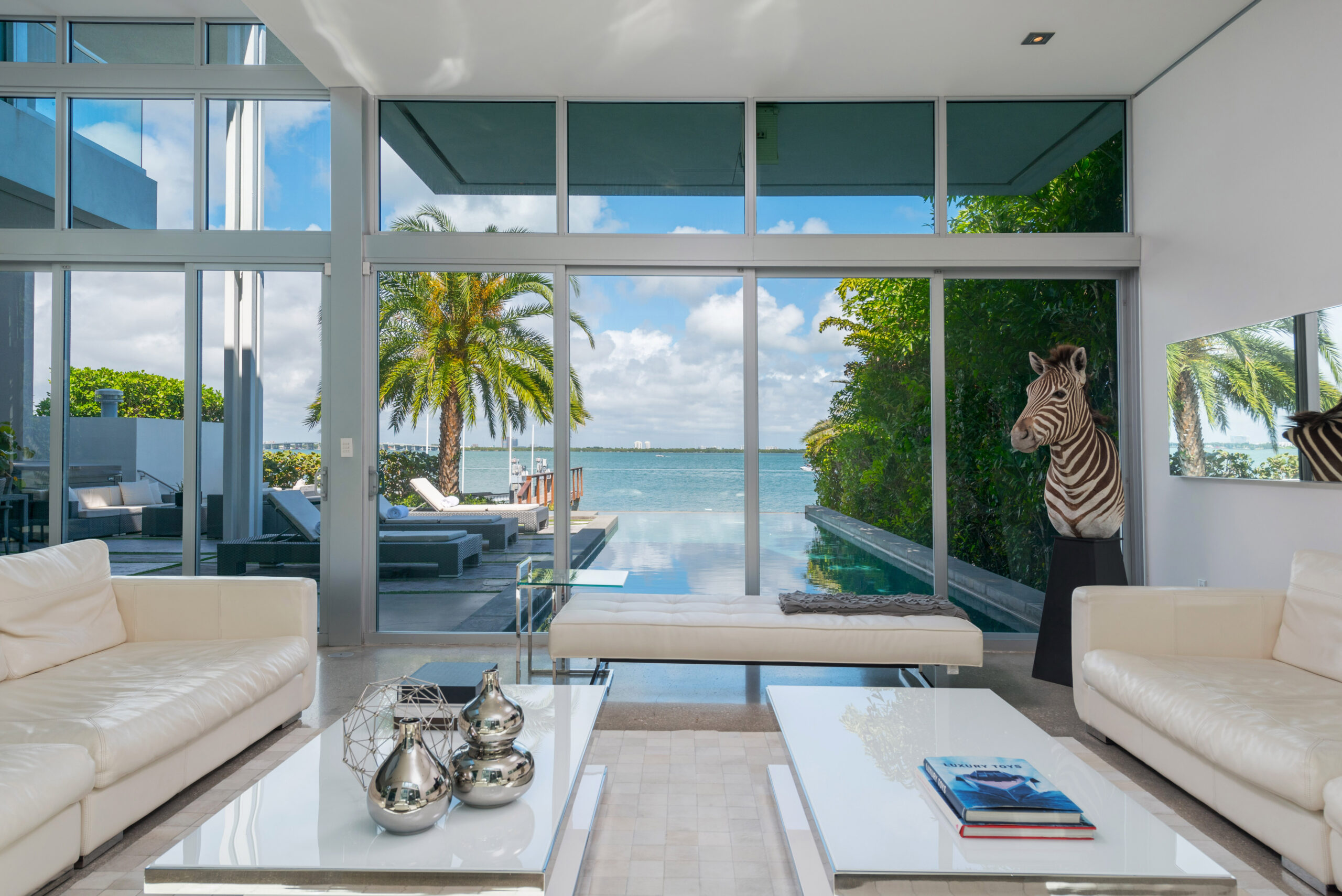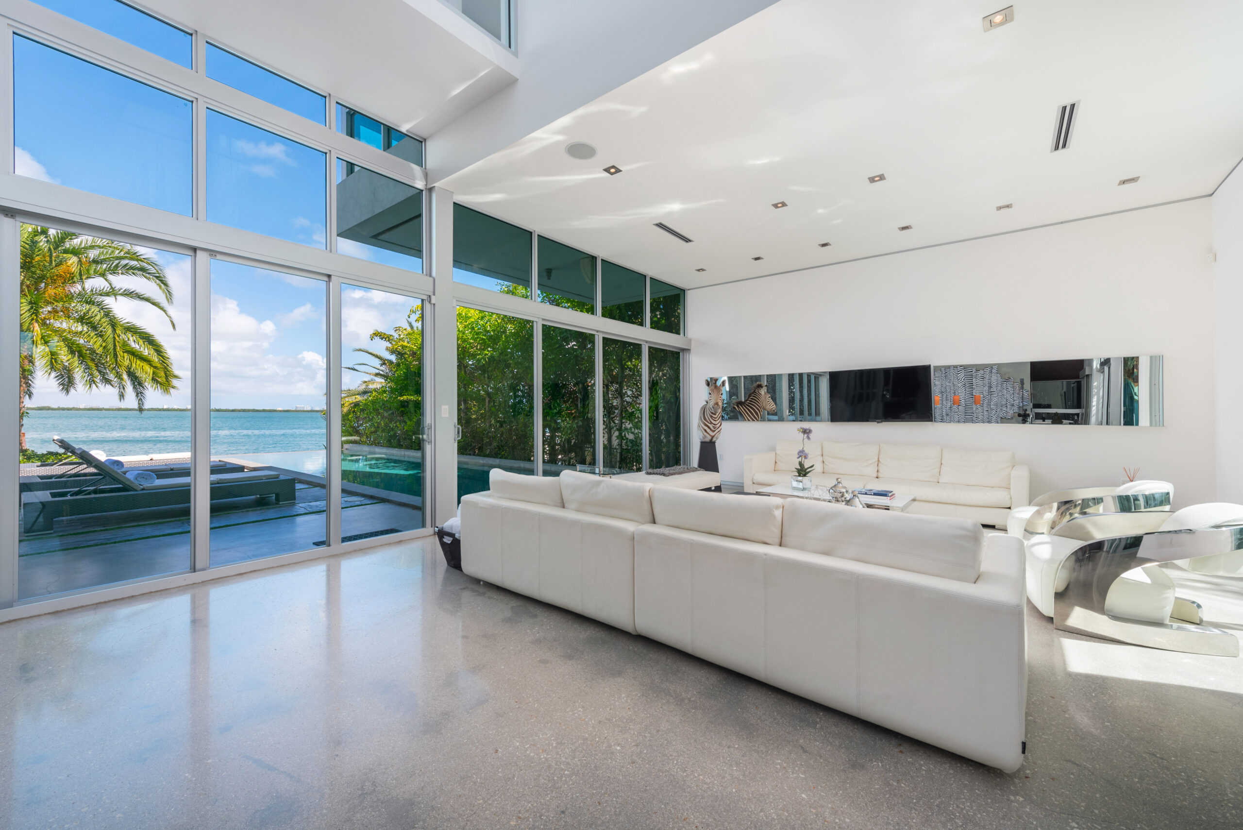 Experience the epitome of luxury living in this Gold AIA award-winning modern waterfront residence, nestled in the highly sought-after Venetian Islands. This stunning home offers breathtaking, unobstructed bay views from nearly every room, allowing you to immerse yourself in the serenity of the surrounding waters. The design features expansive floor-to-ceiling windows that invite natural light and seamlessly connect indoor and outdoor spaces, leading to a heated infinity pool that appears to merge with the horizon. The open floor plan is complemented by top-of-the-line finishes, creating an elegant yet inviting atmosphere.