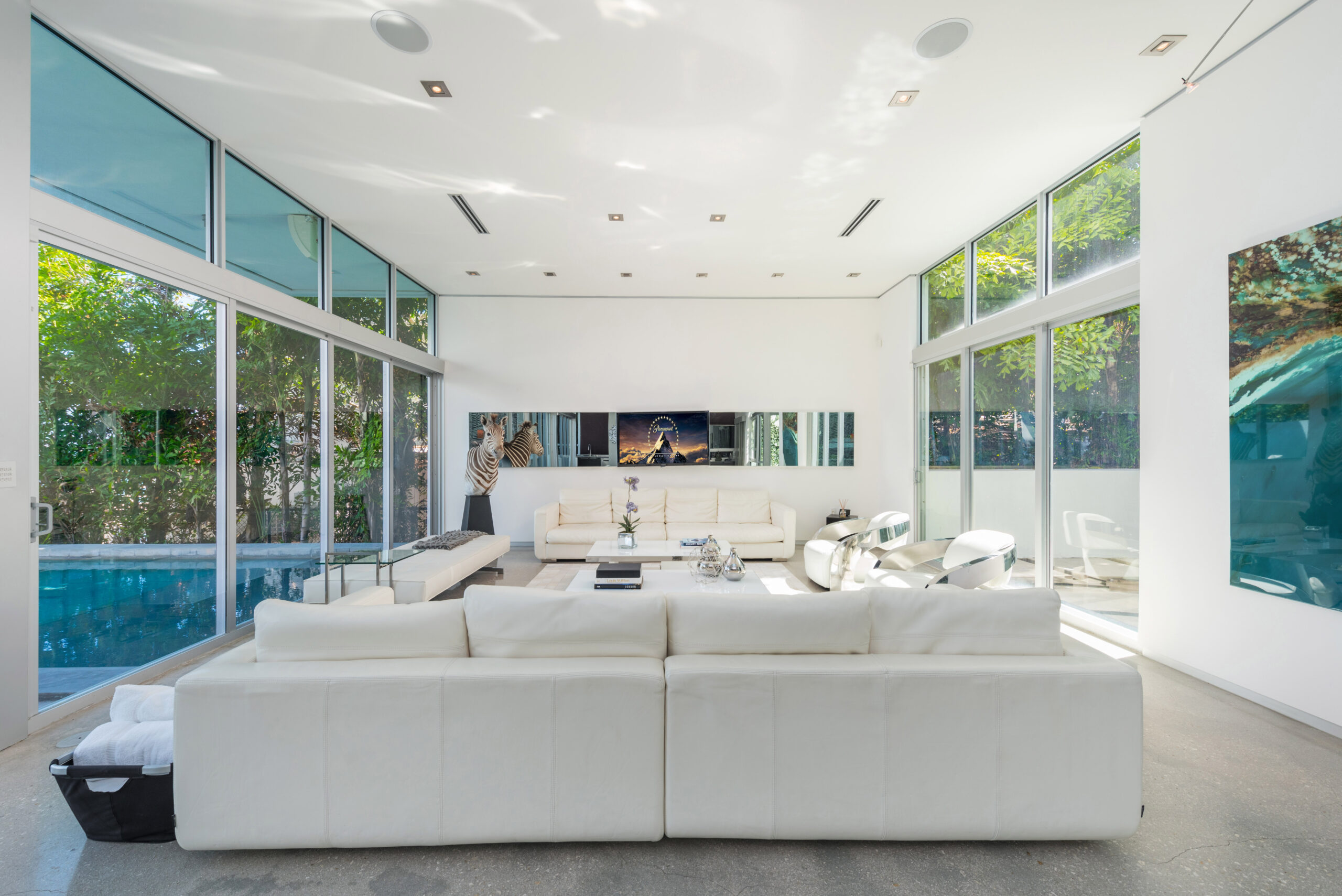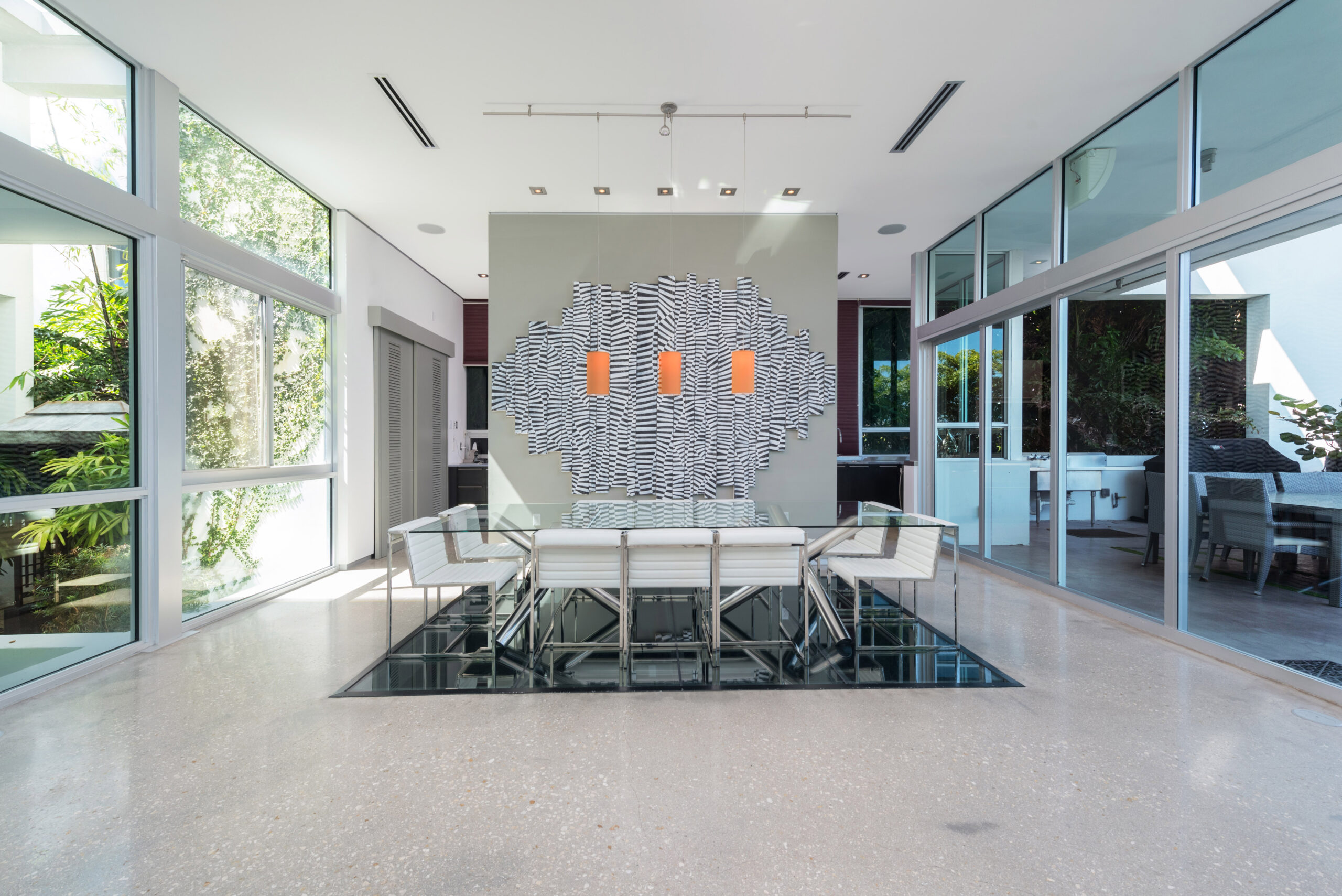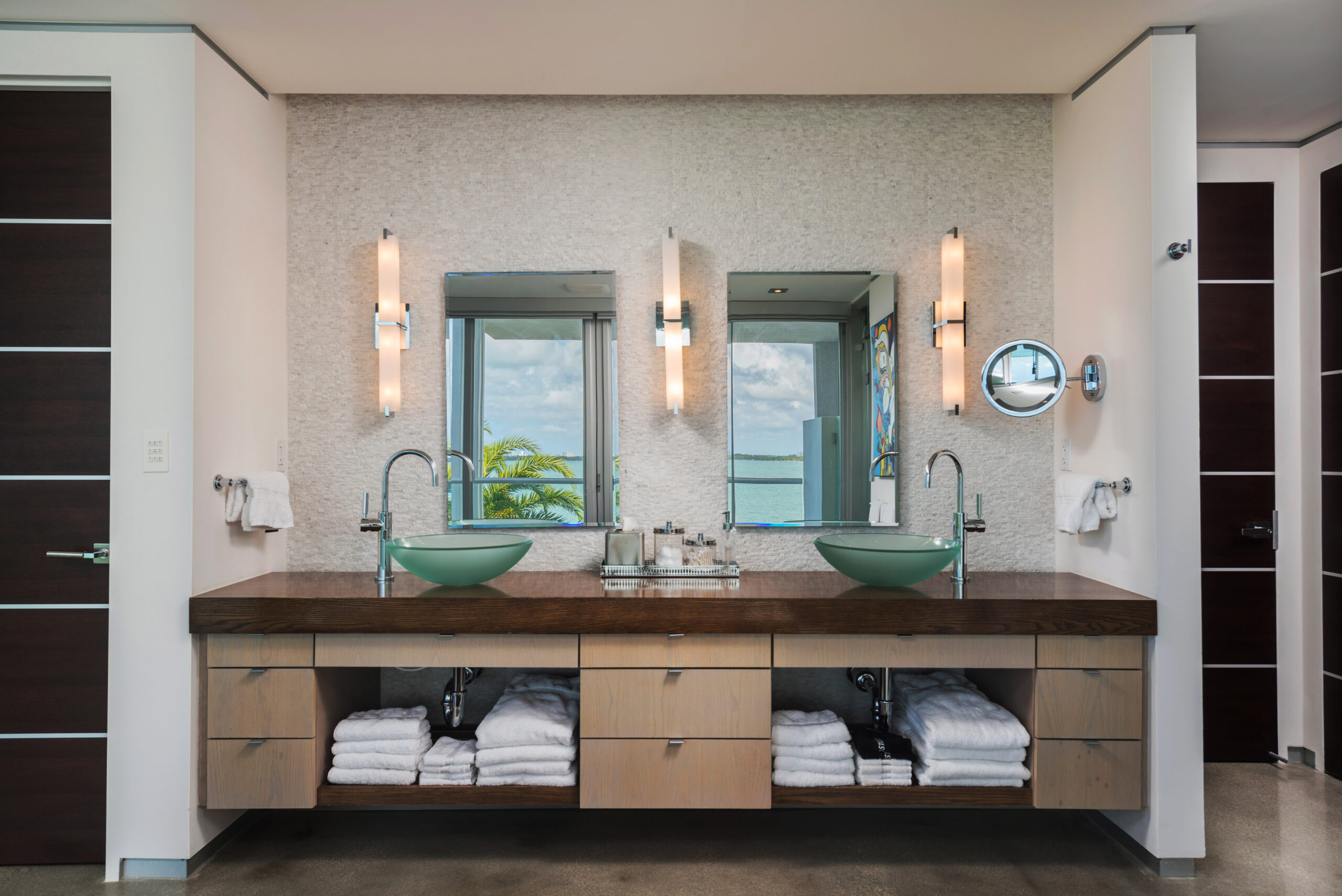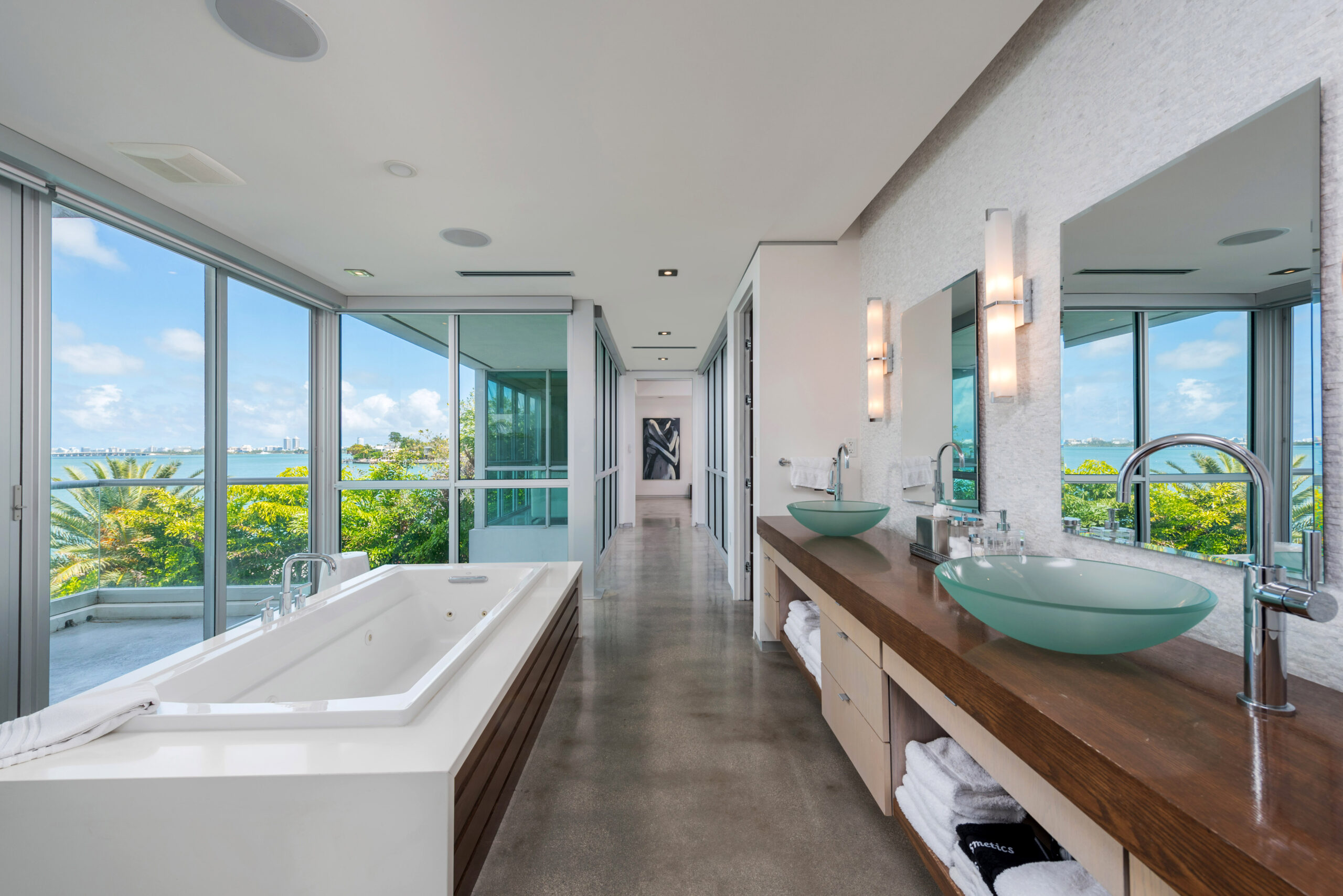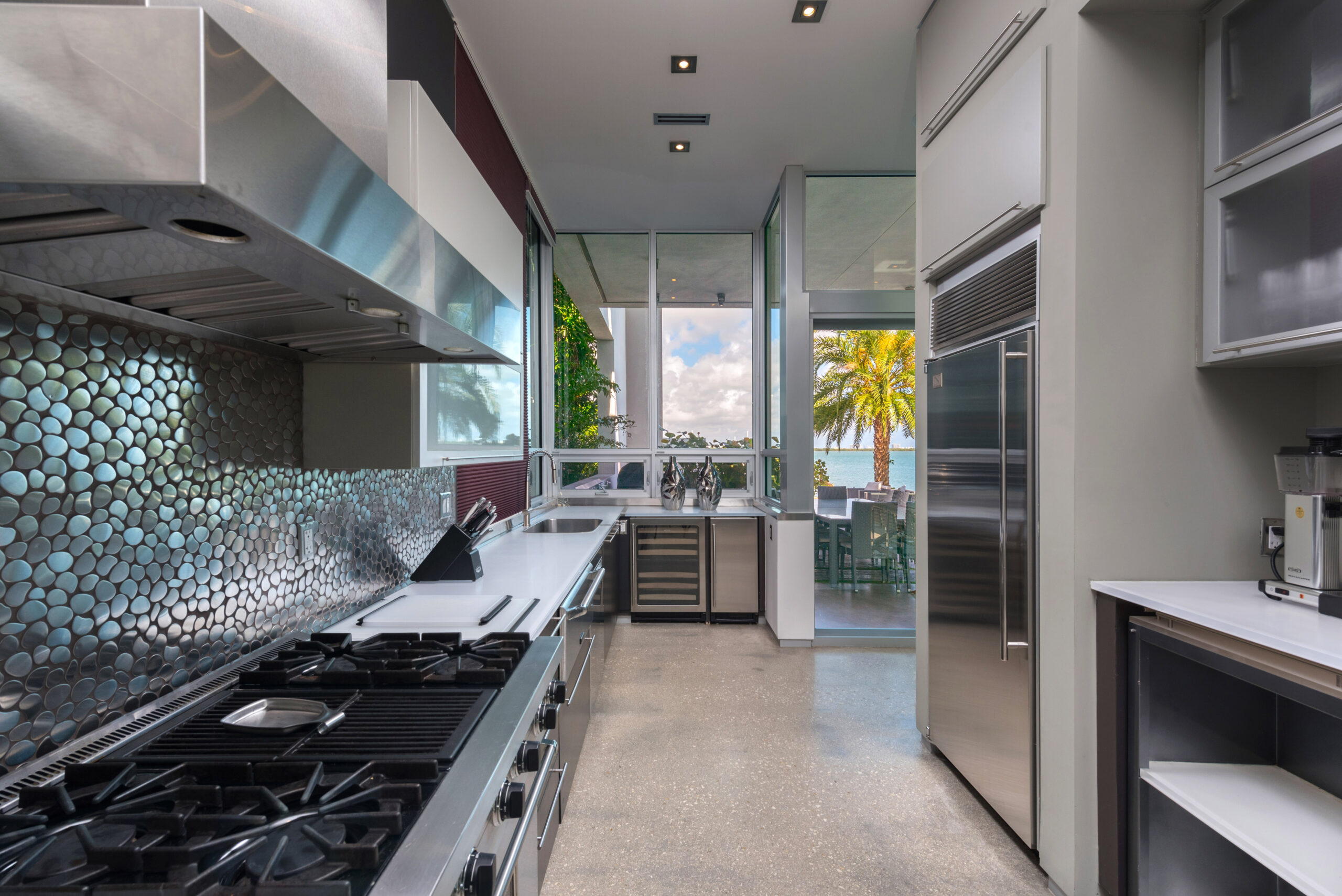 Experience the epitome of luxury living in this Gold AIA award-winning modern waterfront residence, nestled in the highly sought-after Venetian Islands. This stunning home offers breathtaking, unobstructed bay views from nearly every room, allowing you to immerse yourself in the serenity of the surrounding waters. The design features expansive floor-to-ceiling windows that invite natural light and seamlessly connect indoor and outdoor spaces, leading to a heated infinity pool that appears to merge with the horizon. The open floor plan is complemented by top-of-the-line finishes, creating an elegant yet inviting atmosphere.