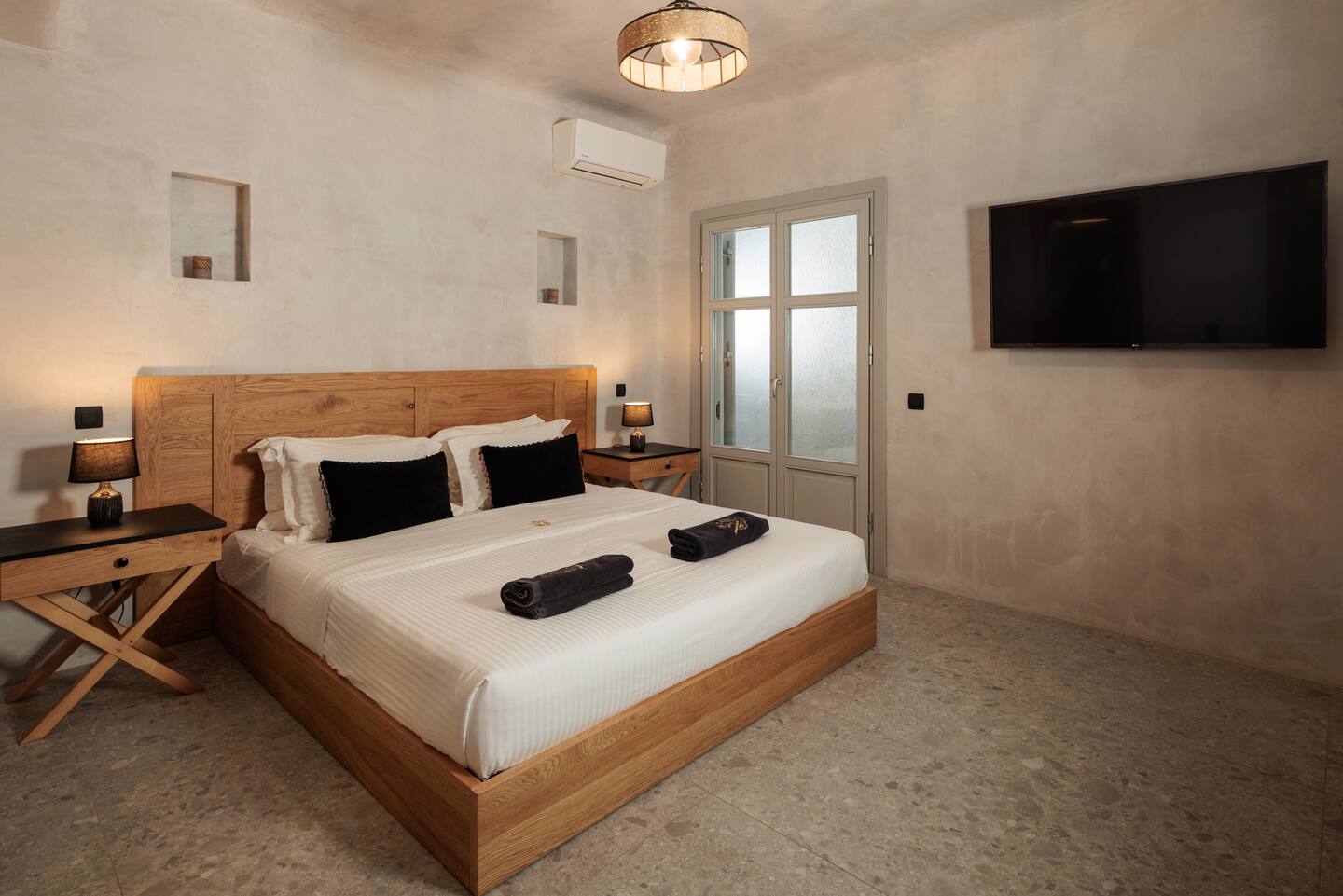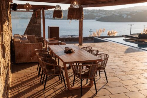The Black Villa is an exquisite property located just 50 meters from the shimmering sea in the scenic area of Kanalia. This stunning villa boasts panoramic views of Mykonos, capturing the charm of “Little Venice,” the iconic windmills, and the bustling harbor. Designed with luxury in mind, both the interior and exterior spaces invite guests to indulge in every conceivable comfort during their stay.