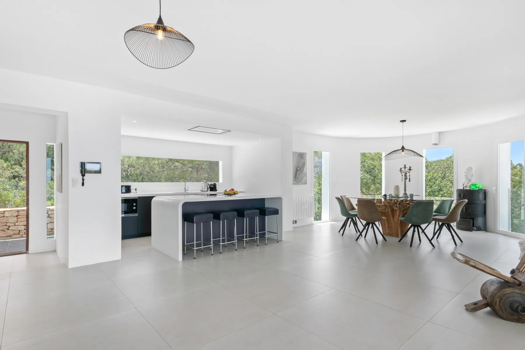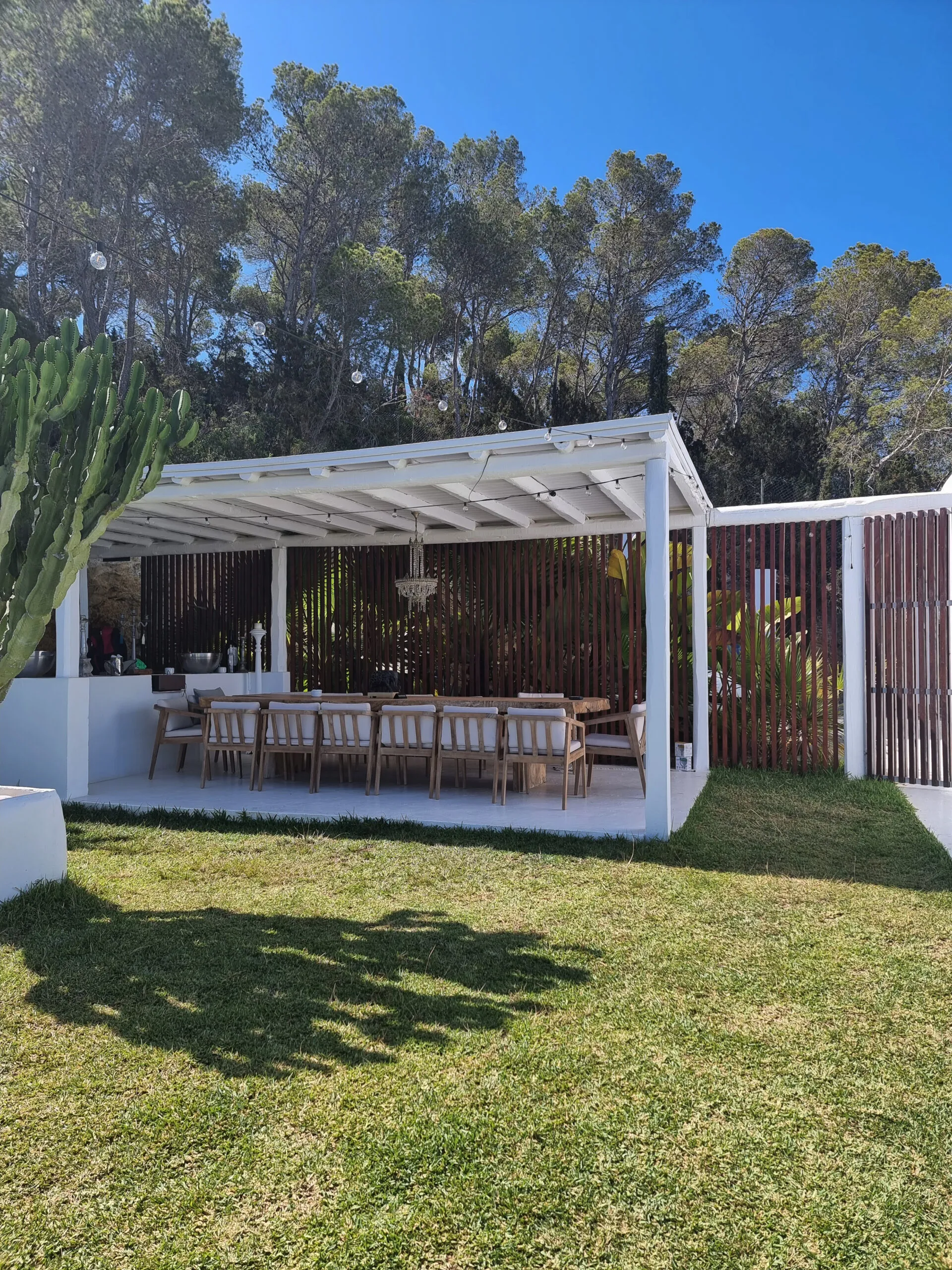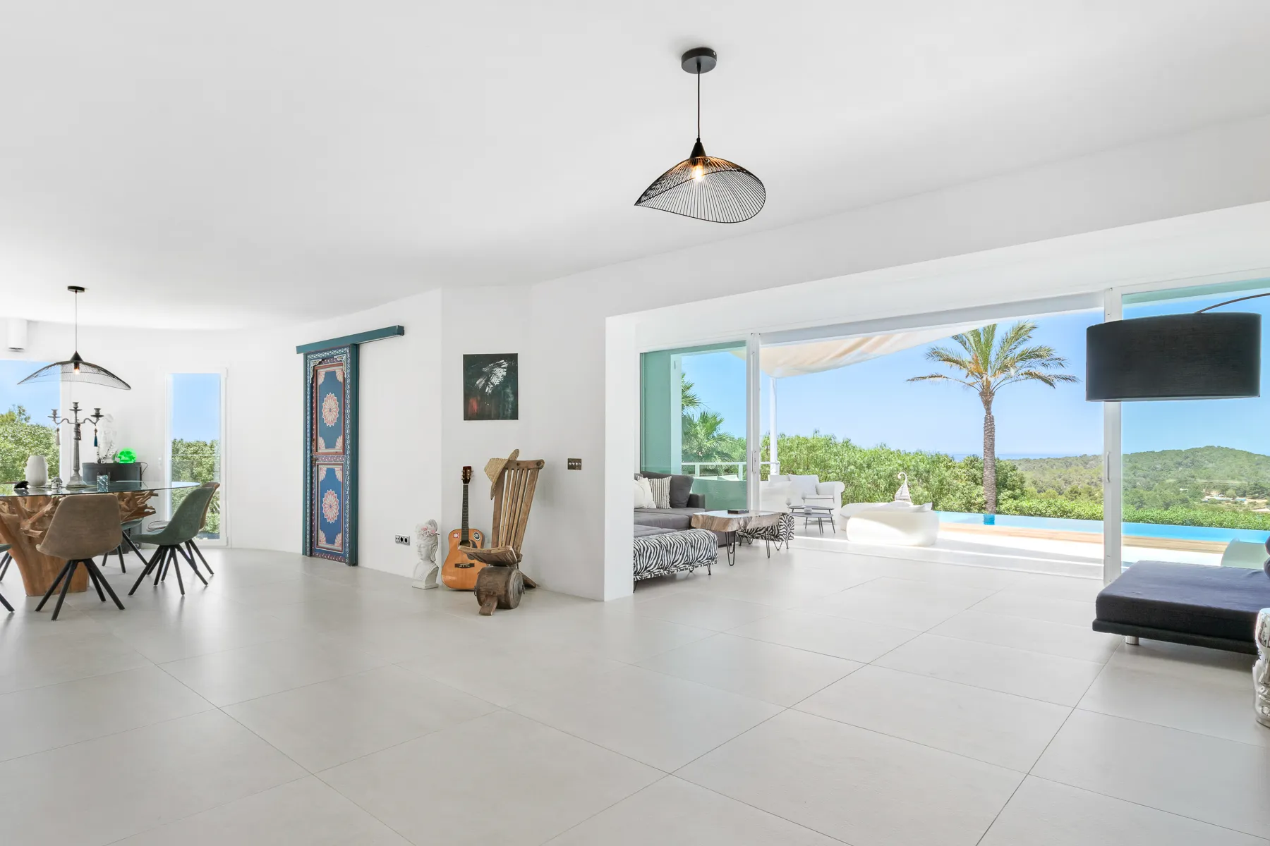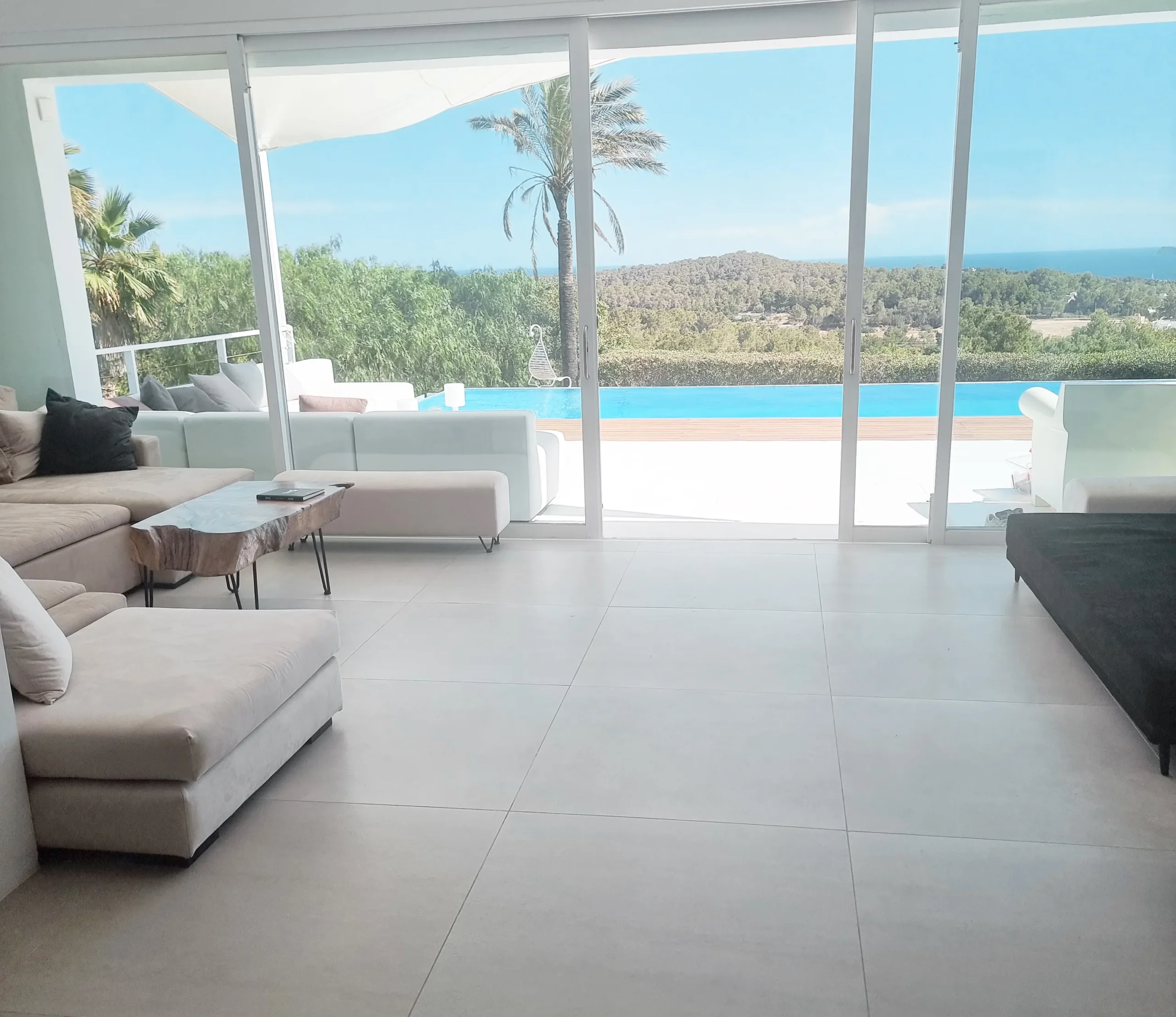 Discover a unique and exclusive private villa located in one of the island’s most desirable areas, just five minutes from Cala Bassa Beach and close to Ibiza Town and its vibrant nightlife. This stunning 400 sqm residence has been meticulously refurbished to a high standard by its British owners and is set within nearly a hectare of beautifully walled private land. Offering some of the finest views in Ibiza, the villa features a spectacular 15 x 4 meter infinity pool, surrounded by expansive terraces and approximately 2000 sqm of lush lawn for your enjoyment.