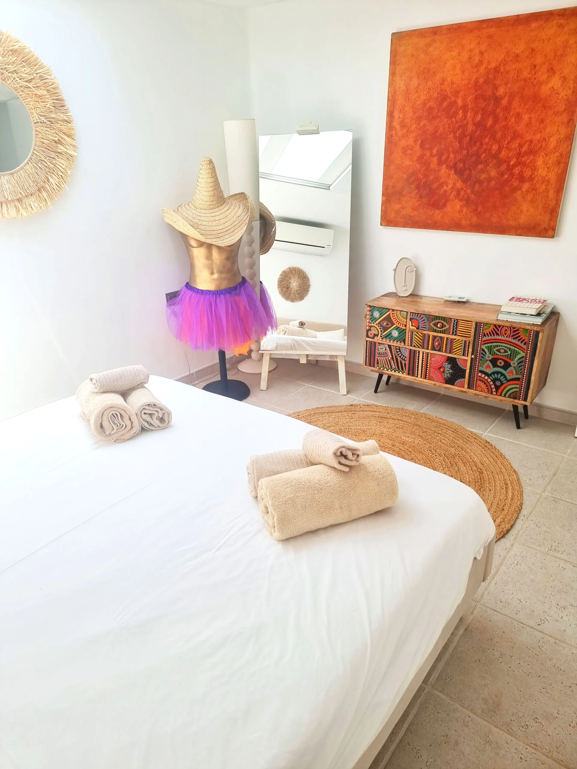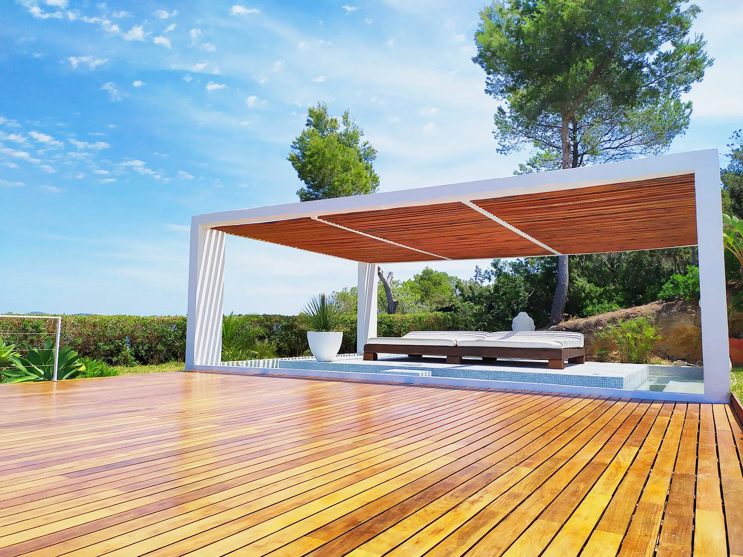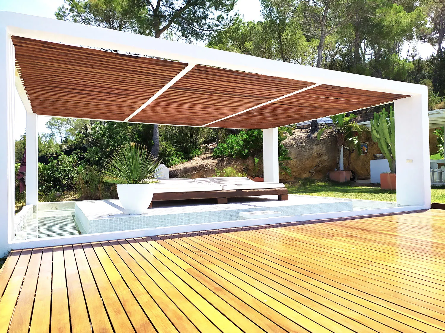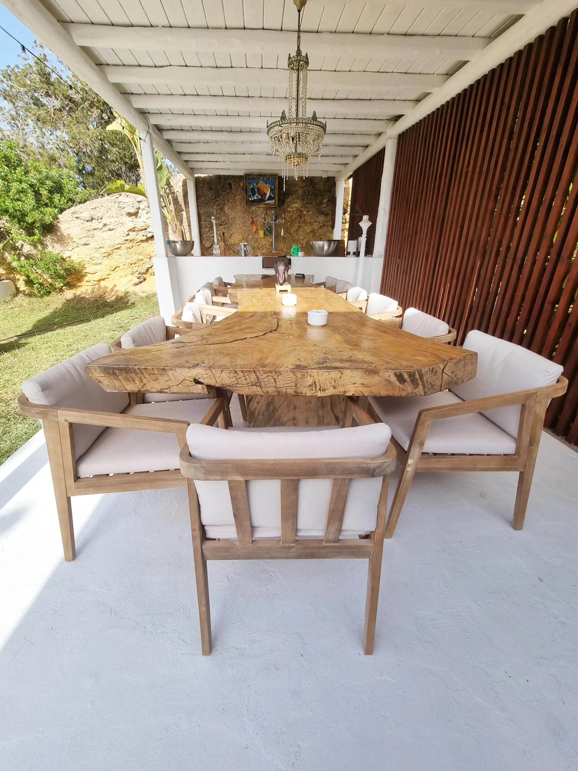 The owners have thoughtfully designed the ambiance at The Josep Villa to enhance your experience. Enjoy the enchanting atmosphere created by automatic colored LED mood lighting that illuminates the main pool and surrounding gardens at night. Water features have been incorporated for both visual and acoustic appeal, further enriching the Villa 101 experience. In addition to the main infinity pool, guests can relax in a second shallow pool area and enjoy the large sail-shaded chill-out island, complete with two super king-sized outdoor beds. For those seeking a magical retreat, there’s also a serene elevated chill-out area within the gardens, offering breathtaking sunset views over the islands off Cala Conta.