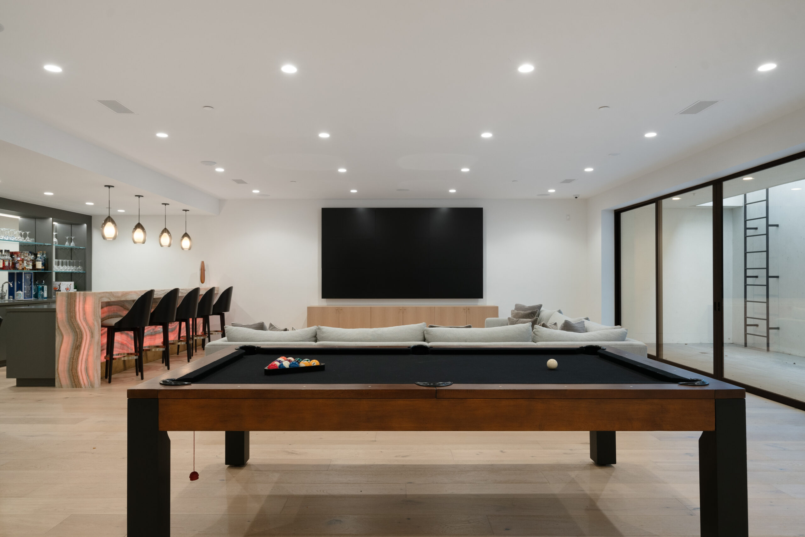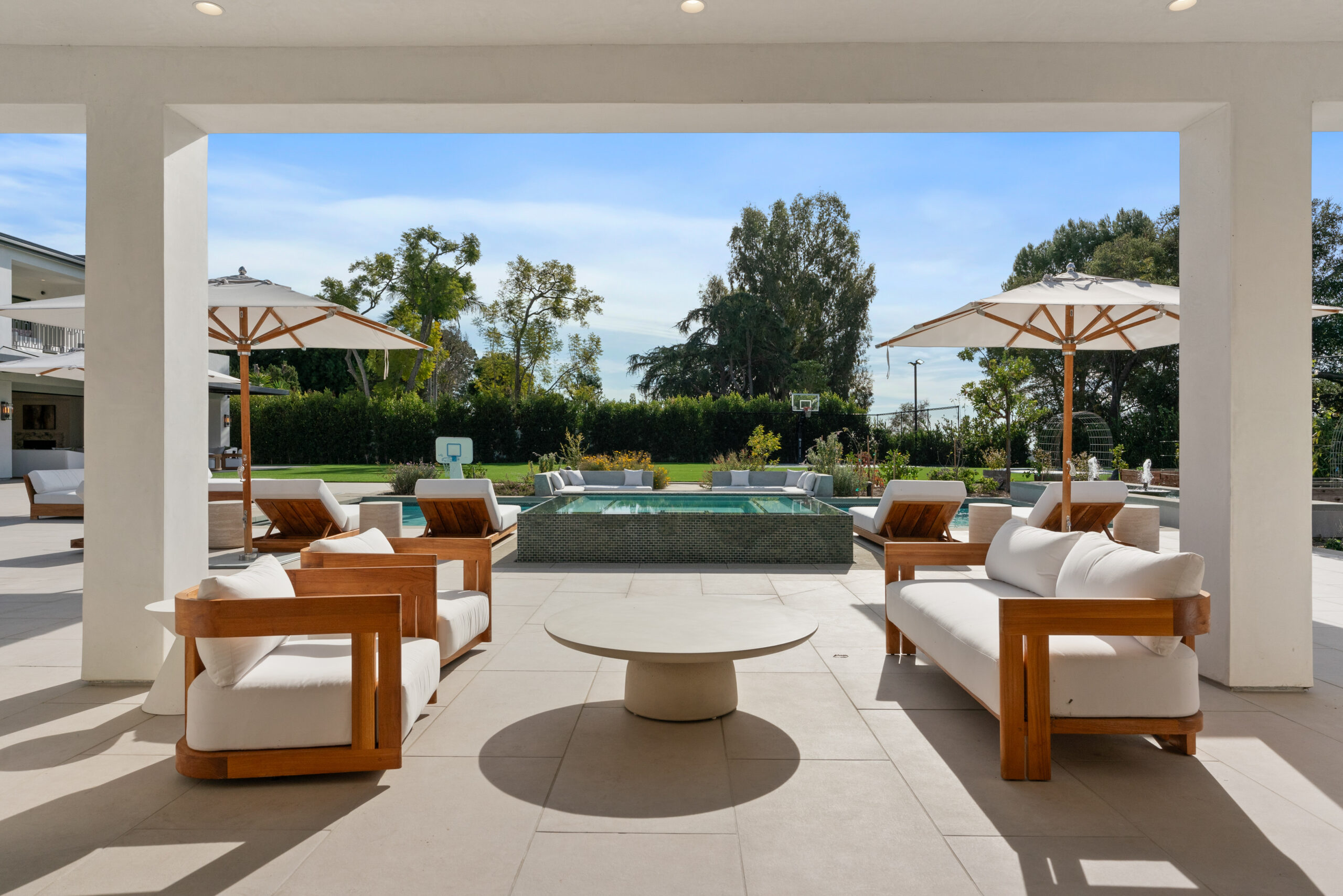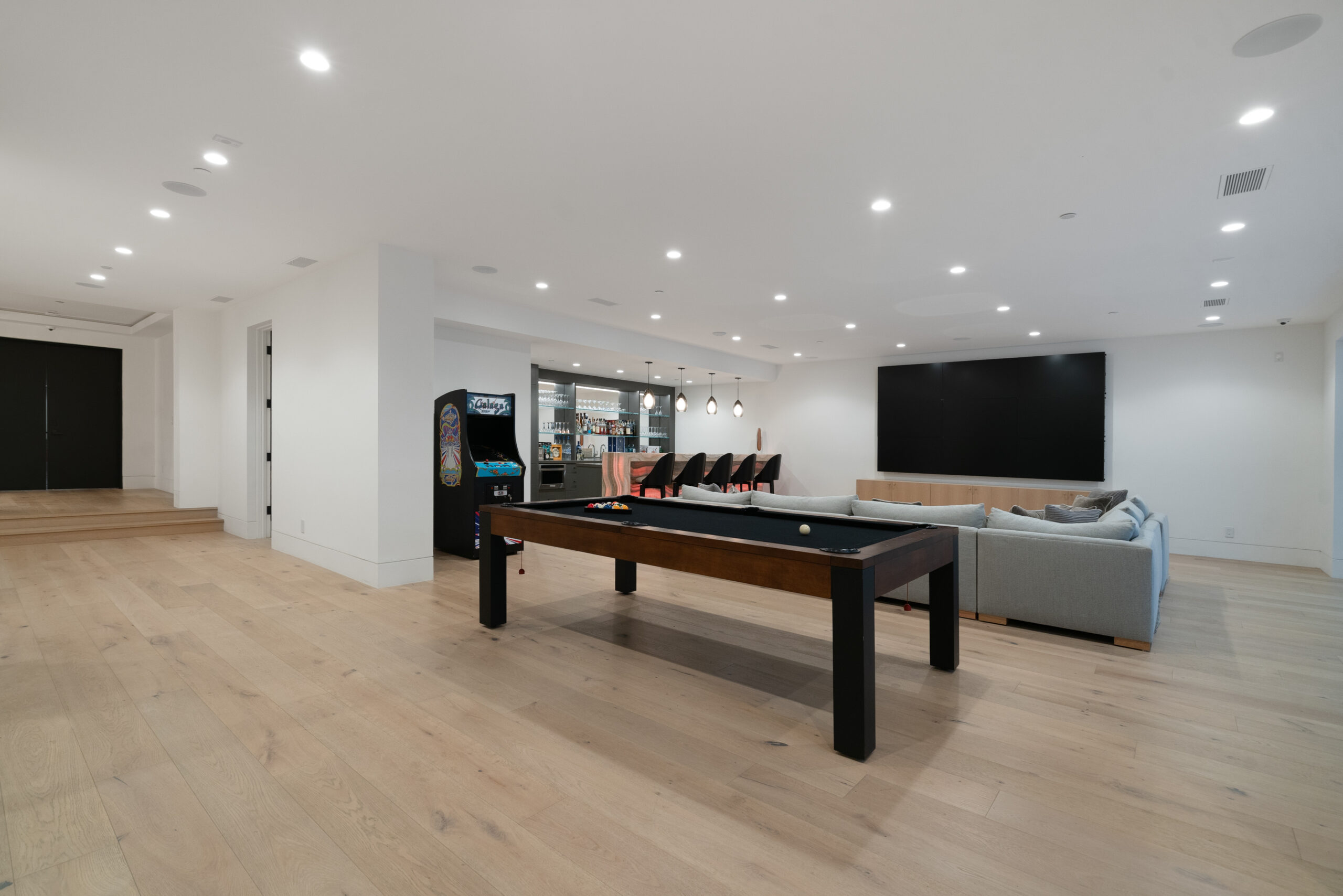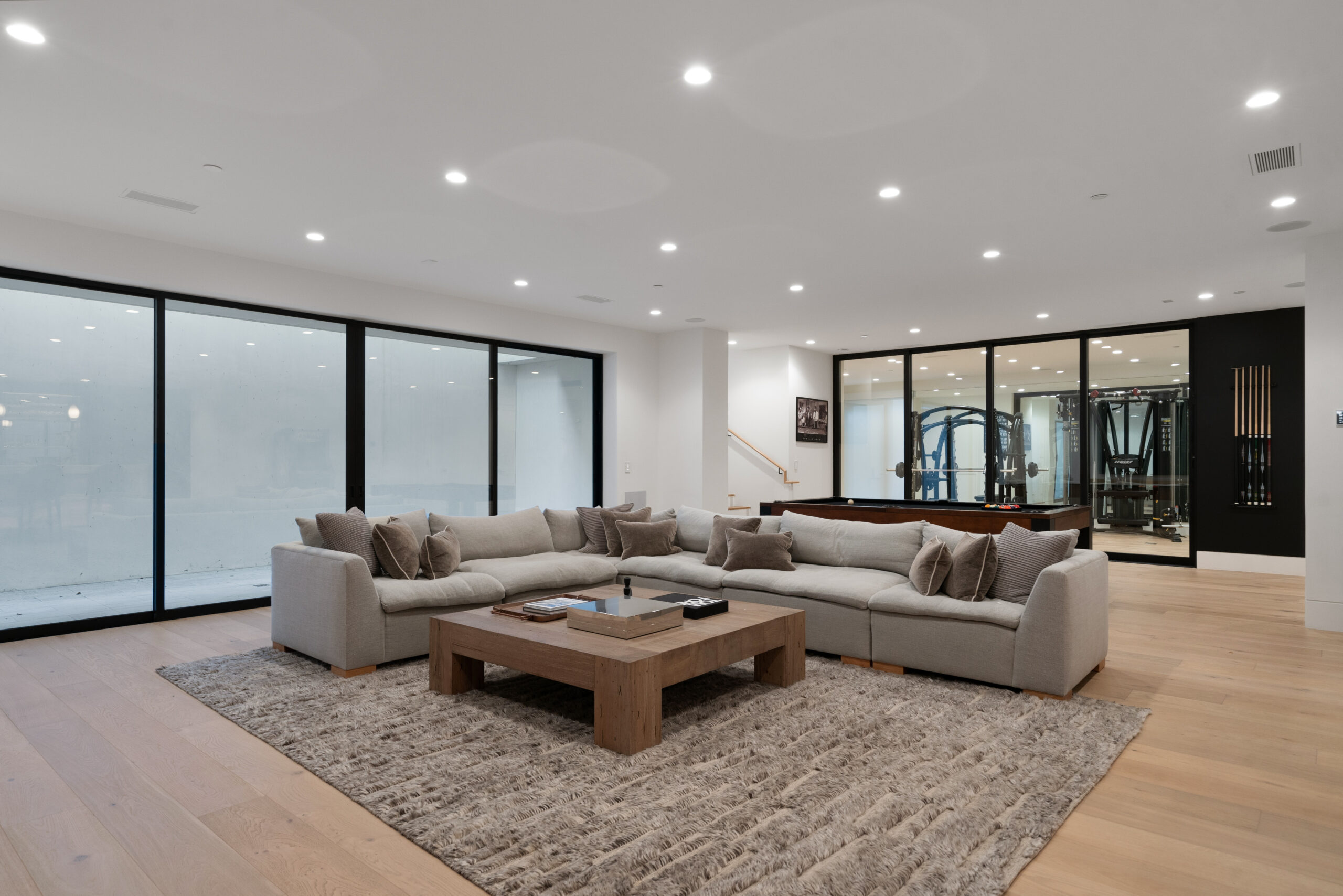Entertainment reaches new heights with a chic billiards room, a fully stocked bar and lounge, and a private movie theater complete with plush seating and a large screen for the ultimate cinematic enjoyment. Wine connoisseurs will delight in the exquisitely designed wine cellar, while sports enthusiasts can take advantage of an indoor half-court basketball court. For those who wish to maintain their fitness routine, the gym is outfitted with state-of-the-art equipment.