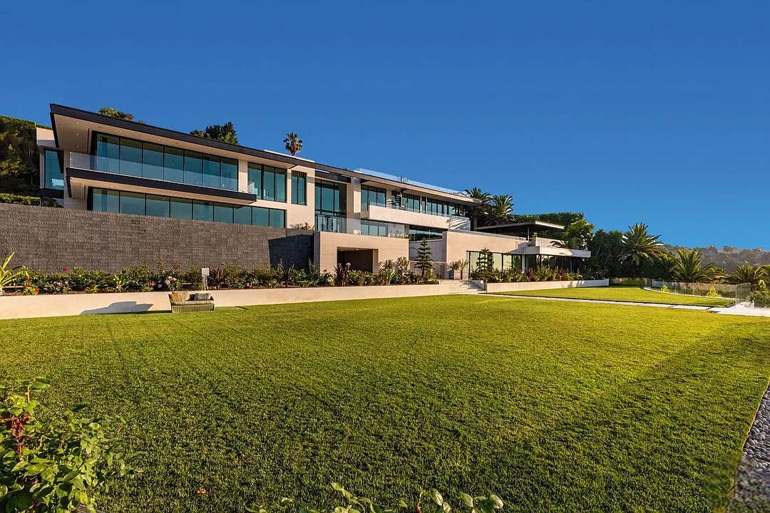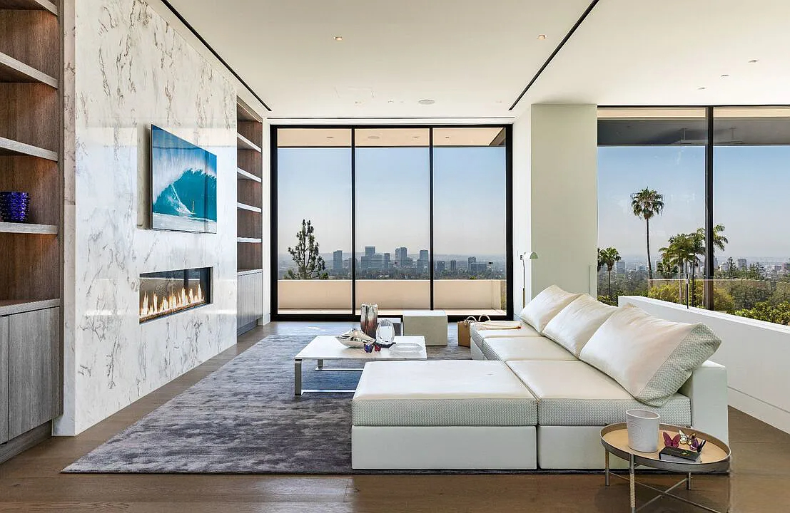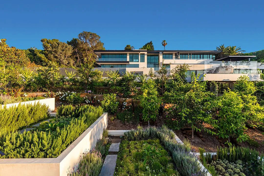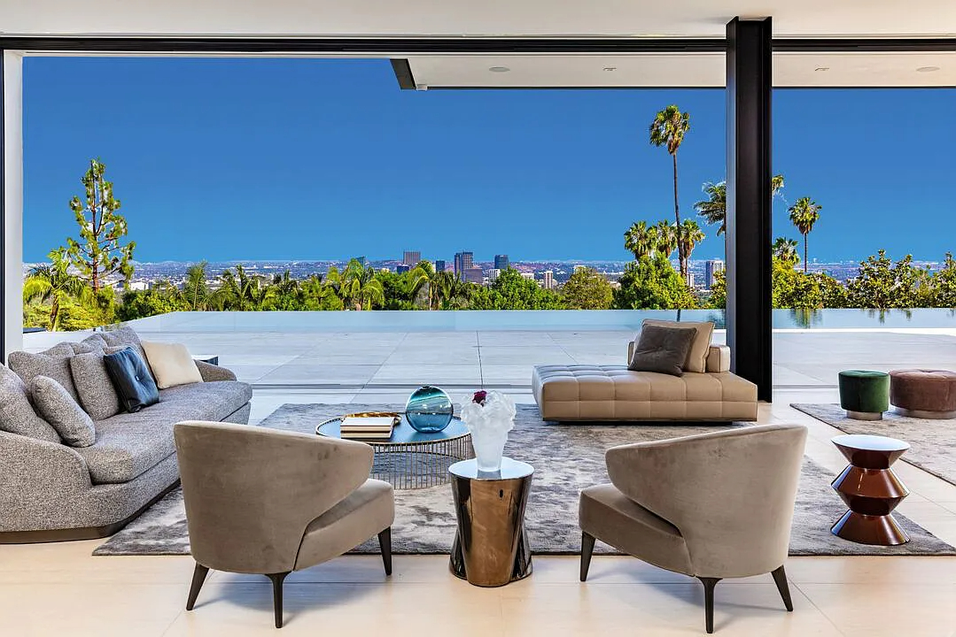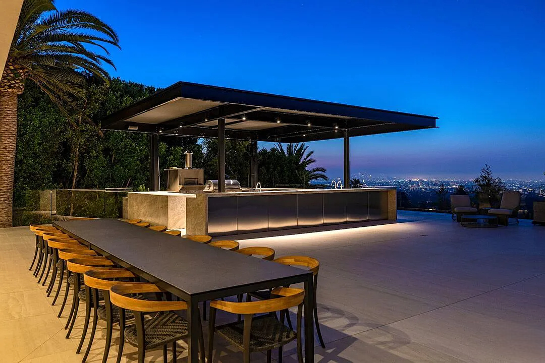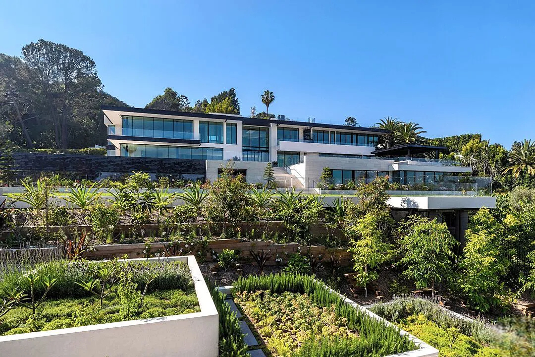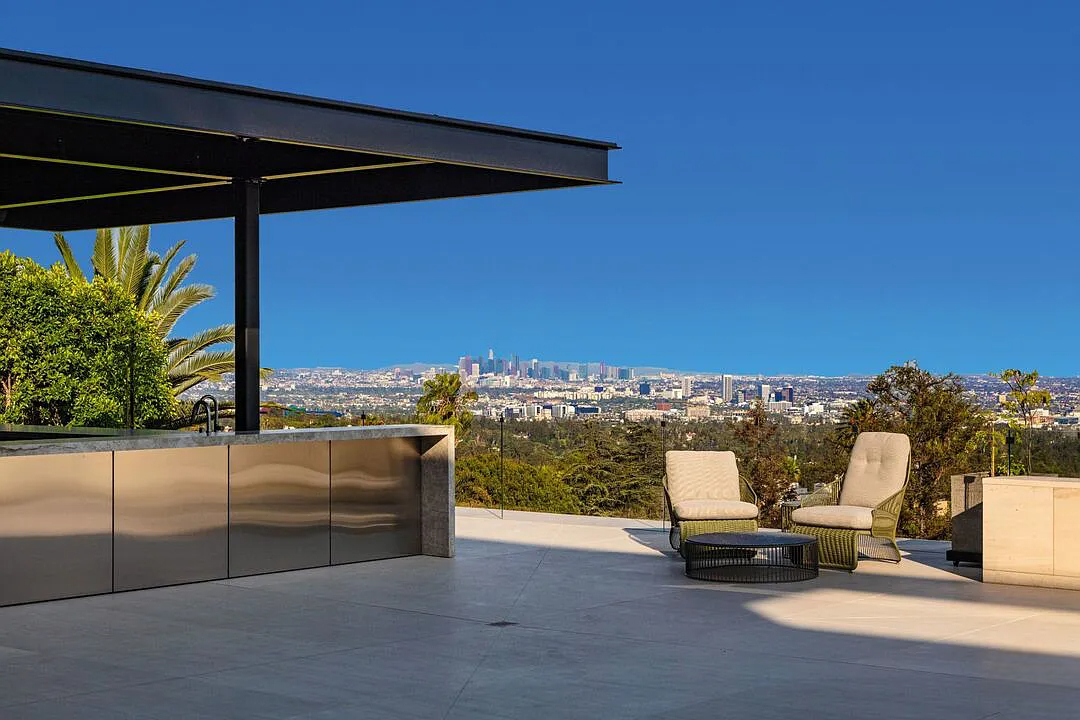 Modern, exotic, and timeless, Biene Villa is a true architectural masterpiece crafted with meticulous precision. This era-defining estate showcases quality at every turn, from its lush landscaped gardens to its striking water features. The grandeur of the home is immediately evident, highlighted by soaring 29-foot entryway ceilings and breathtaking views that stretch from the snow-capped mountains of the Angeles Forest to the idyllic shores of Catalina Island. Spanning an impressive 34,000 square feet, this hilltop sanctuary serves as the ultimate canvas for luxurious living, just moments away from the vibrant Sunset Boulevard.