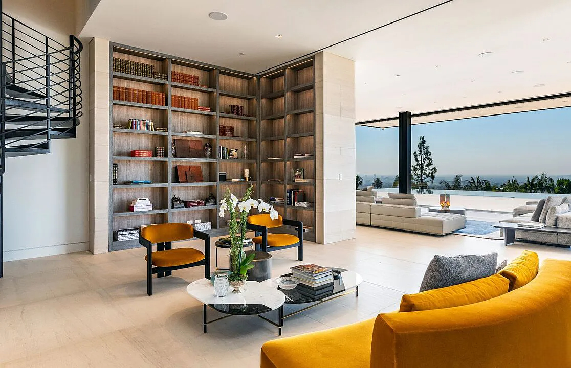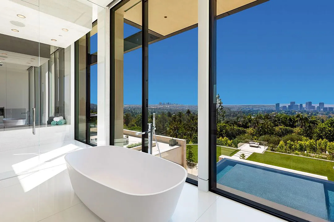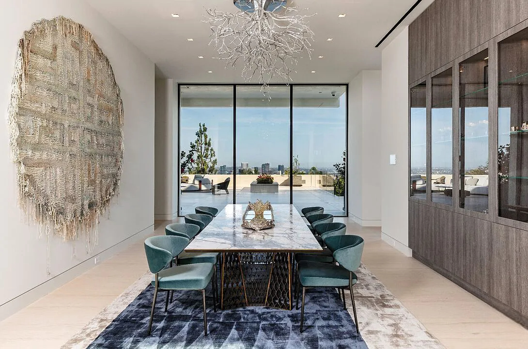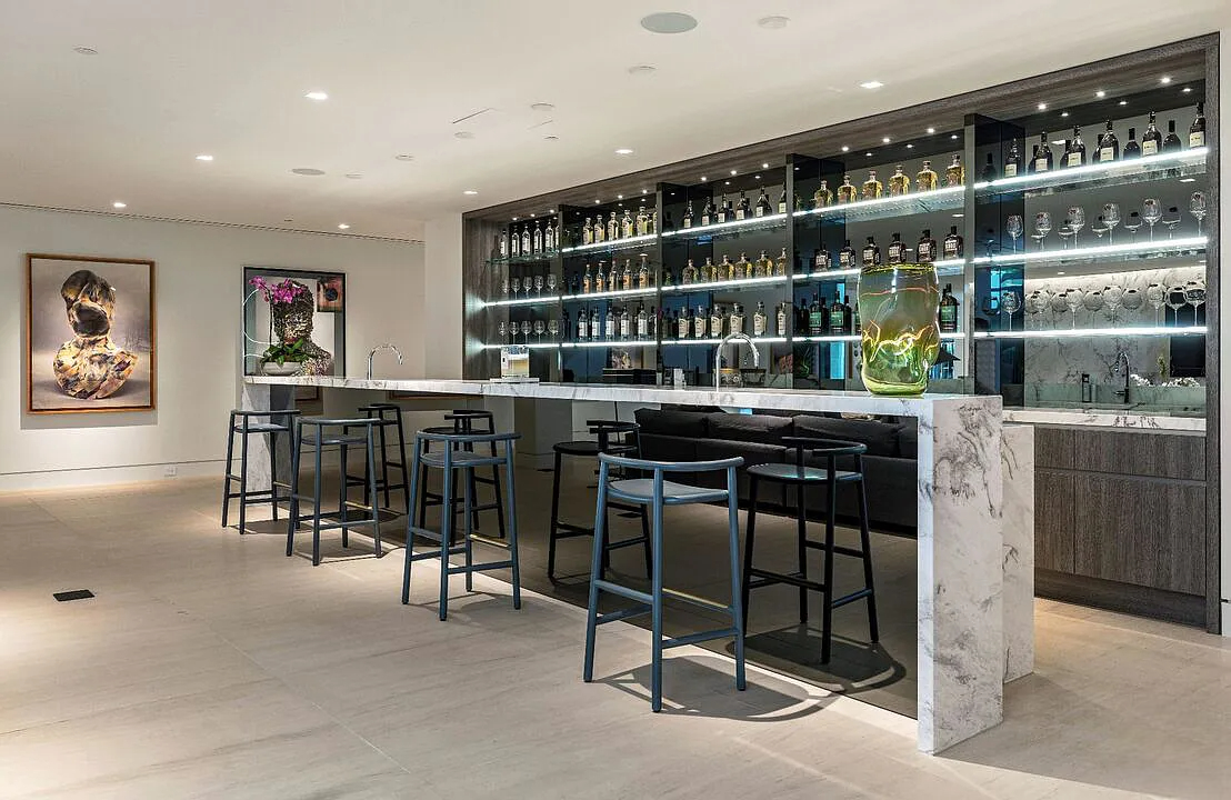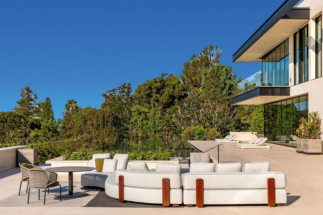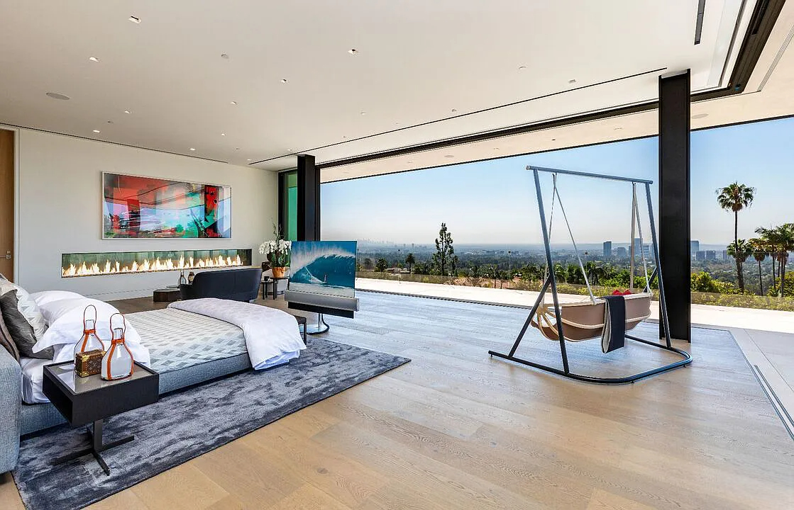 Modern, exotic, and timeless, Biene Villa is a true architectural masterpiece crafted with meticulous precision. This era-defining estate showcases quality at every turn, from its lush landscaped gardens to its striking water features. The grandeur of the home is immediately evident, highlighted by soaring 29-foot entryway ceilings and breathtaking views that stretch from the snow-capped mountains of the Angeles Forest to the idyllic shores of Catalina Island. Spanning an impressive 34,000 square feet, this hilltop sanctuary serves as the ultimate canvas for luxurious living, just moments away from the vibrant Sunset Boulevard.