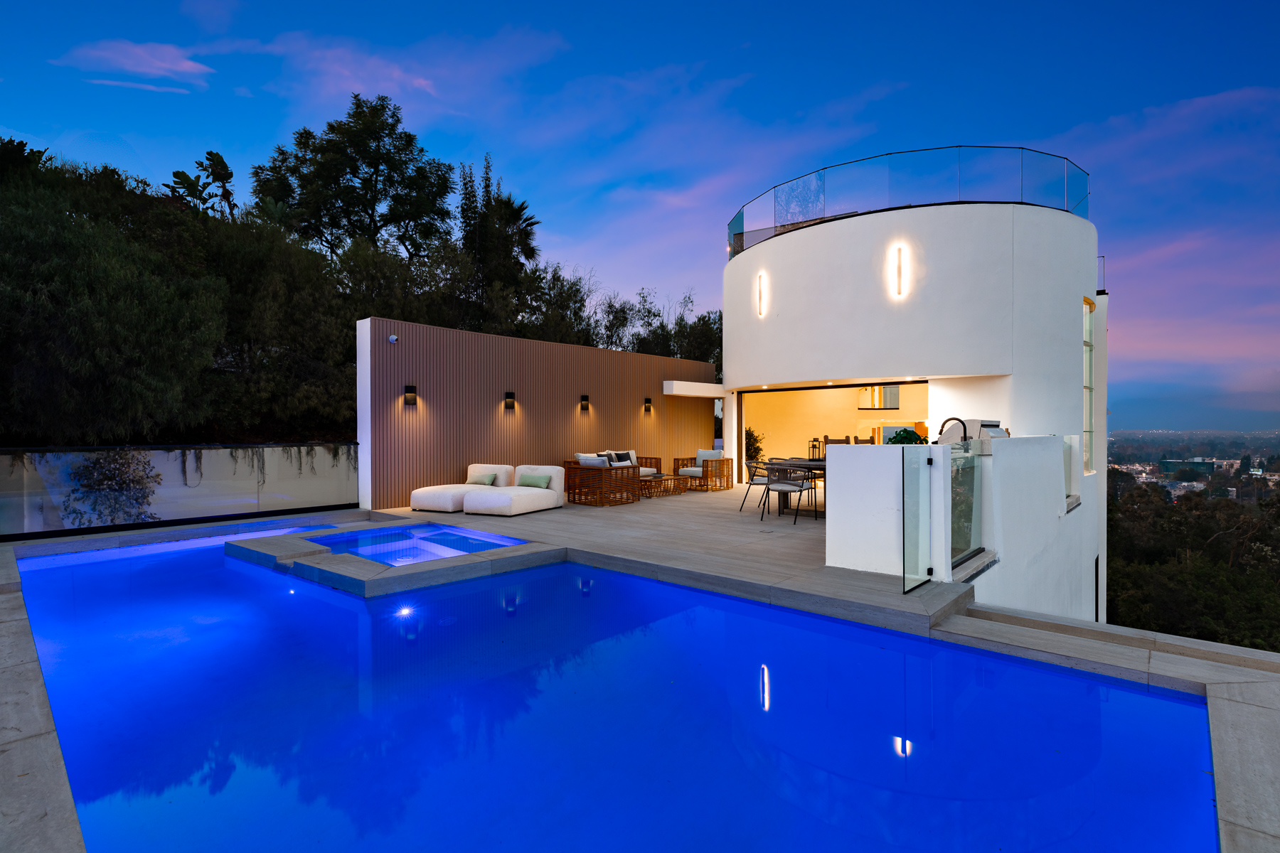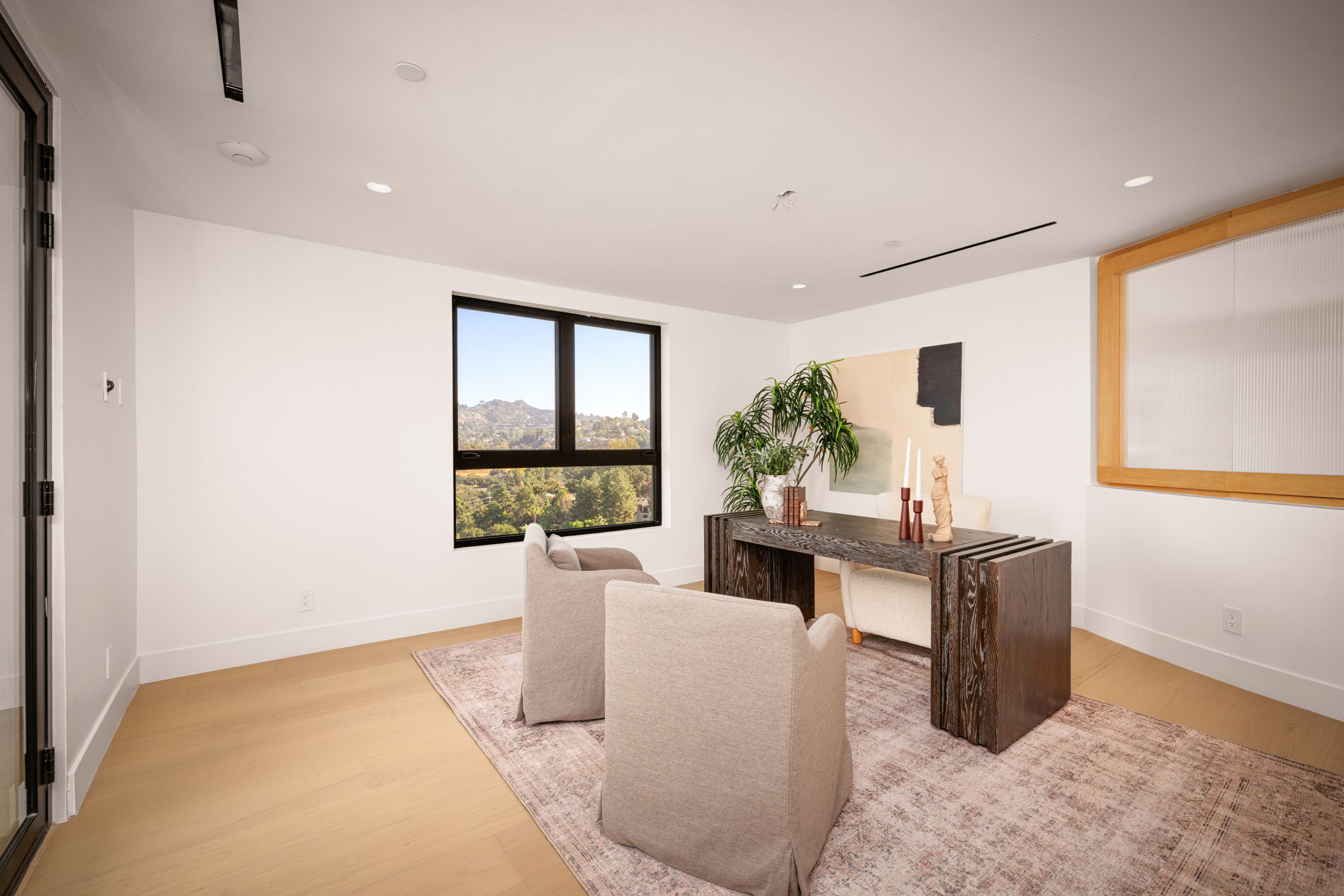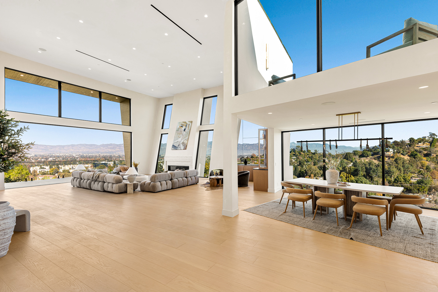 Experience breathtaking panoramic vistas and impressive 20-foot ceilings enhanced by sleek glass walls and multiple fireplaces throughout the home. As you step inside, you’ll be welcomed by stunning views of the valley and canyons, complemented by a floating loft that overlooks the elegant private dining area. The gourmet kitchen effortlessly connects to a cozy family room featuring a fireplace, outdoor access, and more expansive views of the surrounding landscape.
