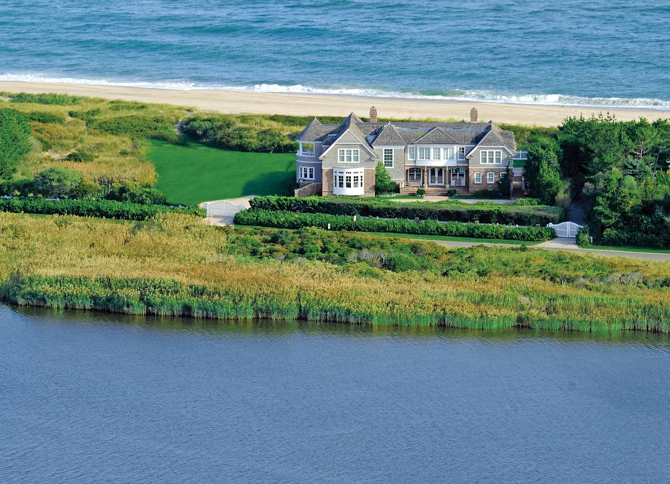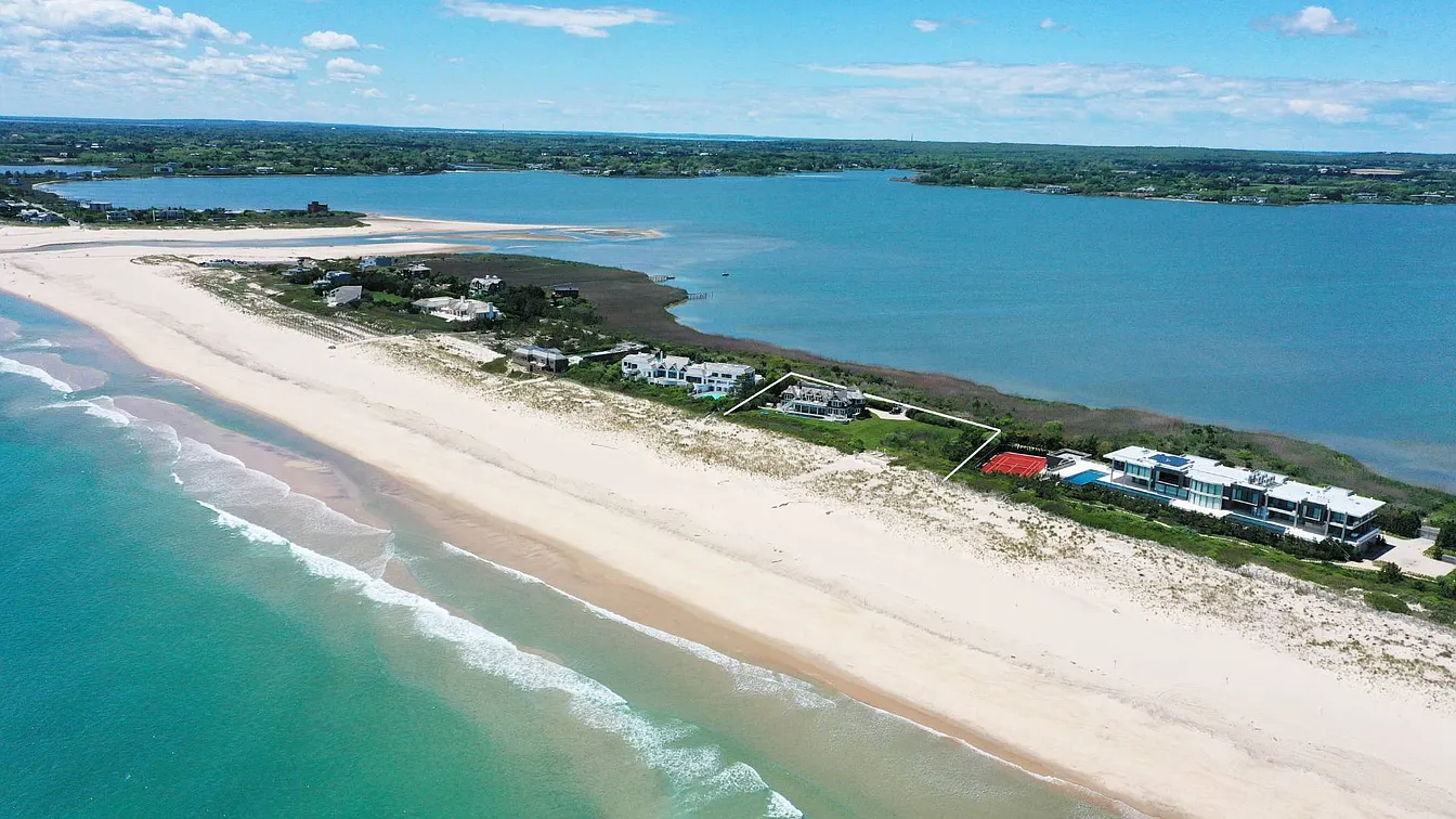 Experience the essence of summer by the ocean in Bridgehampton with this remarkable home set on 2.9 oceanfront acres, offering stunning water views from nearly every room. The property features eight bedrooms and eight full and two half bathrooms, including a luxurious master suite complete with an opulent bath and a private balcony that boasts panoramic views. The front of the home provides elevated vistas of Mecox Bay, with convenient bay access just across the street.
