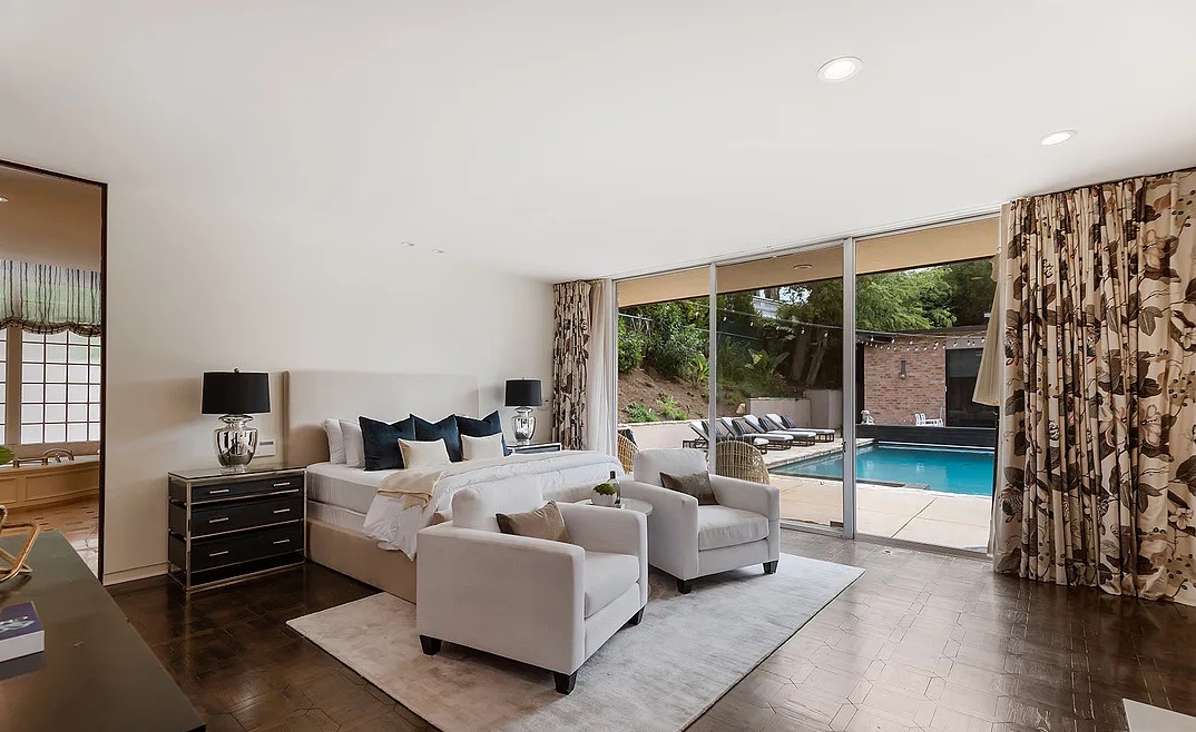 The property also includes a private office with its own fireplace, a cozy family room, and a beautiful pool and spa area. The expansive master suite features a fireplace, two separate bathrooms, and dual closets for added luxury. A separate guest wing with a kitchen provides comfort and privacy for visitors, while staff quarters are conveniently located in the backyard. Ideally situated near Beverly Hills’ premier shops and restaurants, this exceptional estate is perfect for entertaining and accommodating large families.