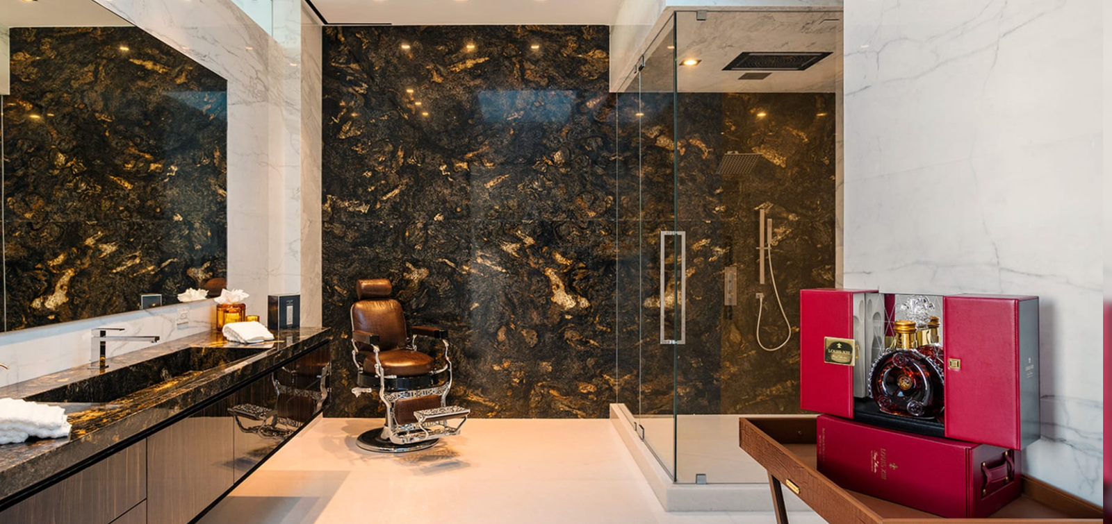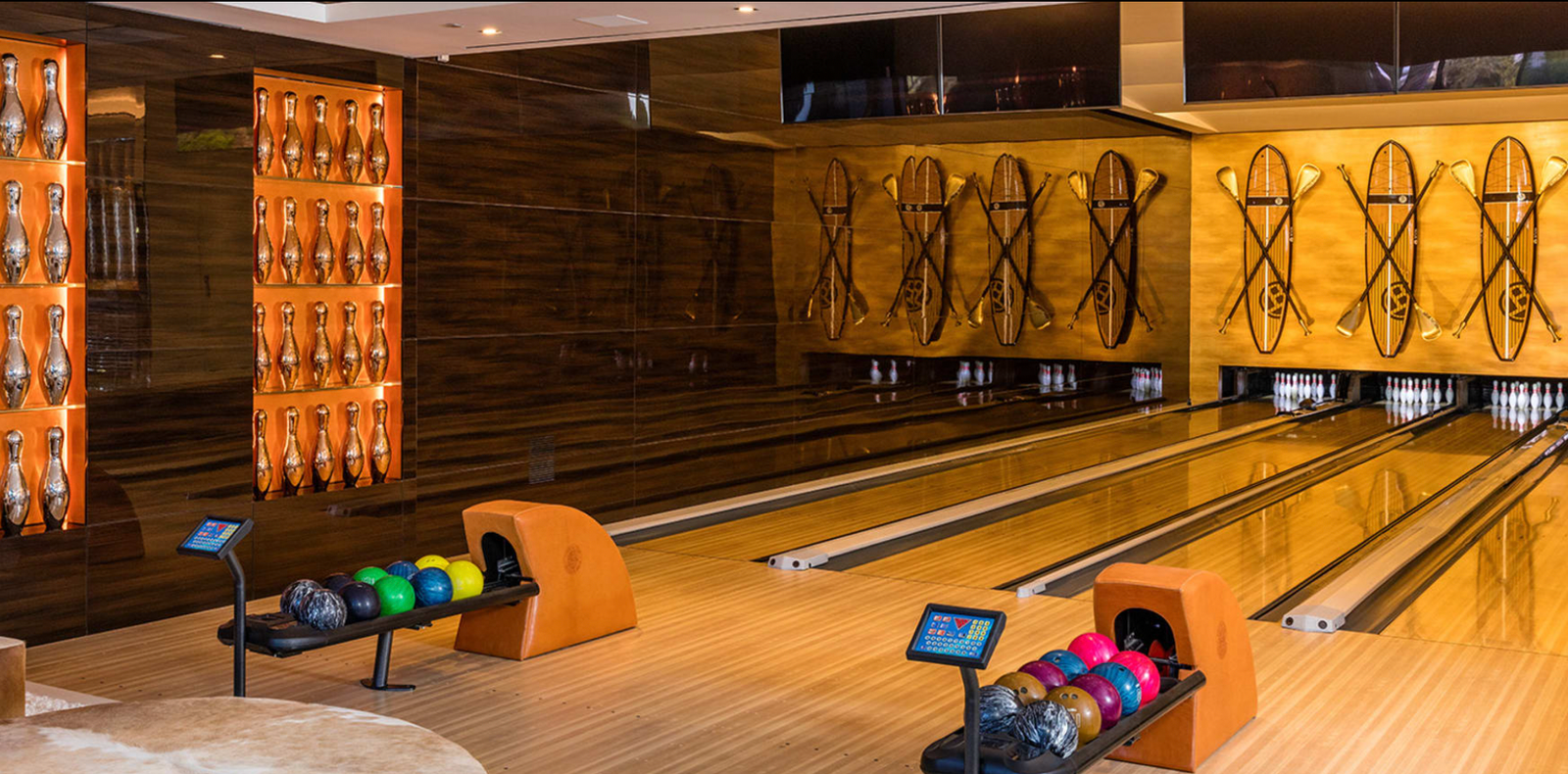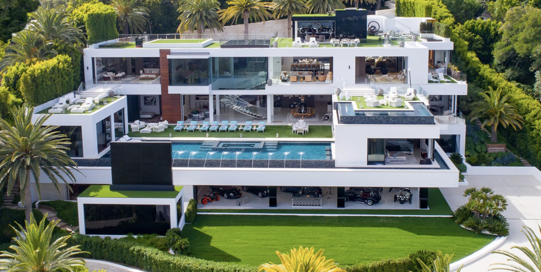 Experience the epitome of opulence in this stunning new construction home, boasting 38,000 square feet of luxurious living space complemented by 17,000 square feet of entertainment decks. This exquisite residence features two master suites, ten spacious VIP guest suites, and 21 lavish bathrooms. Culinary enthusiasts will appreciate the three gourmet kitchens and five bars, while wellness seekers can indulge in a massage studio and a state-of-the-art fitness center. The property also includes an 85-foot glass-tiled infinity pool, a 40-seat 4K Dolby Atmos theater, and a four-lane bowling alley/lounge, along with an auto gallery and an outdoor pop-up theater.