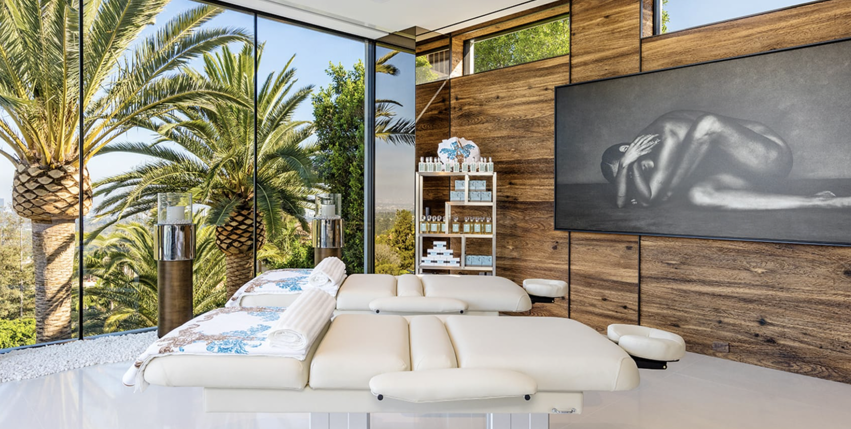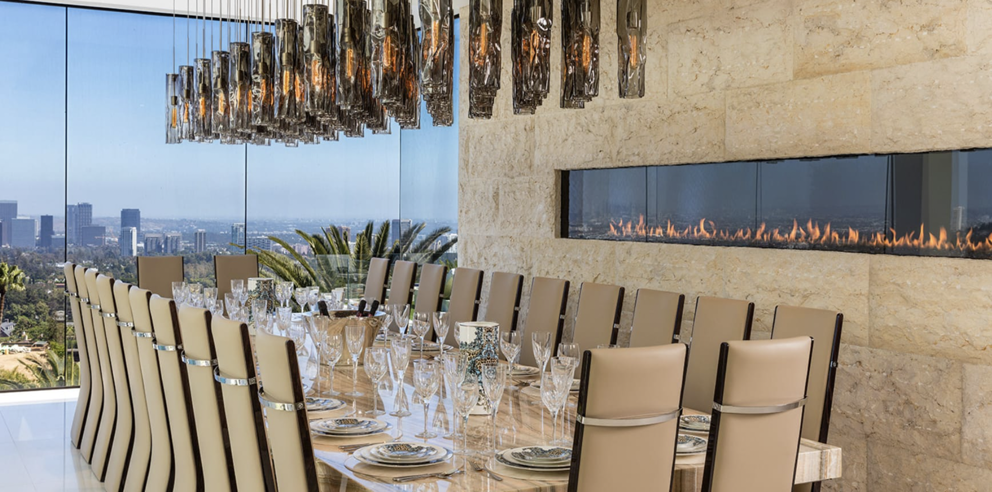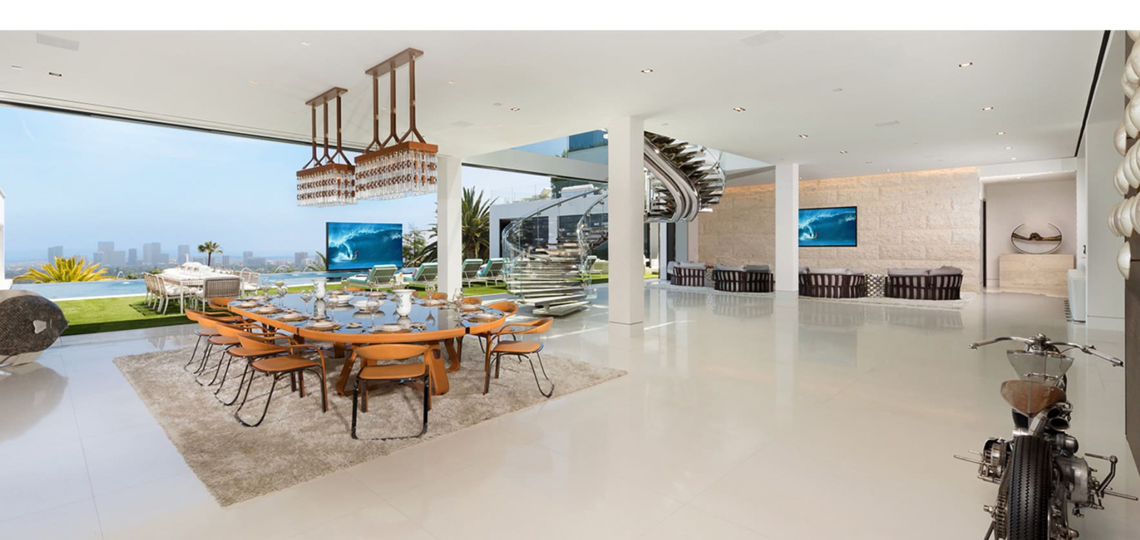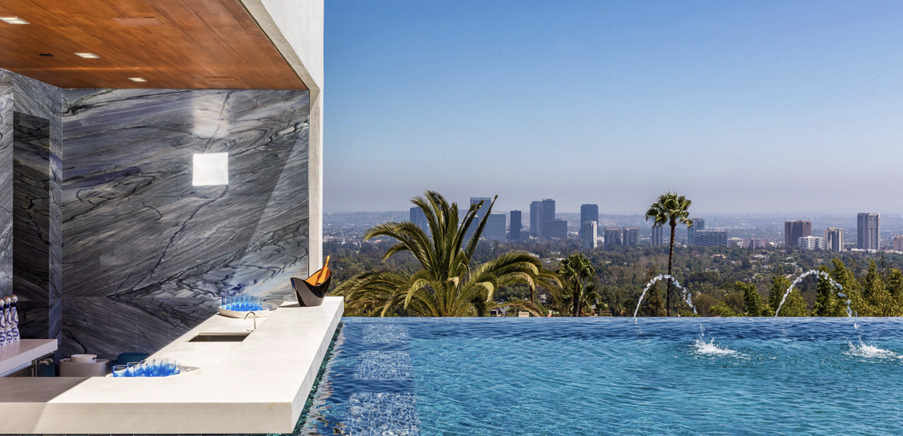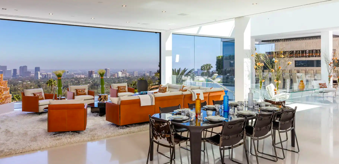 This remarkable estate showcases two fully stocked champagne and wine cellars alongside the most advanced home technology system available today. With an astonishing array of amenities and bespoke items sourced from around the globe, the home spans four meticulously curated levels. Enjoy indoor/outdoor living at its finest, enhanced by 270-degree unobstructed views that stretch from the mountains to the ocean, framing the breathtaking Los Angeles skyline in between.
