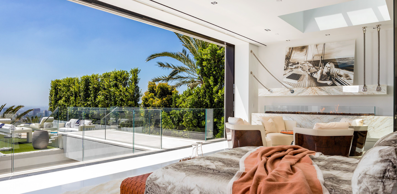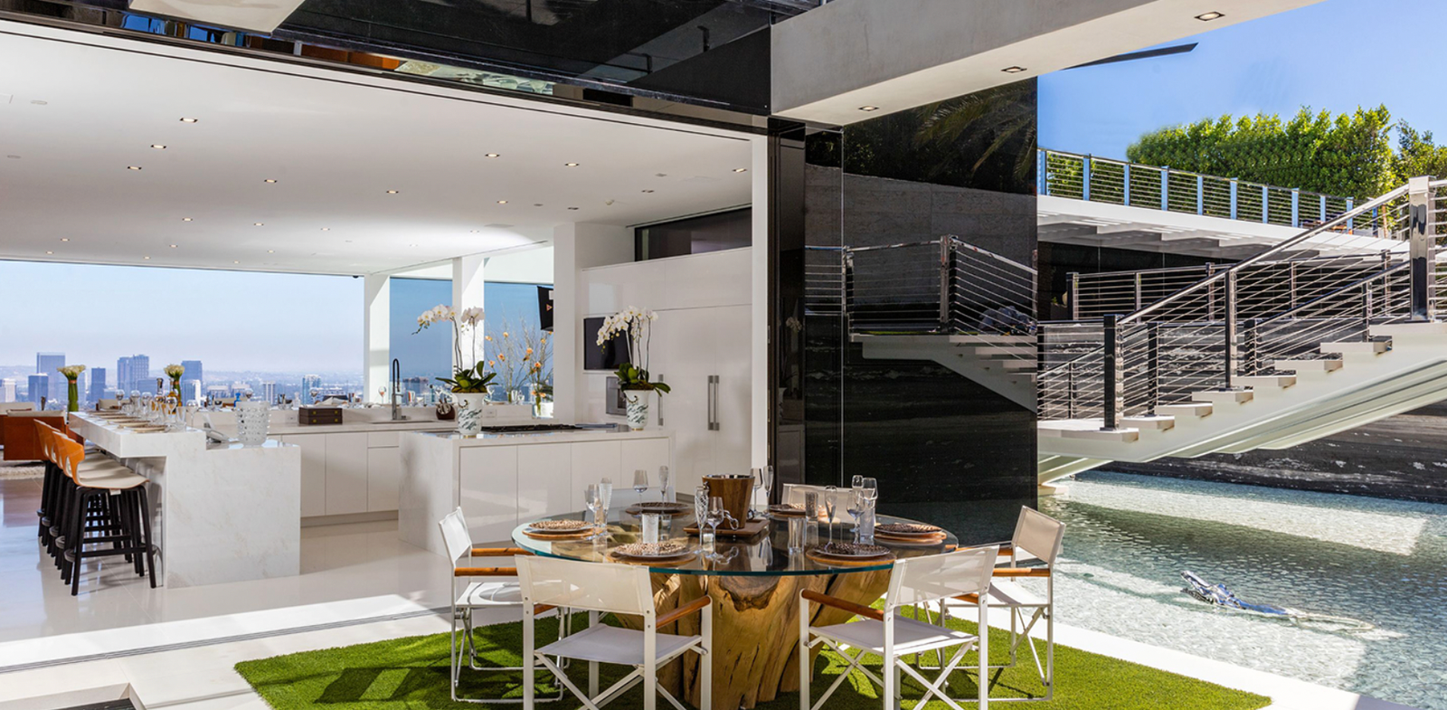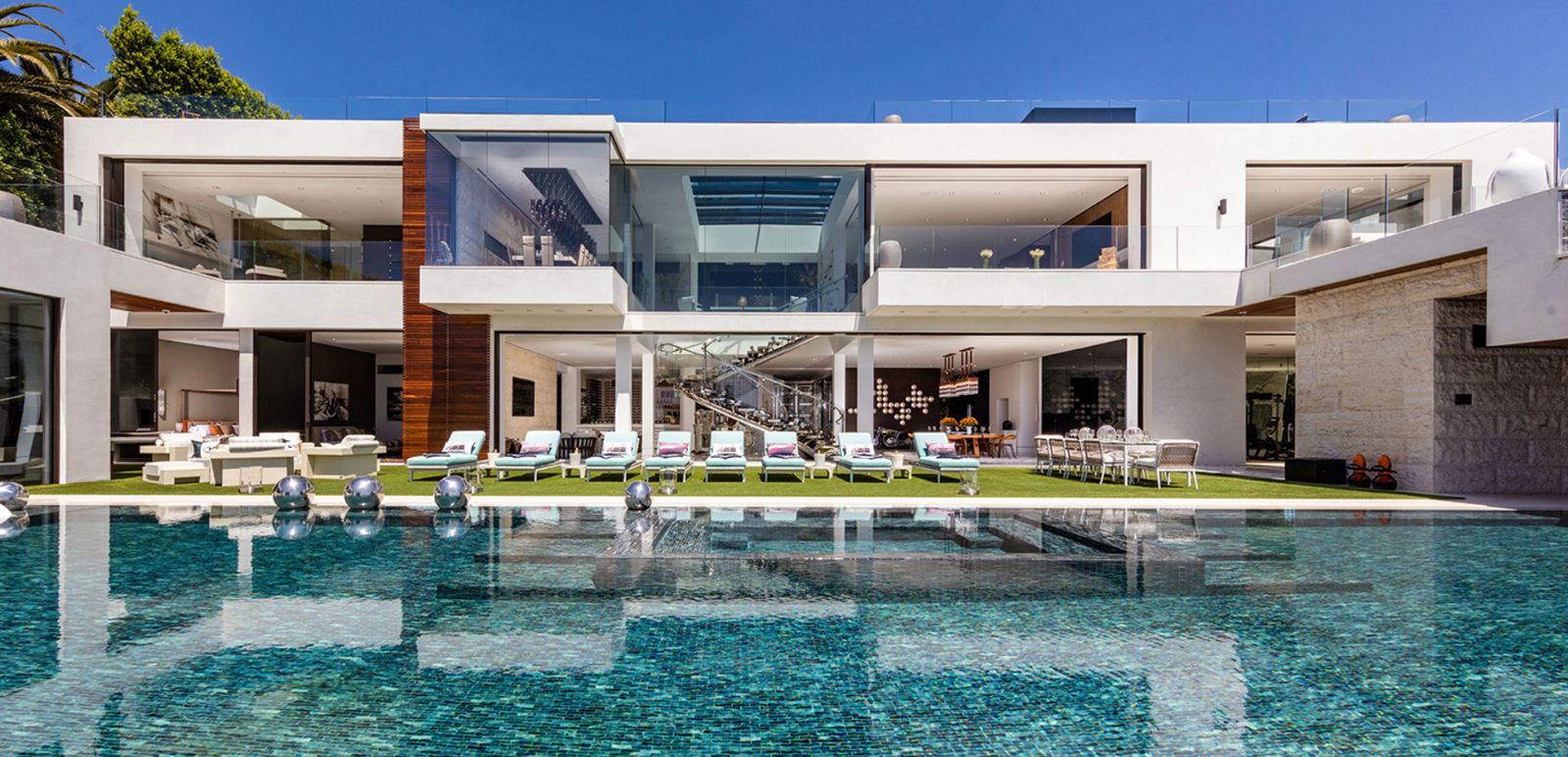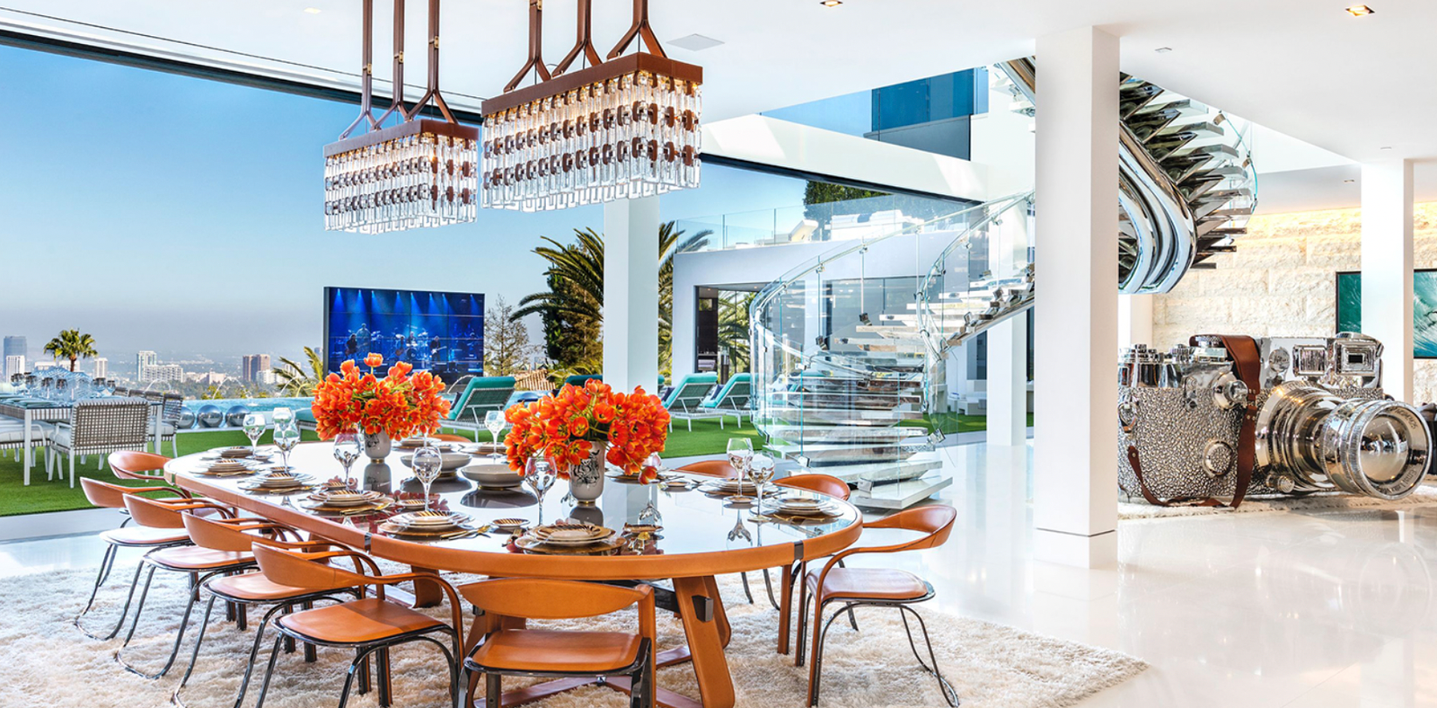 This remarkable estate showcases two fully stocked champagne and wine cellars alongside the most advanced home technology system available today. With an astonishing array of amenities and bespoke items sourced from around the globe, the home spans four meticulously curated levels. Enjoy indoor/outdoor living at its finest, enhanced by 270-degree unobstructed views that stretch from the mountains to the ocean, framing the breathtaking Los Angeles skyline in between.