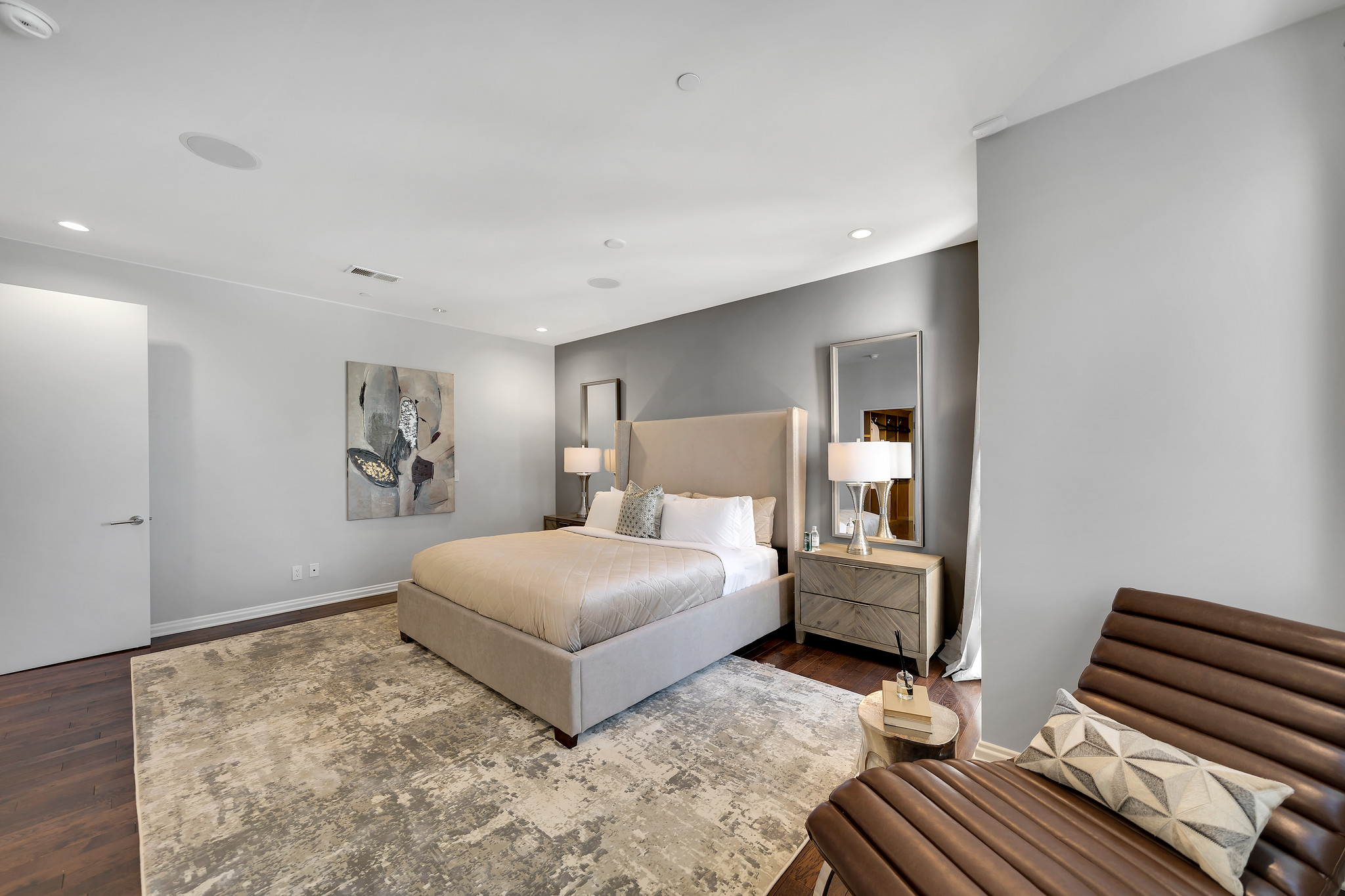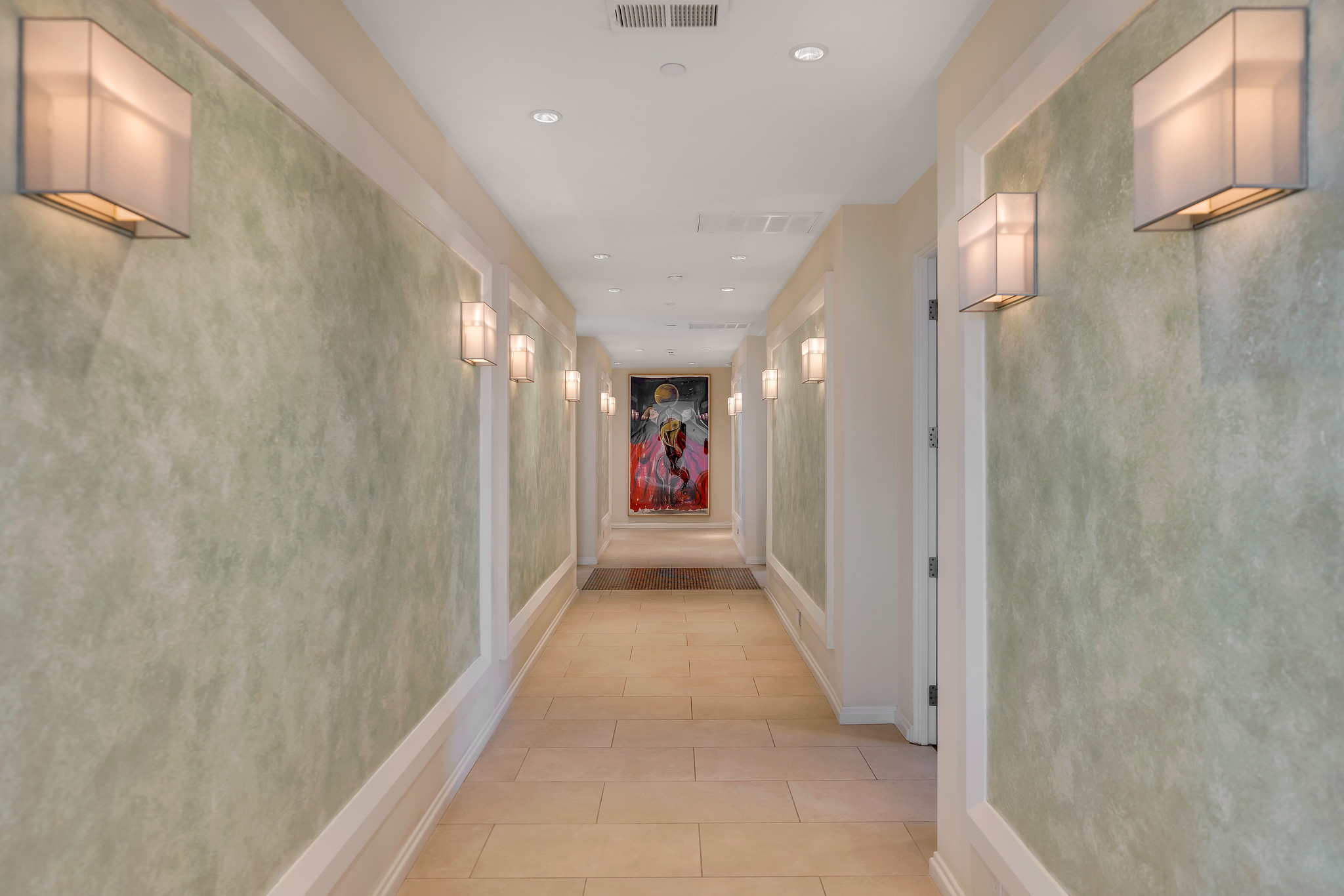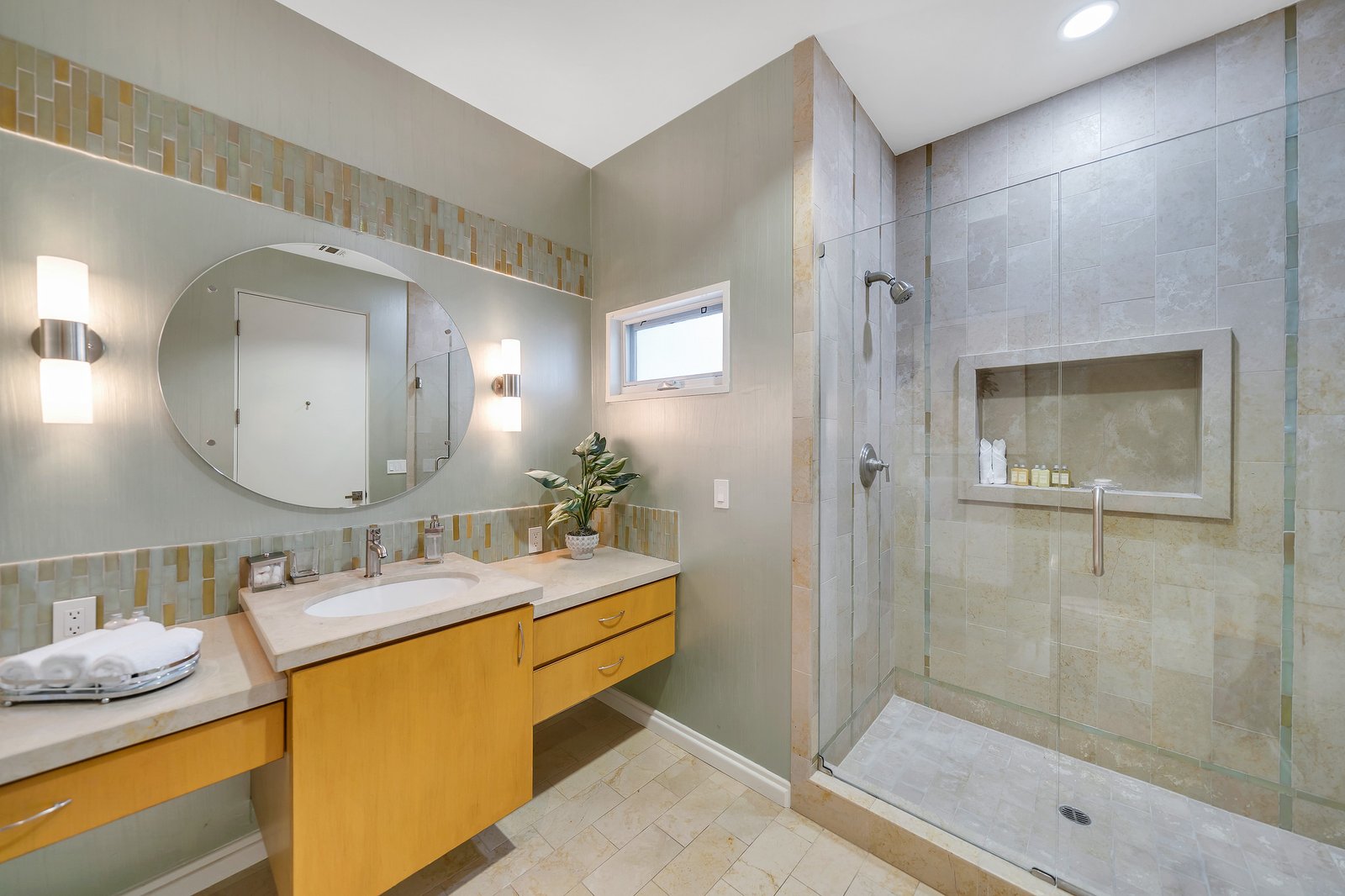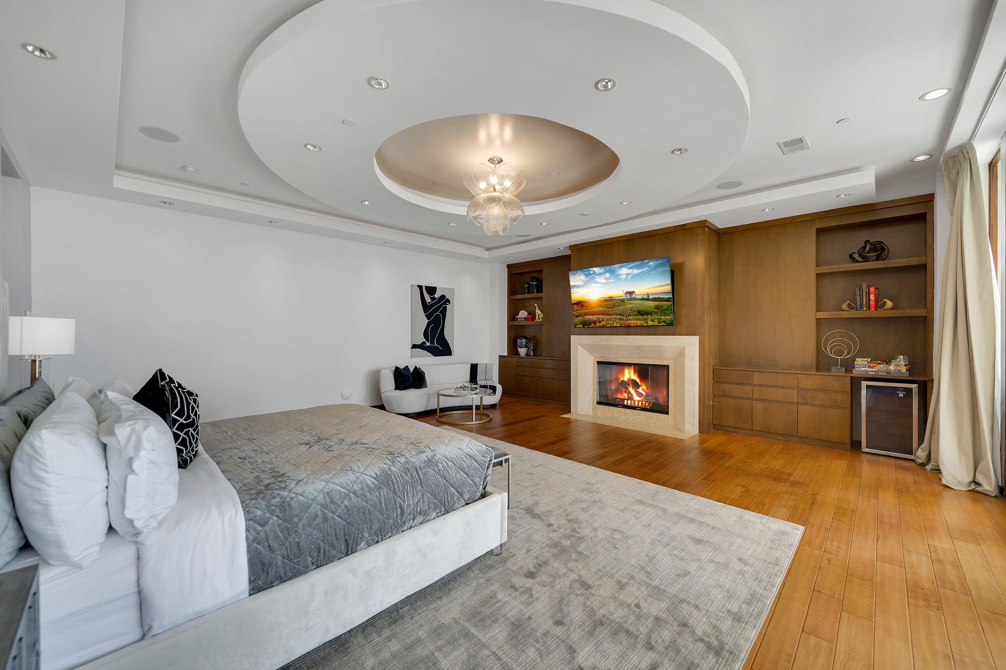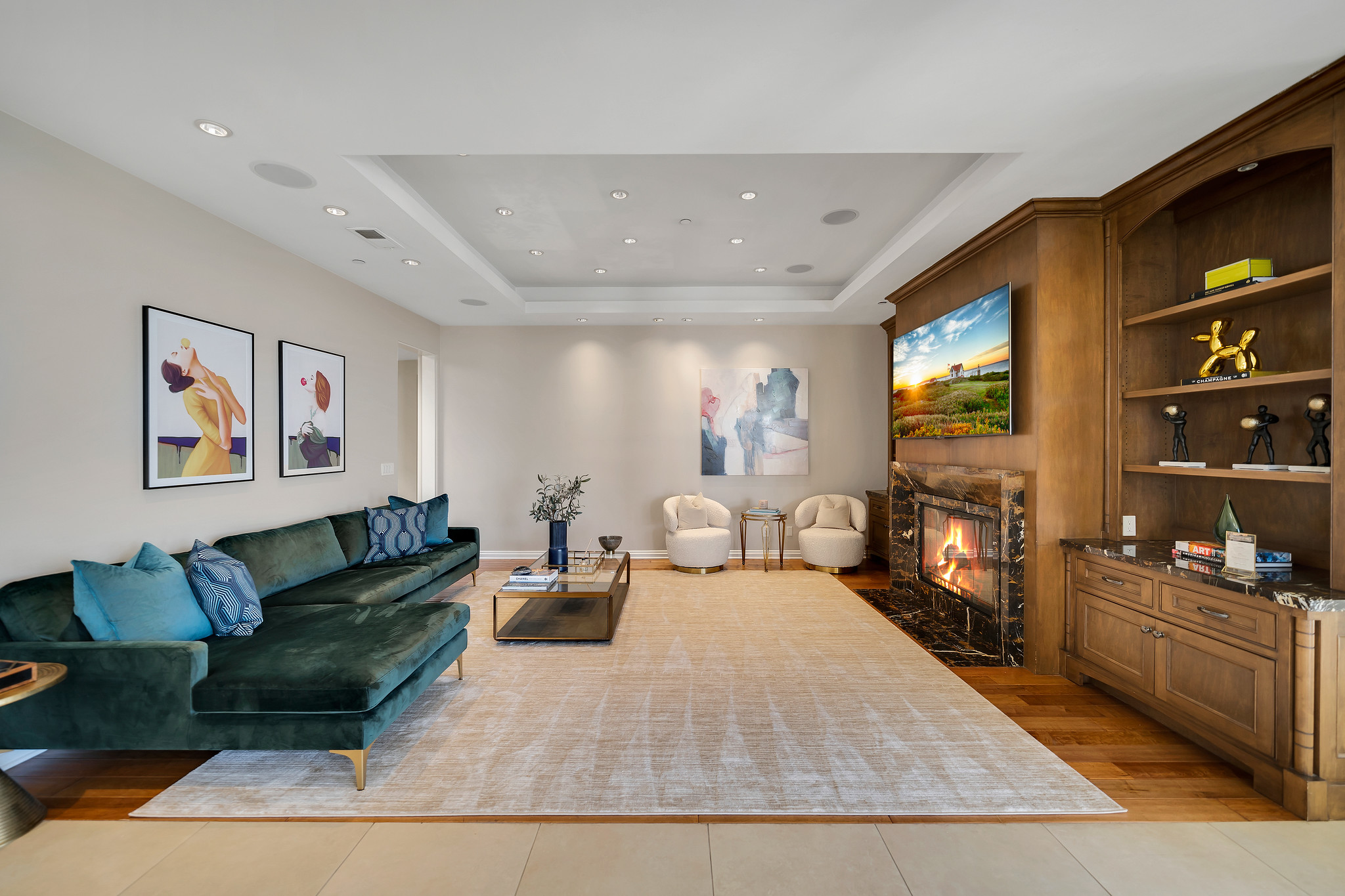 With floor-to-ceiling glass French doors gracing much of the home, an abundance of natural light floods the interiors, creating a seamless blend of indoor and outdoor living that enhances the overall experience.