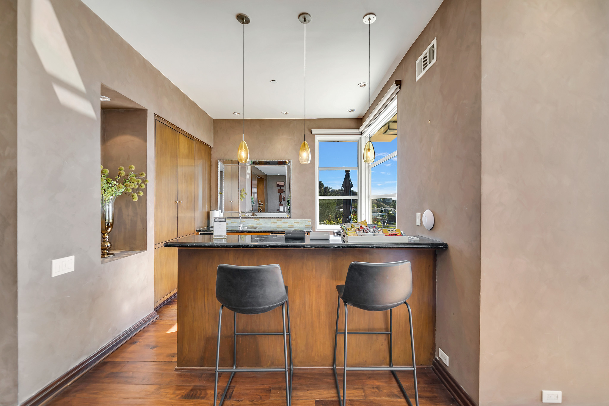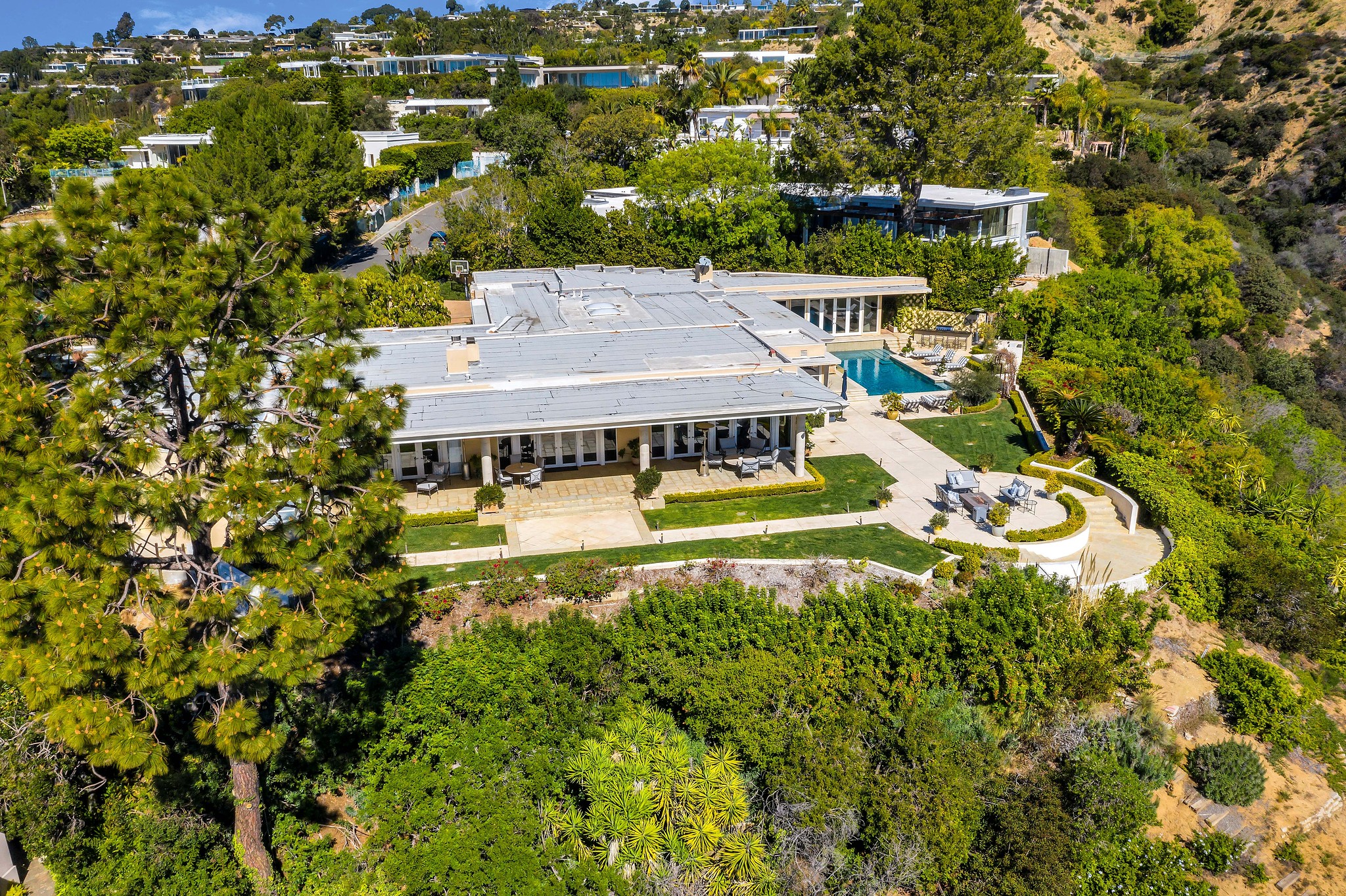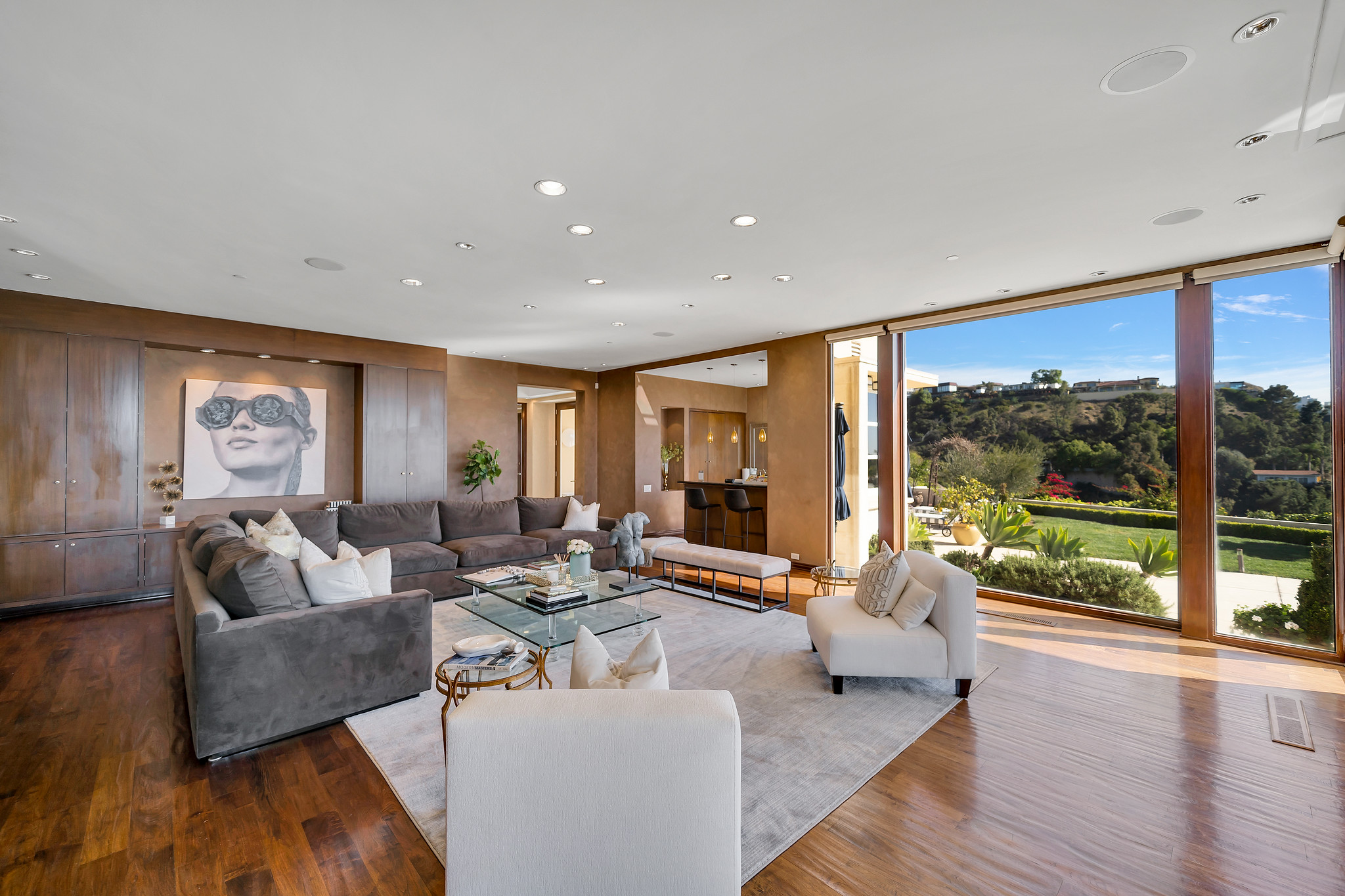 This exquisite villa offers unparalleled views of Beverly Hills, making it one of the most sought-after properties in the area. Nestled on a beautifully remodeled single-story estate, it is strategically positioned to capture breathtaking panoramas that extend from downtown Los Angeles to Century City and beyond to Catalina Island.