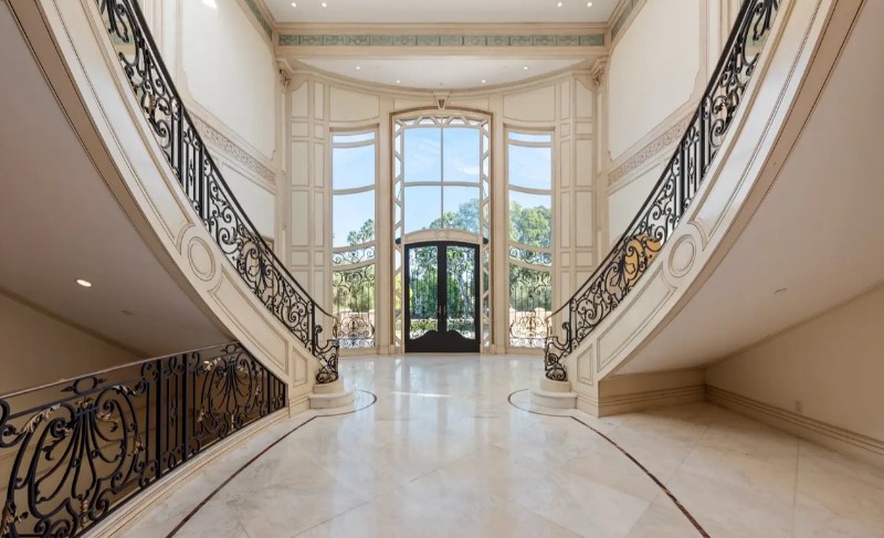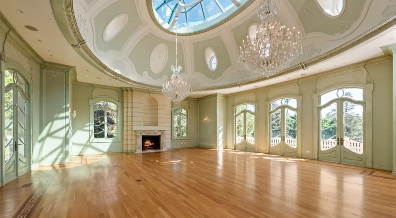 This expansive residence perfectly blends timeless elegance with state-of-the-art amenities, nestled in one of Beverly Hills’ most private neighborhoods. Designed for both entertainment and relaxation, the home features a luxurious theater, an indoor pool with spa and sauna, a grand ballroom, and light-filled living spaces with soaring cathedral ceilings. The primary suite offers a cozy sitting room with a fireplace, dual walk-in closets and bathrooms, and French doors that lead to a secluded private patio.
