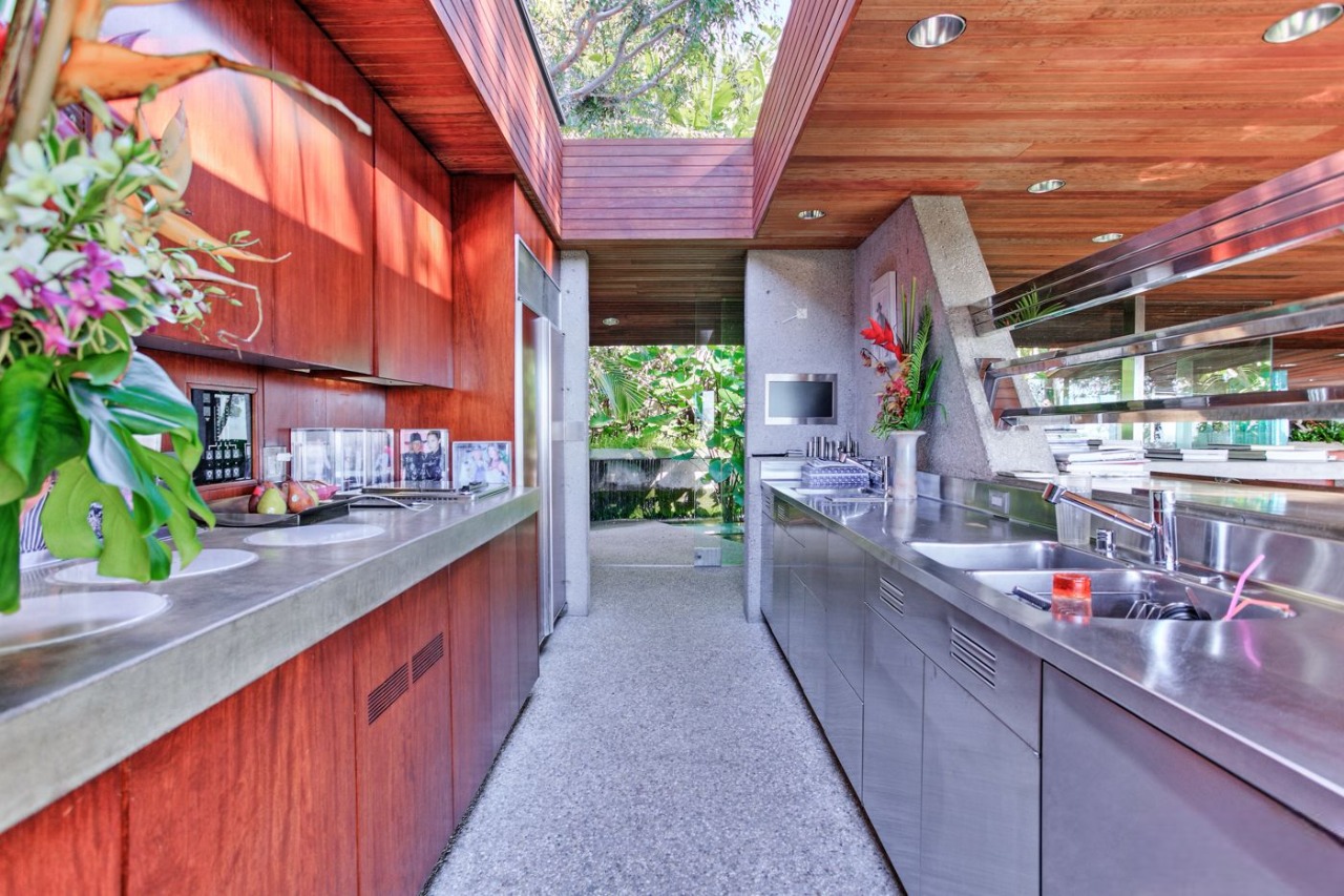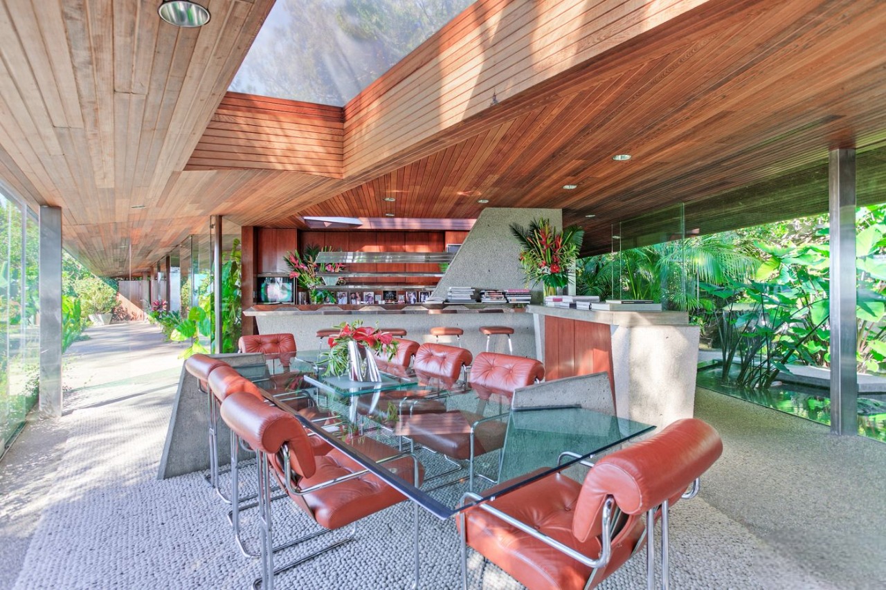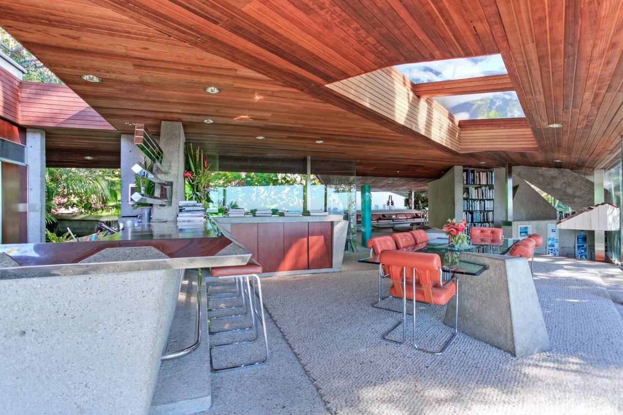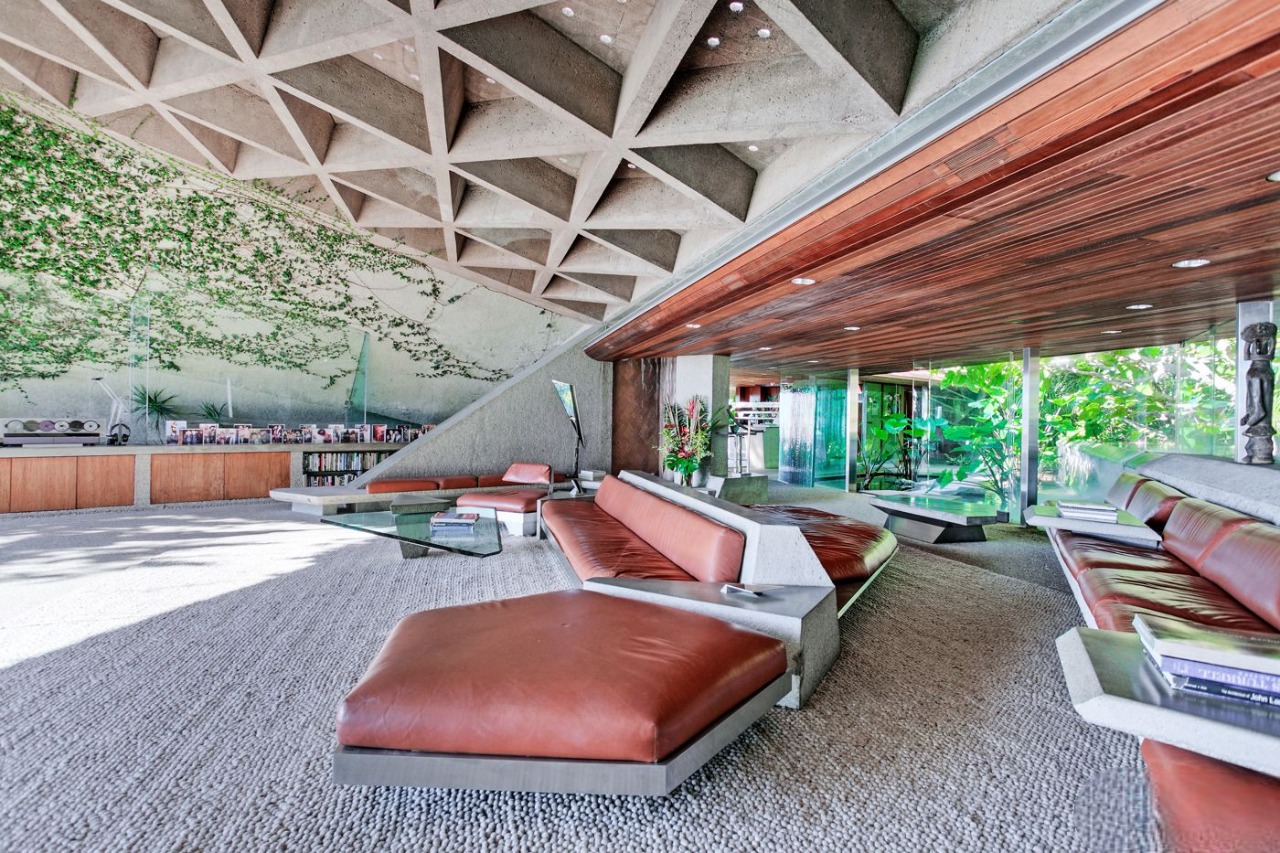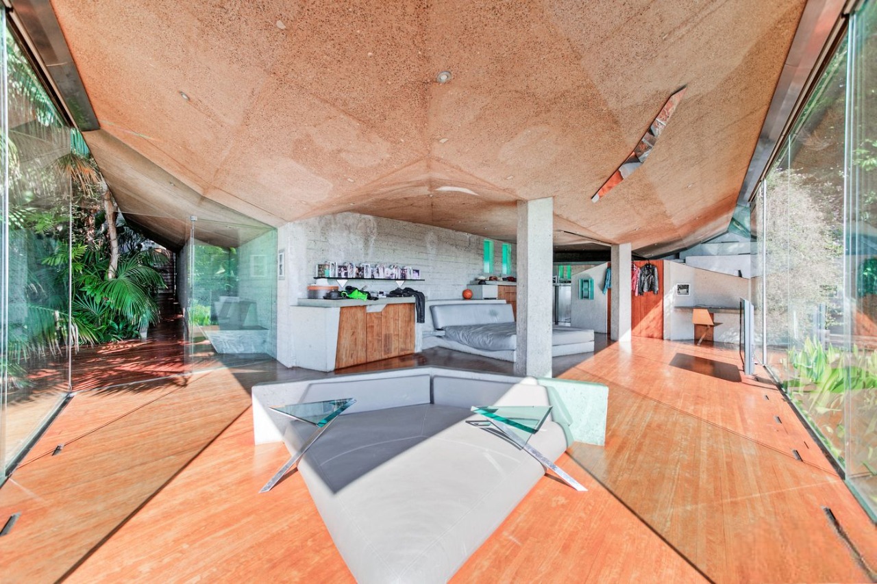 Its fascinating and layered construction history began in 1962 with architect John Lautner collaborating with the Sheats family. Over the past seven decades, the residence has been expanded and refined multiple times—first by Lautner alongside the current owner, James Goldstein, and later by two additional architectural teams—resulting in a continually evolving masterpiece nestled in the exclusive Beverly Hills enclave.