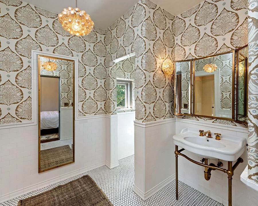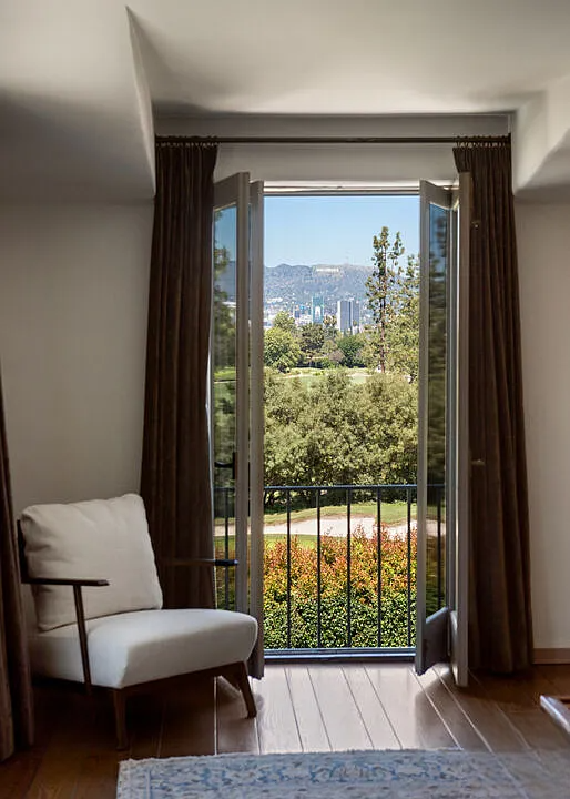 Every aspect of this captivating home has been thoughtfully crafted, featuring exquisite finishes and tasteful design throughout. Entering through the gated driveway, you are welcomed by a grand motor court leading to a spacious three-car garage and workshop. The chef’s kitchen boasts polished brass countertops and a stunning 24-foot island, flowing seamlessly into a large family room complete with floor-to-ceiling bookshelves and a separate bar. The primary suite offers breathtaking views of the iconic Hollywood Sign and the lush fairways of Wilshire Country Club, evoking an atmosphere of old Hollywood grandeur.