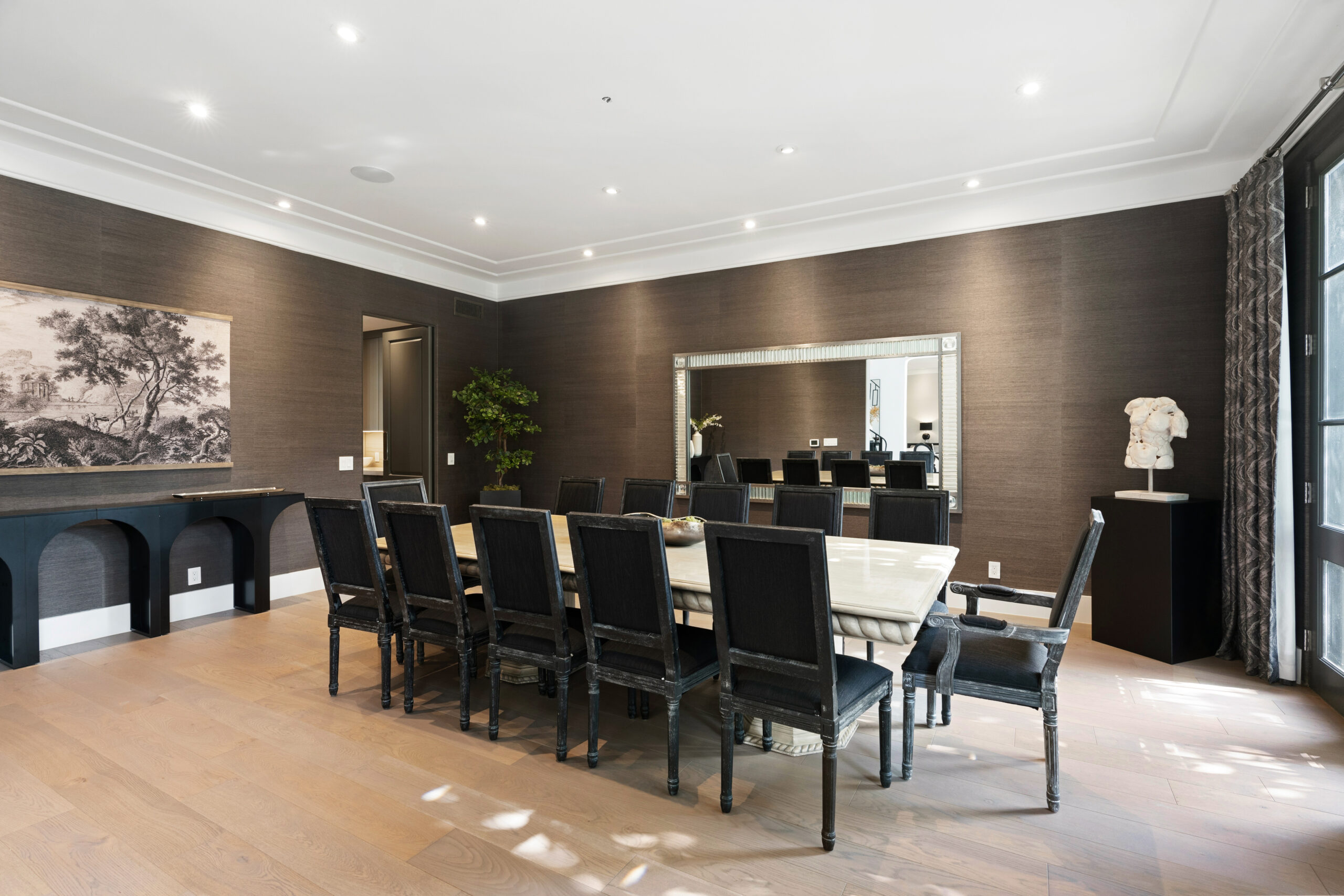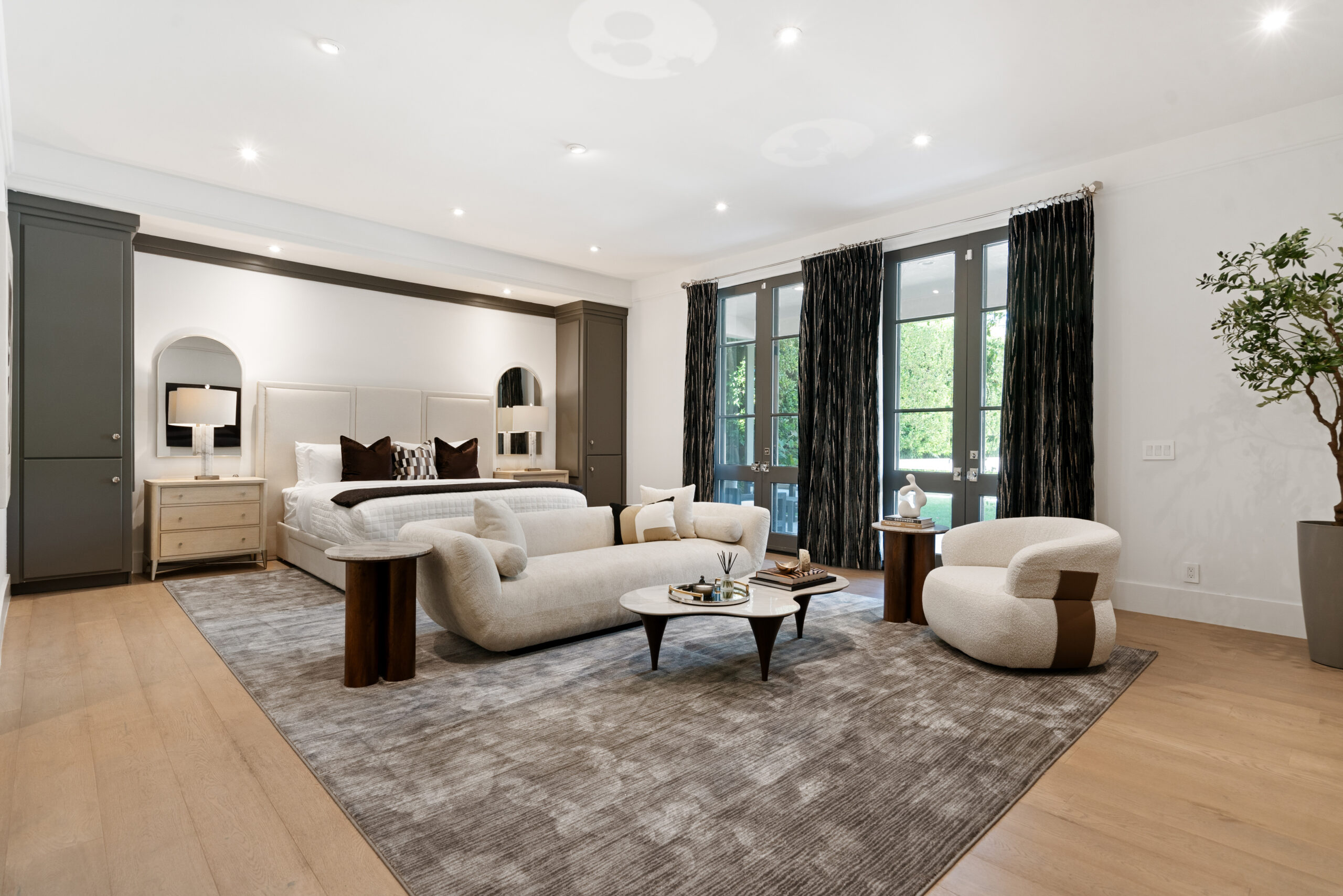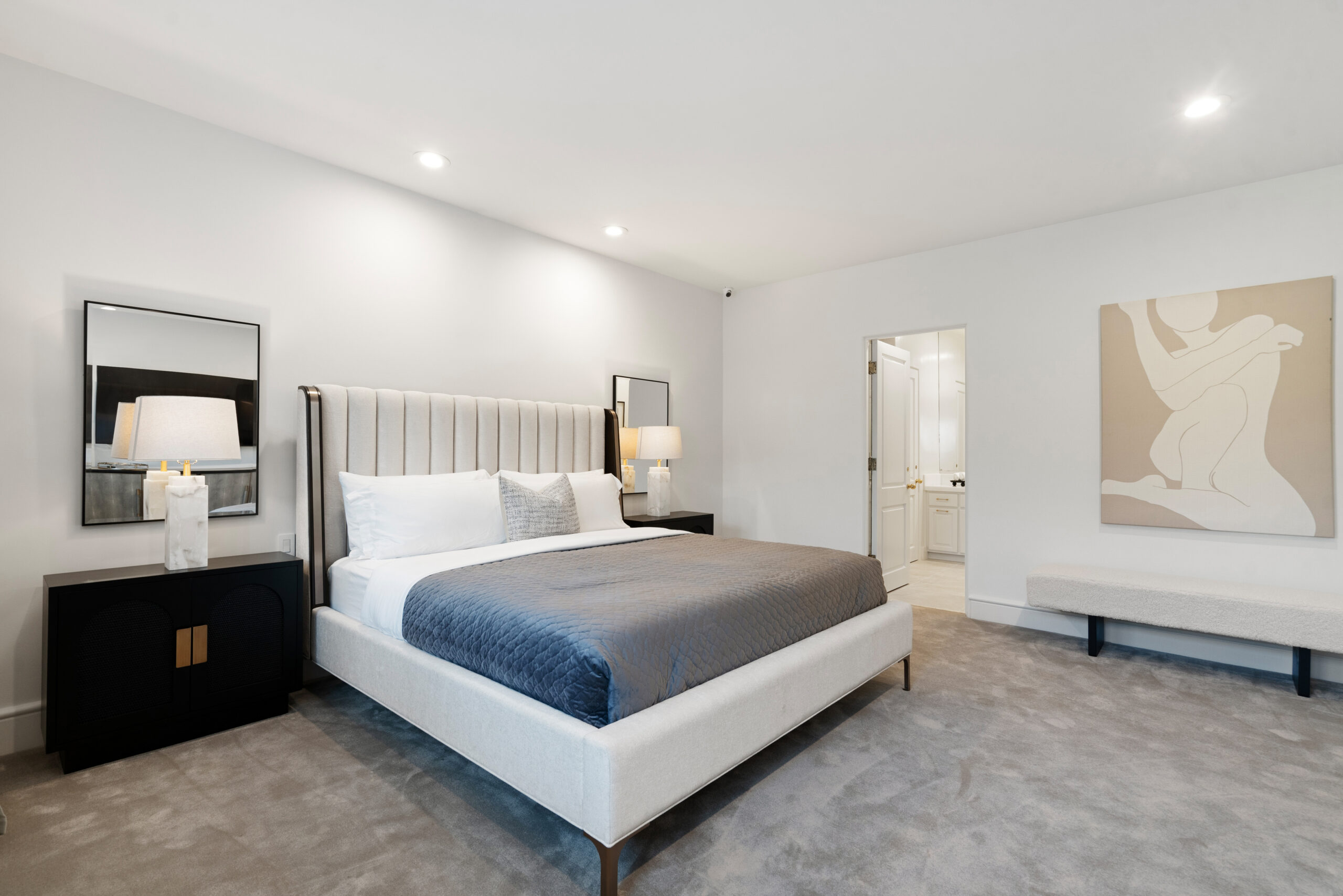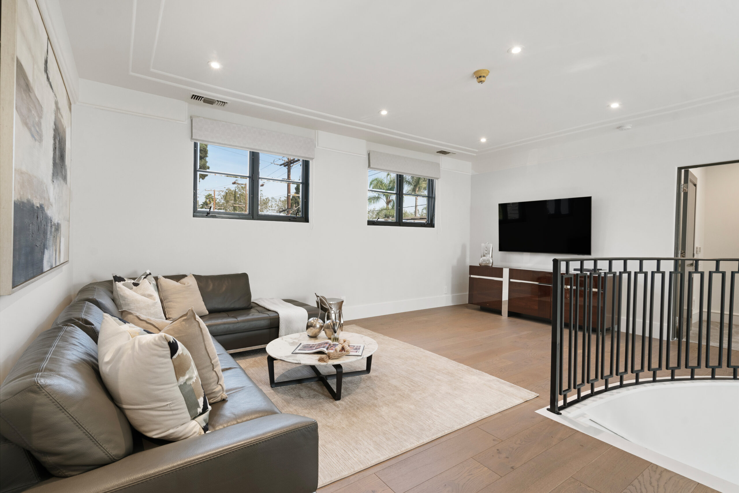 This beautifully updated 6-bedroom home, nestled just north of Santa Monica Boulevard in the desirable Flats of Beverly Hills, effortlessly combines traditional architecture with contemporary design elements. The residence features a spacious layout that balances classic charm with modern sophistication, creating an inviting and elegant atmosphere throughout.