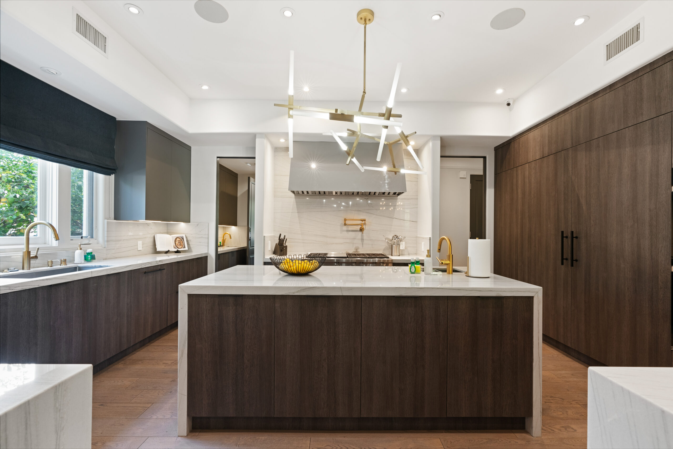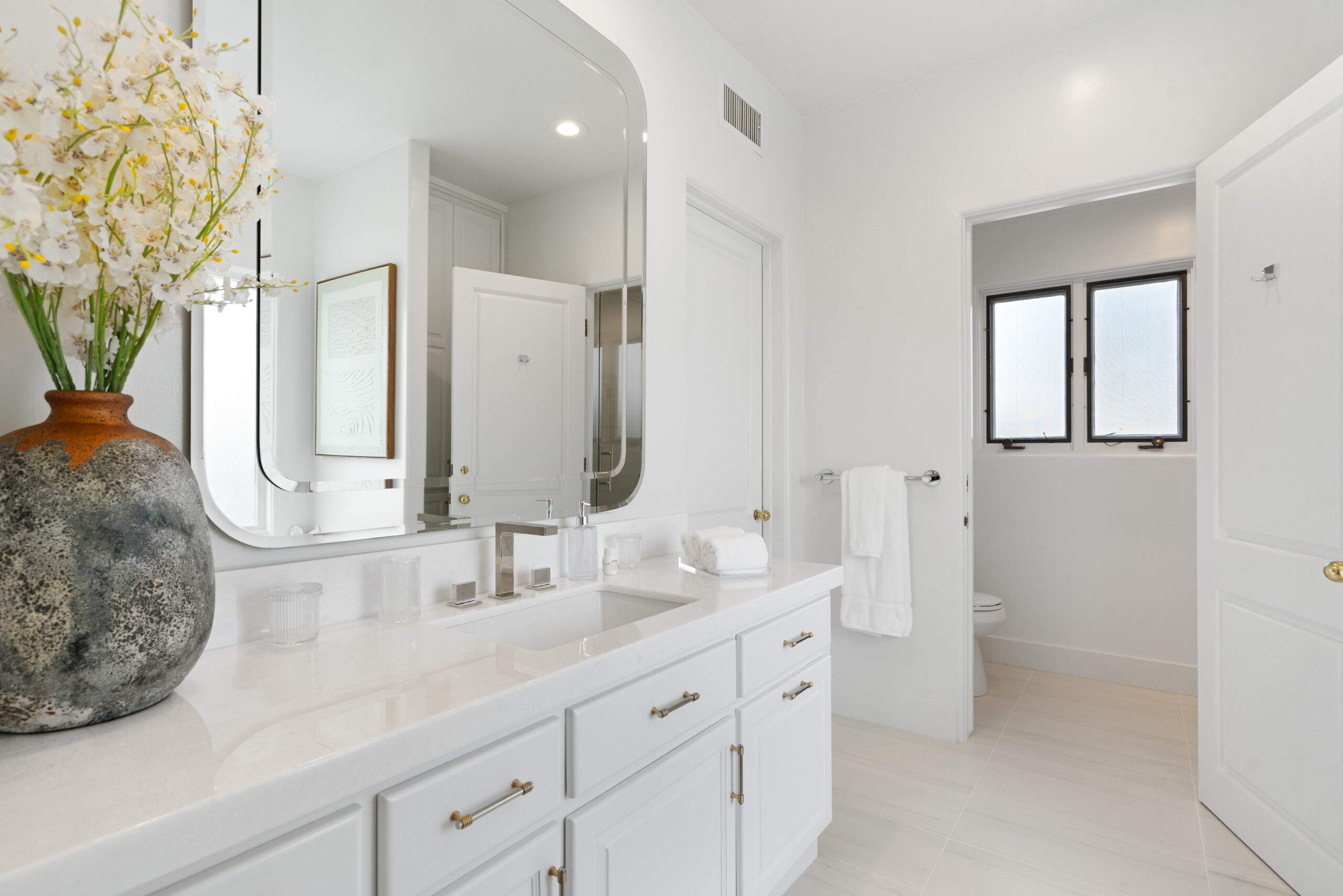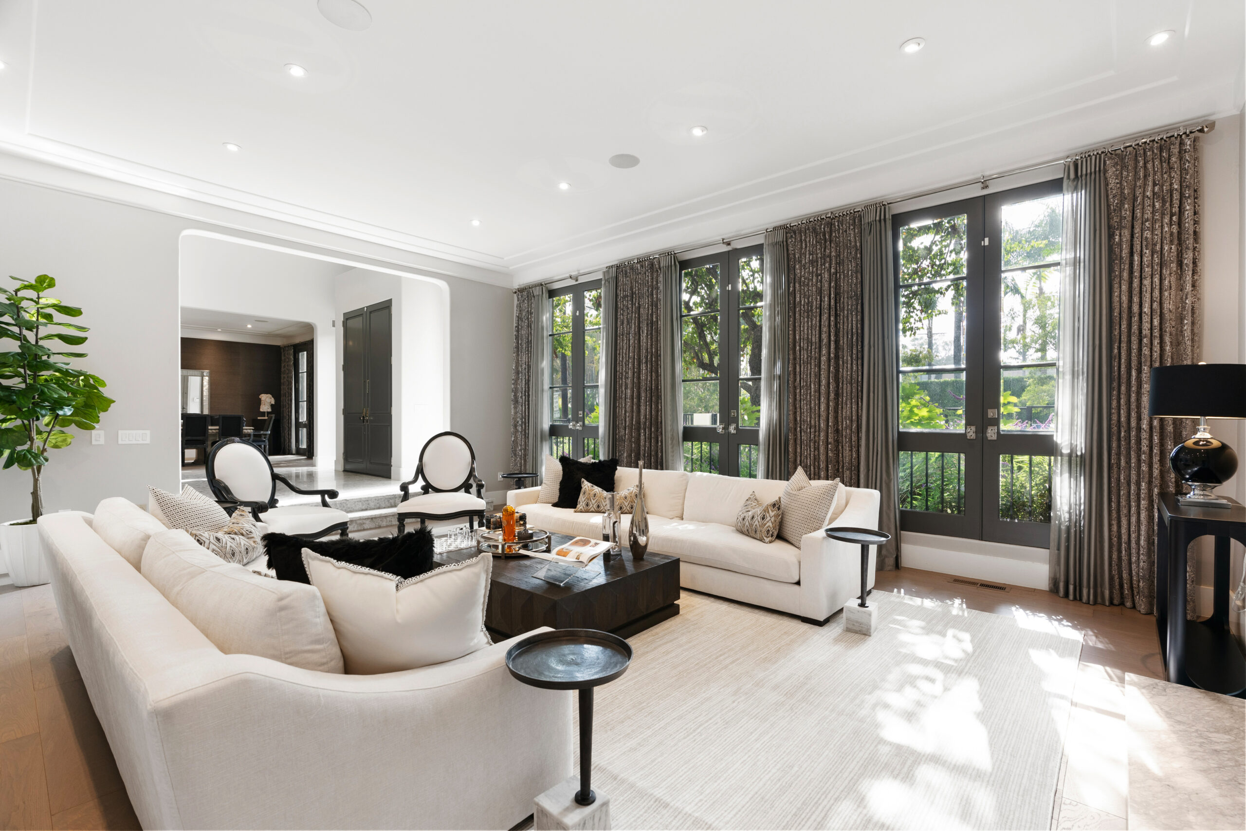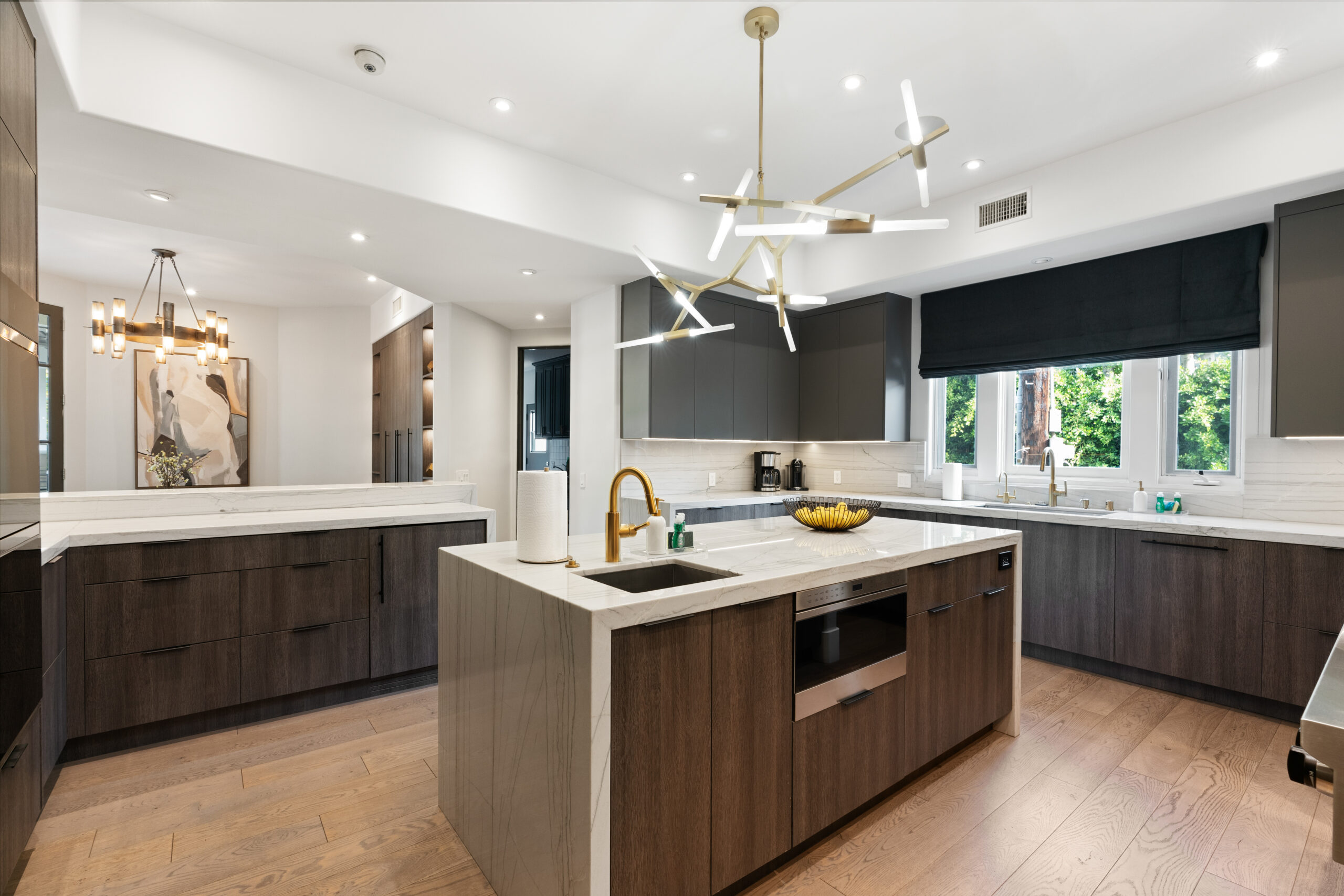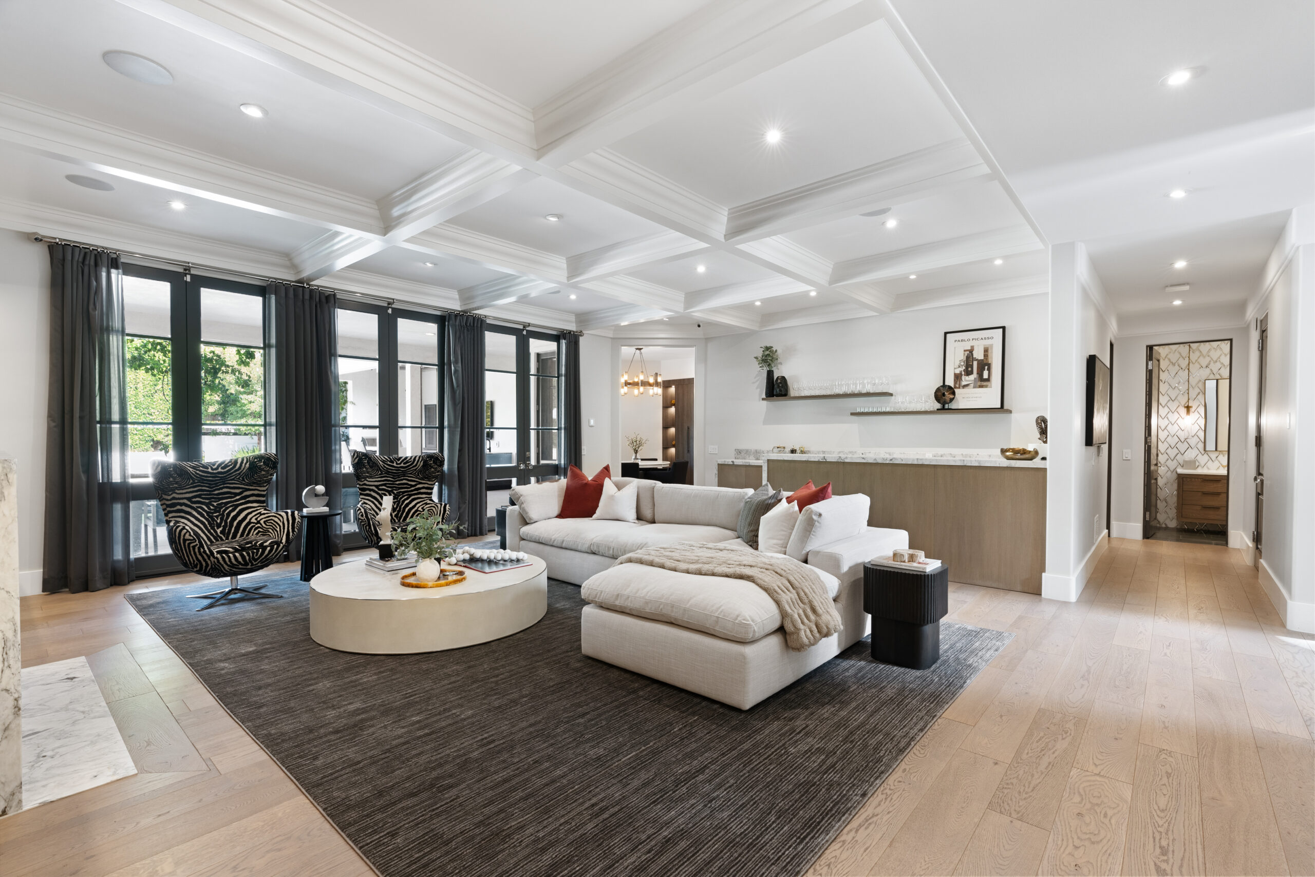 This beautifully updated 6-bedroom home, nestled just north of Santa Monica Boulevard in the desirable Flats of Beverly Hills, effortlessly combines traditional architecture with contemporary design elements. The residence features a spacious layout that balances classic charm with modern sophistication, creating an inviting and elegant atmosphere throughout.