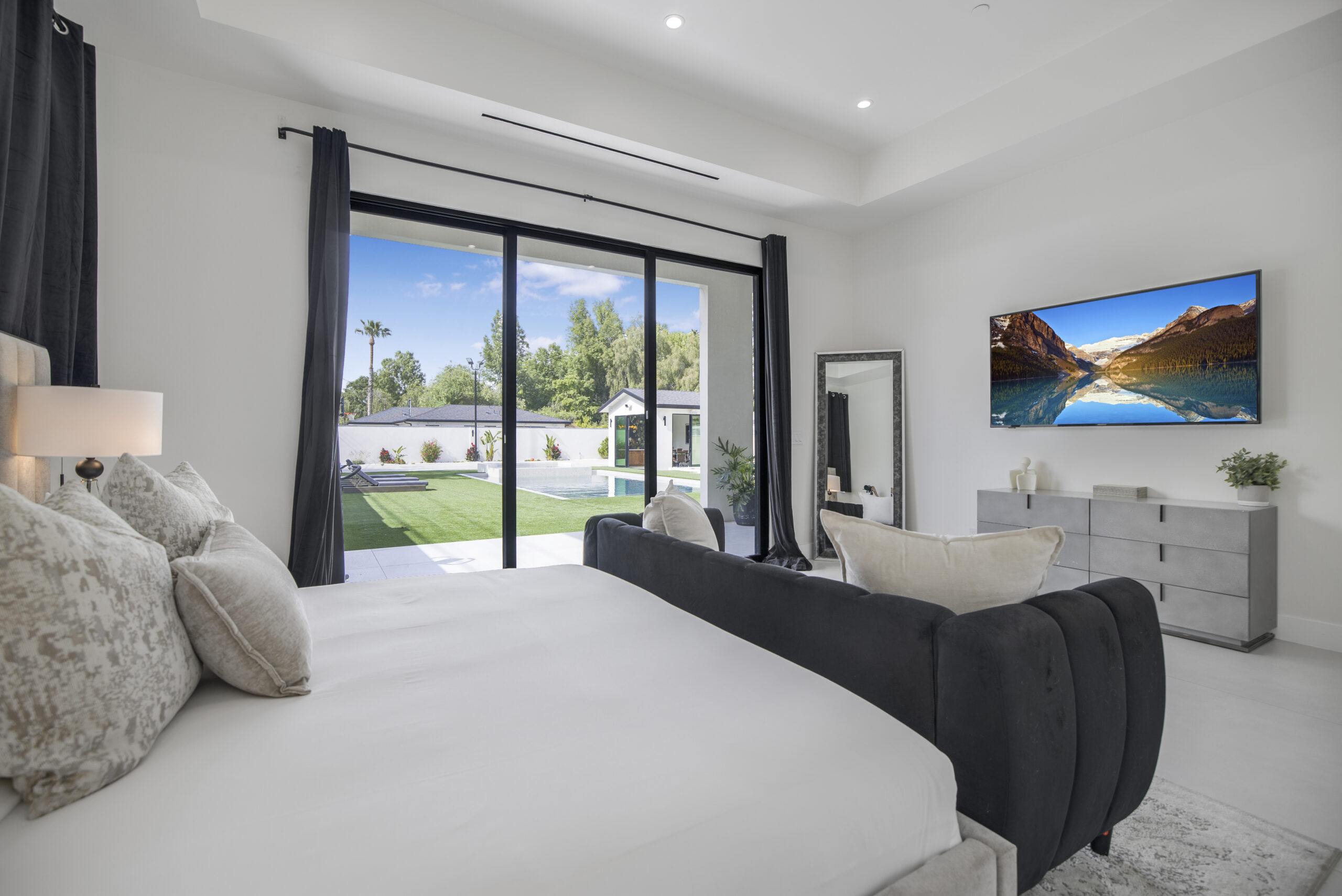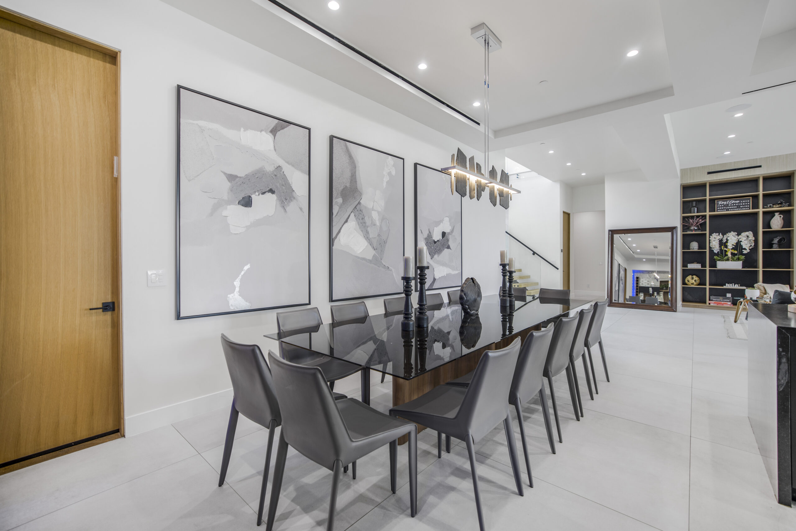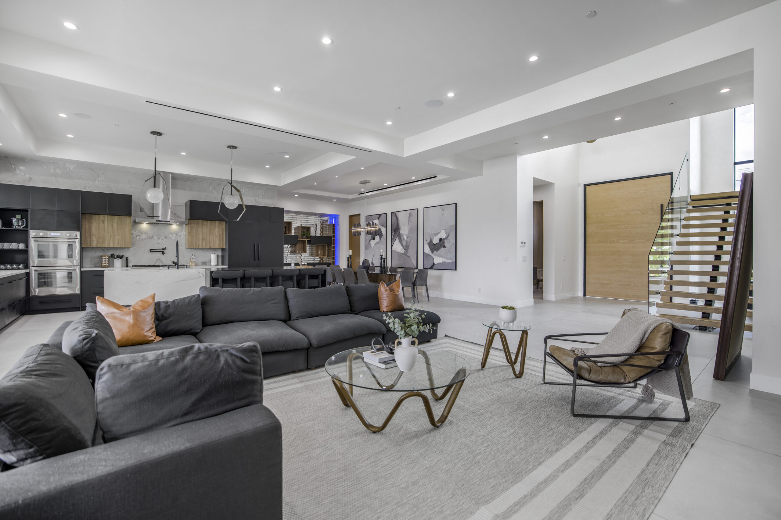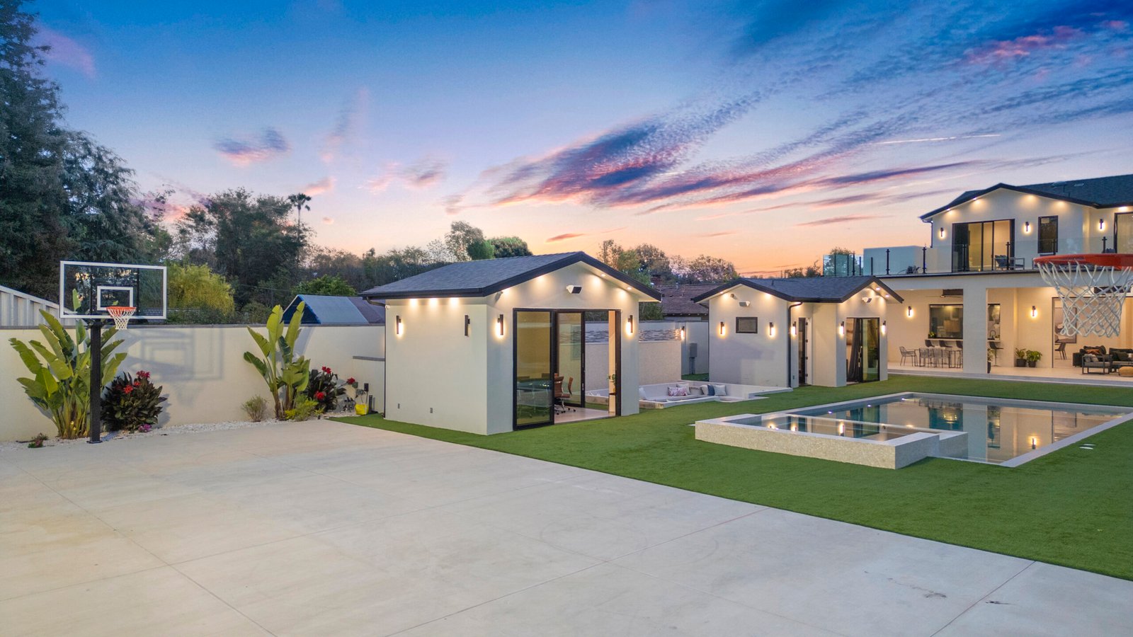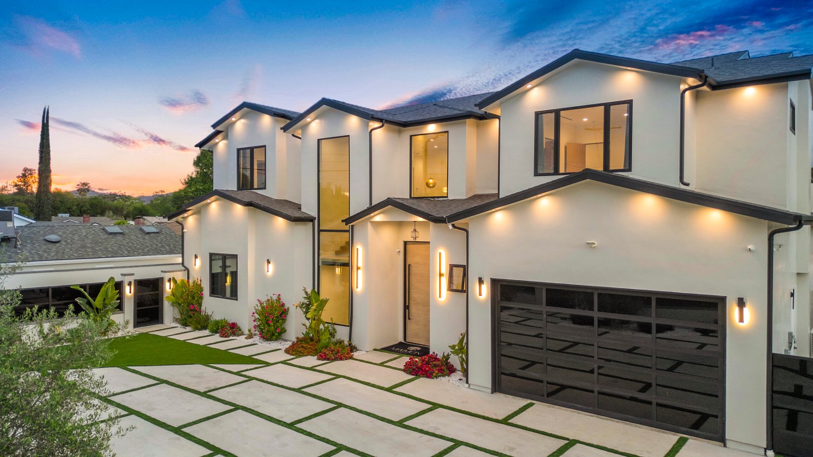 Experience the ultimate in luxury, privacy, and exceptional income potential with this newly built, gated estate. The grand main residence spans an impressive 6,387 sq. ft. and is complemented by two income-generating ADUs totaling 2,100 sq. ft.—a truly rare opportunity. Inside, you’ll find elegant interiors featuring soaring 12-foot ceilings, Venetian plaster walls, and a state-of-the-art Crestron smart home system. Enjoy cozy evenings by the fireplace or entertain guests in the private theater room, thoughtfully designed with plush seating for eight.