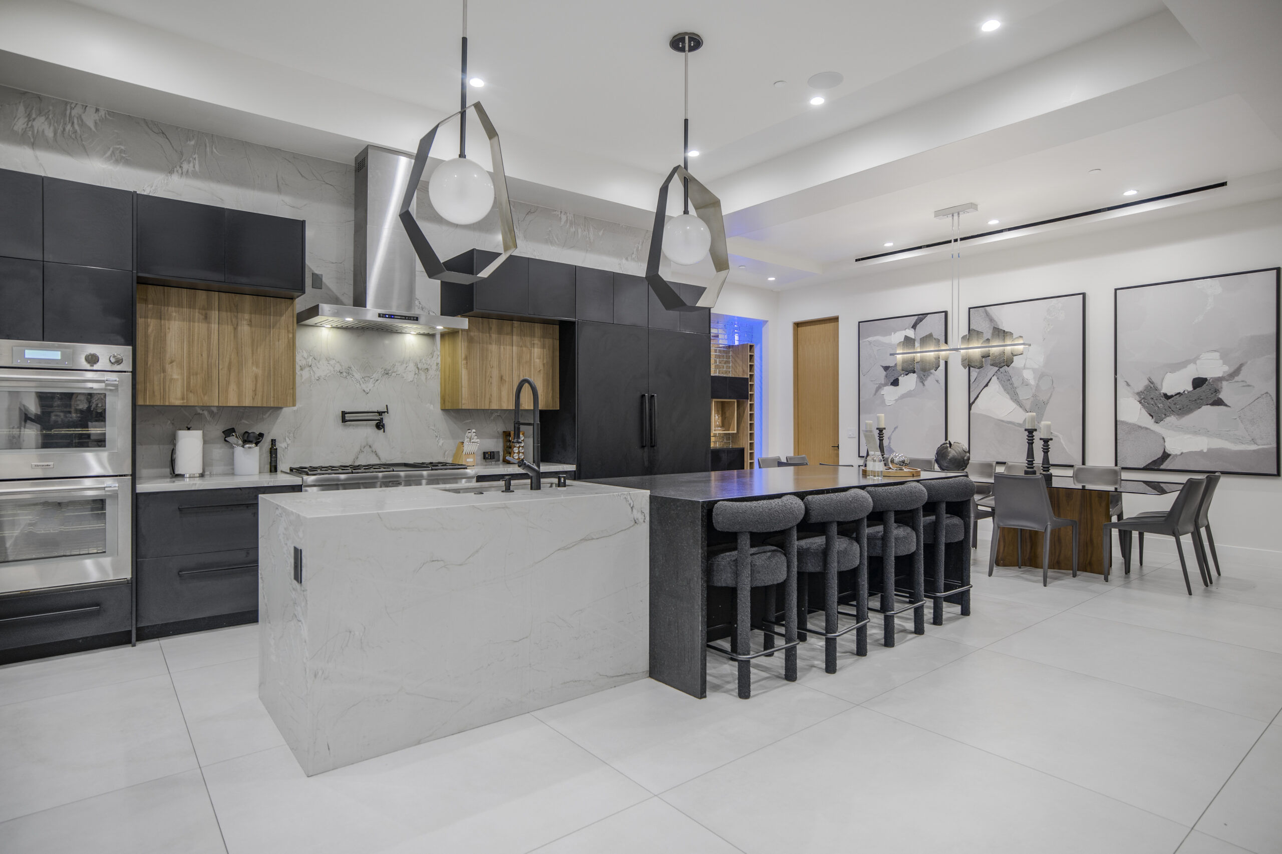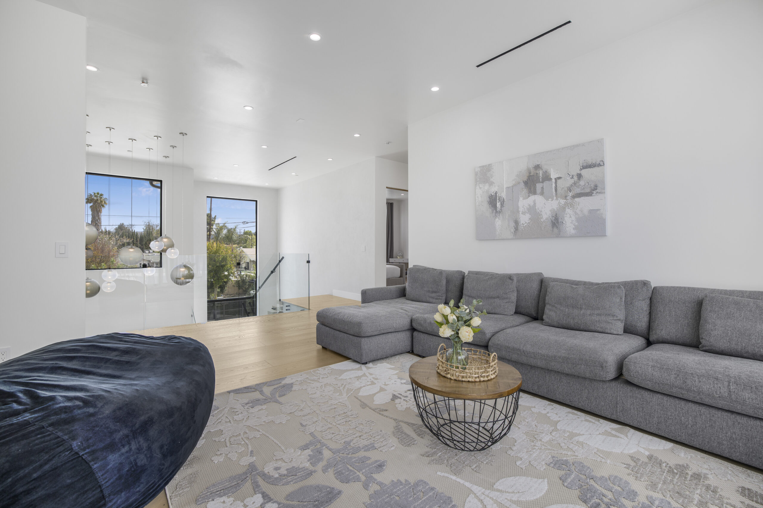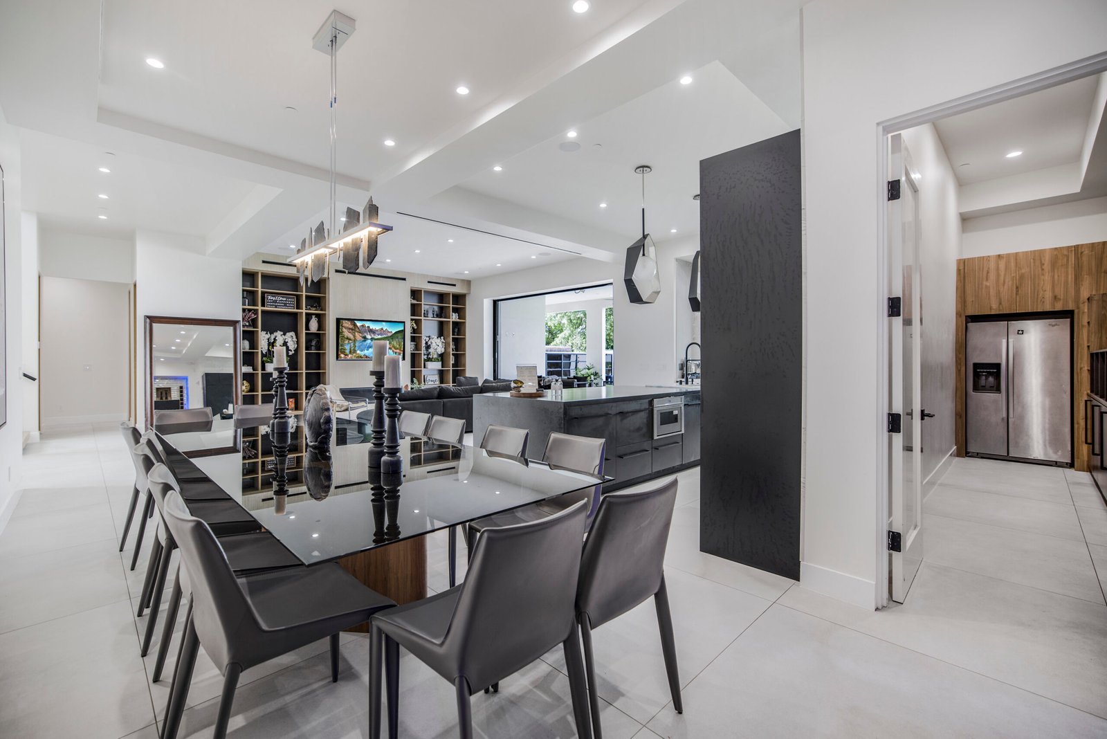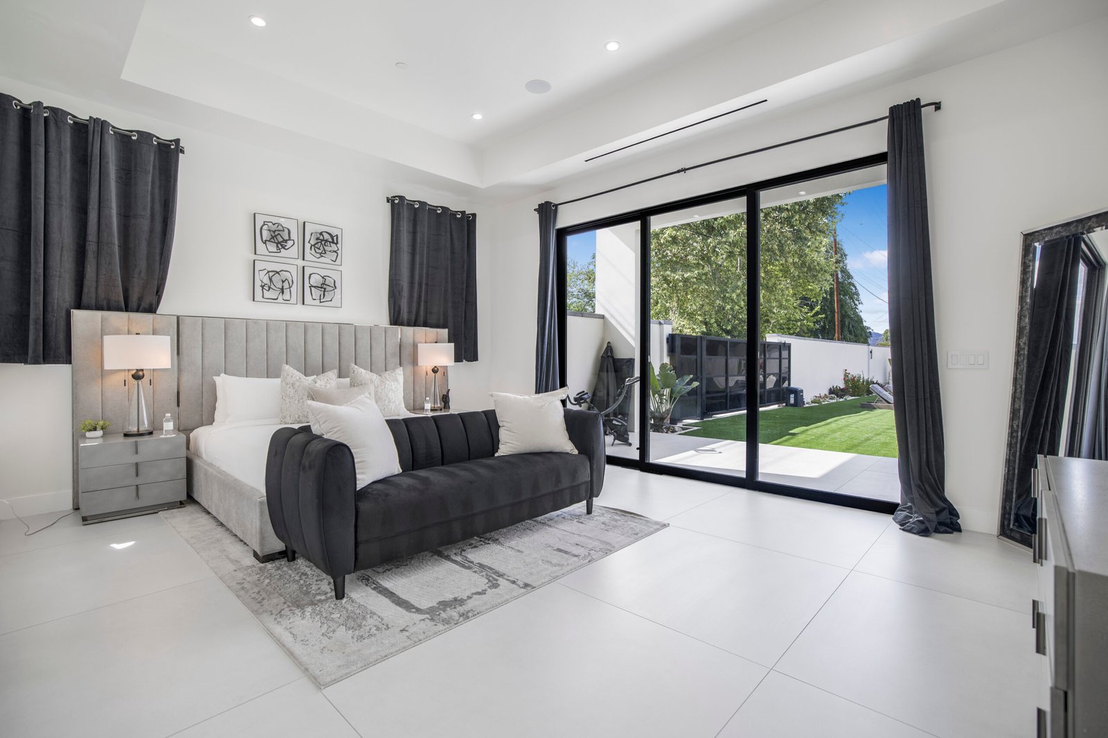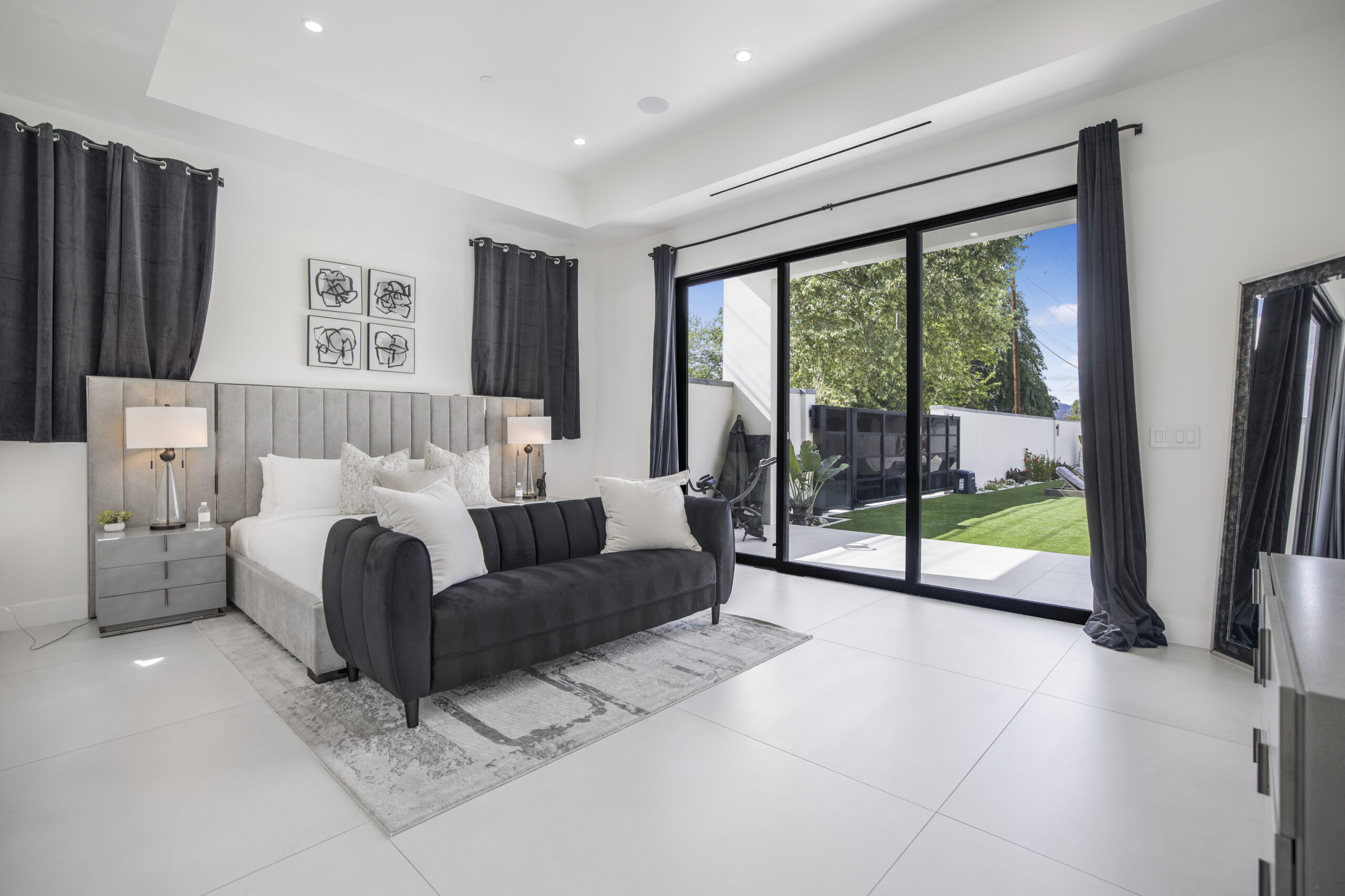 Experience the ultimate in luxury, privacy, and exceptional income potential with this newly built, gated estate. The grand main residence spans an impressive 6,387 sq. ft. and is complemented by two income-generating ADUs totaling 2,100 sq. ft.—a truly rare opportunity. Inside, you’ll find elegant interiors featuring soaring 12-foot ceilings, Venetian plaster walls, and a state-of-the-art Crestron smart home system. Enjoy cozy evenings by the fireplace or entertain guests in the private theater room, thoughtfully designed with plush seating for eight.