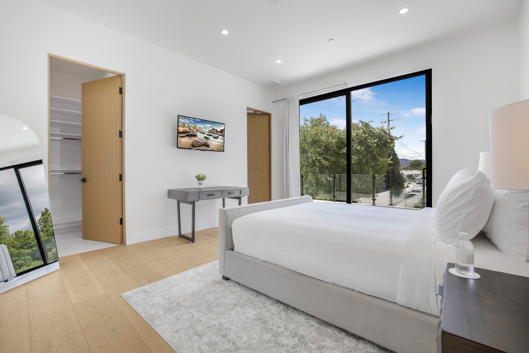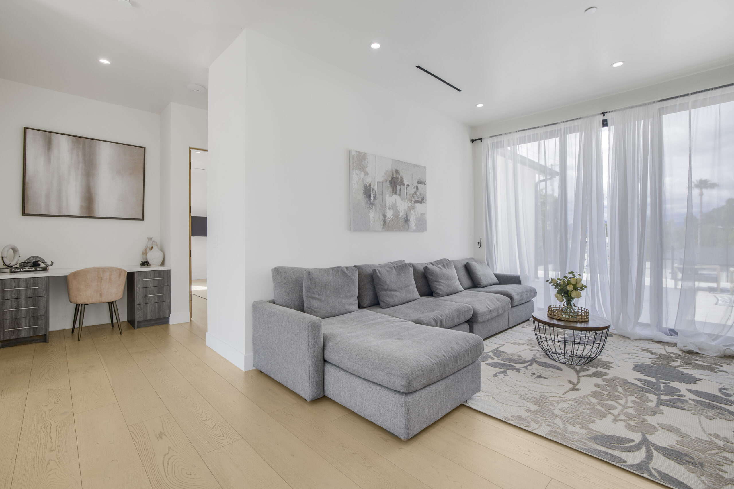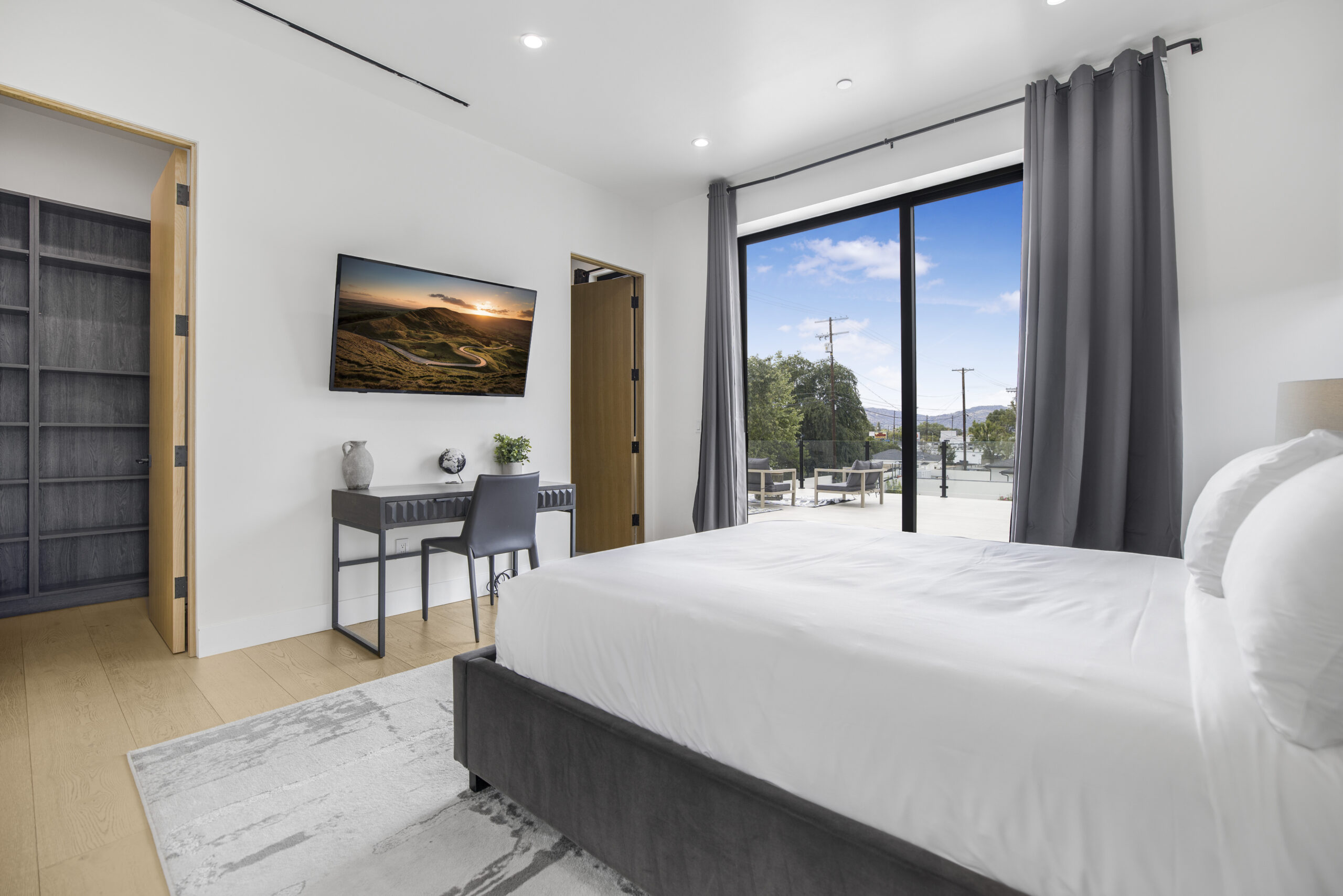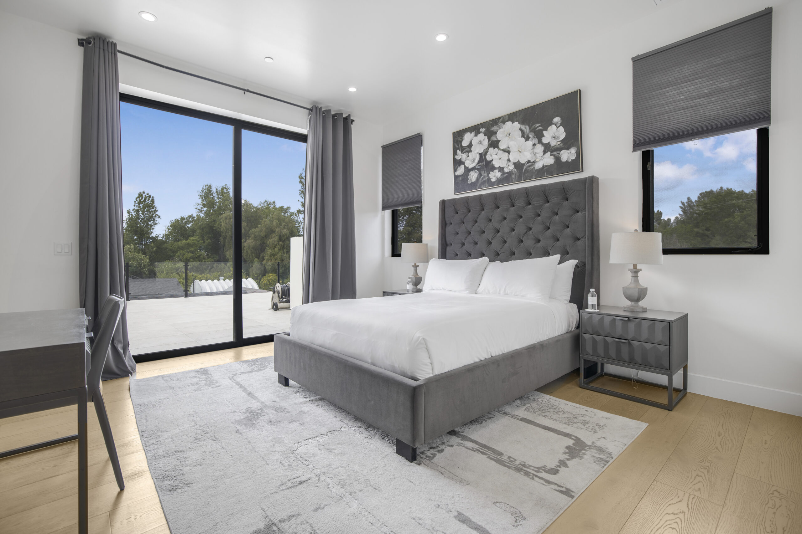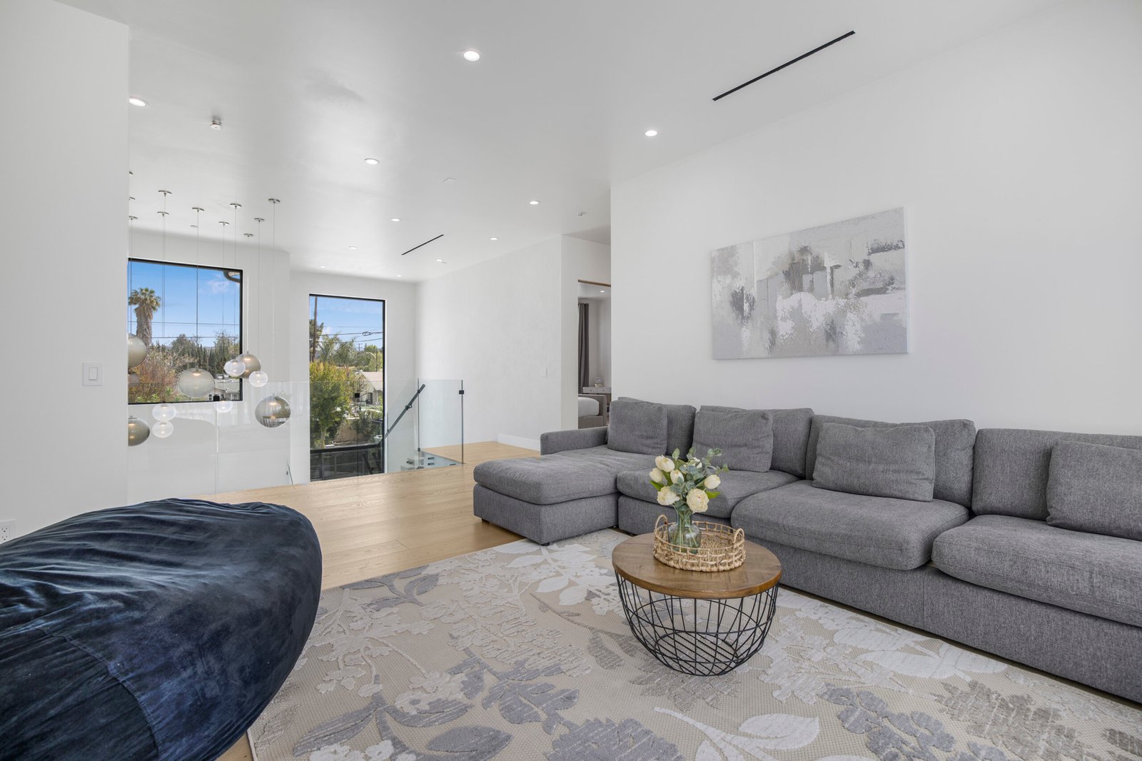 Experience the ultimate in luxury, privacy, and exceptional income potential with this newly built, gated estate. The grand main residence spans an impressive 6,387 sq. ft. and is complemented by two income-generating ADUs totaling 2,100 sq. ft.—a truly rare opportunity. Inside, you’ll find elegant interiors featuring soaring 12-foot ceilings, Venetian plaster walls, and a state-of-the-art Crestron smart home system. Enjoy cozy evenings by the fireplace or entertain guests in the private theater room, thoughtfully designed with plush seating for eight.