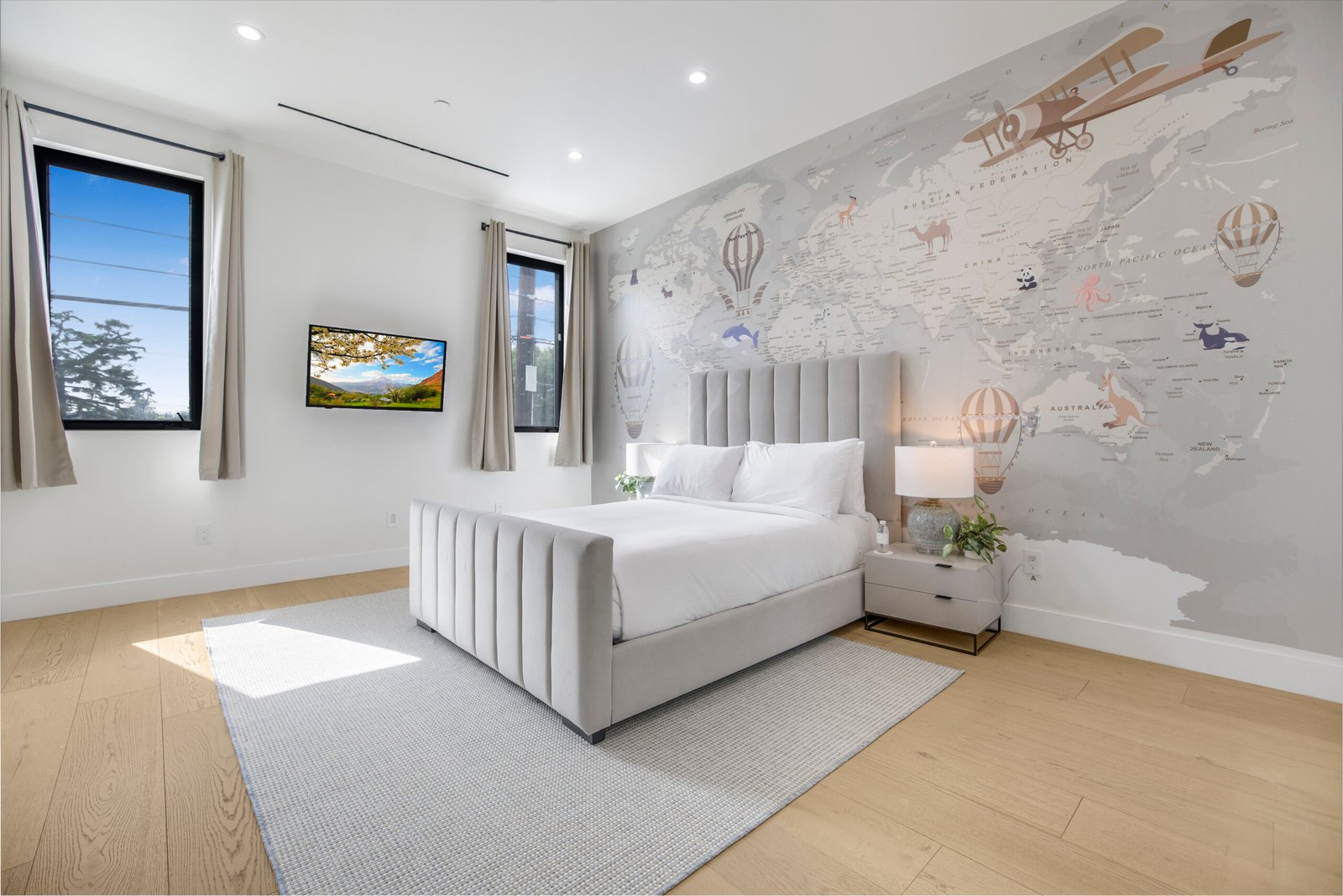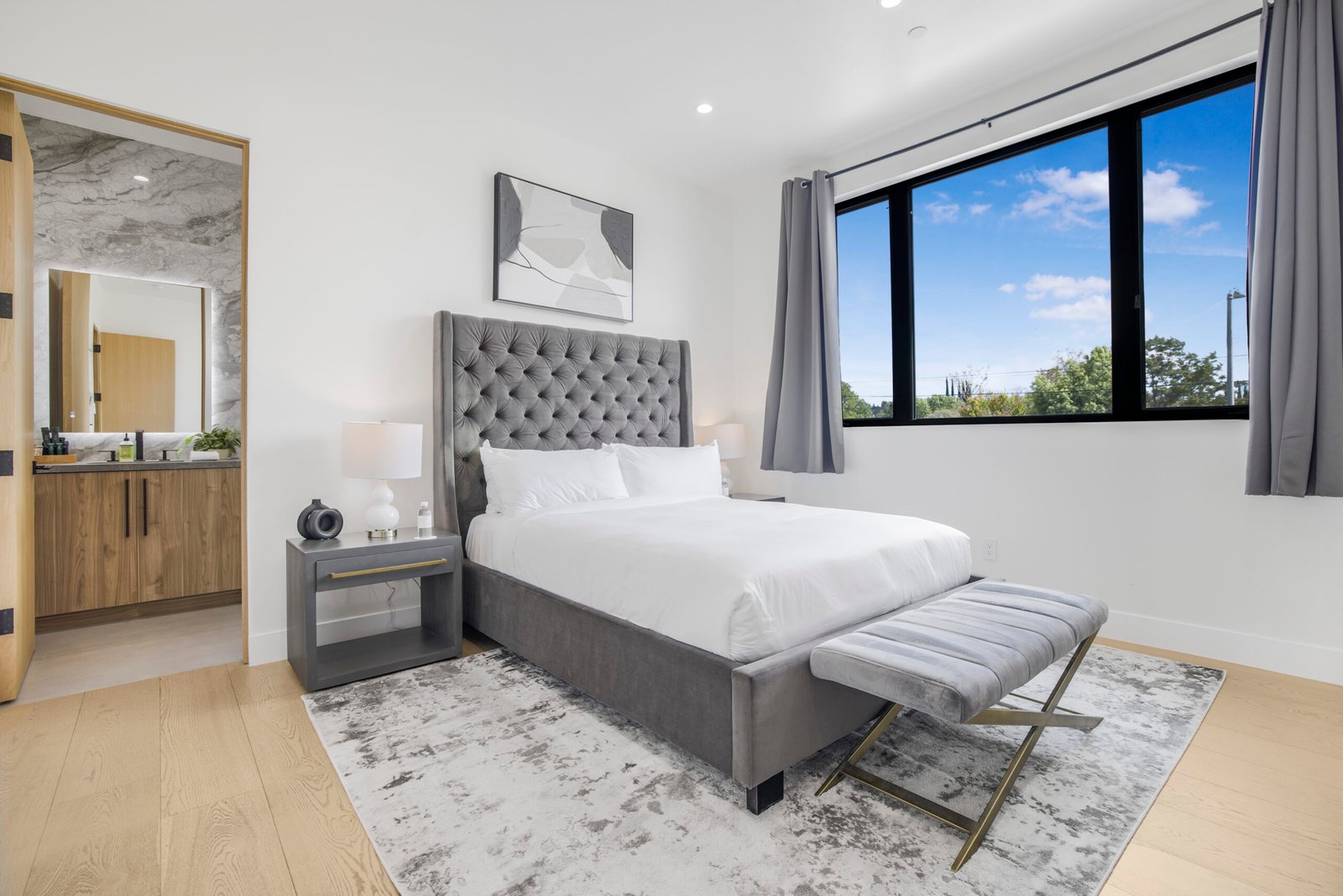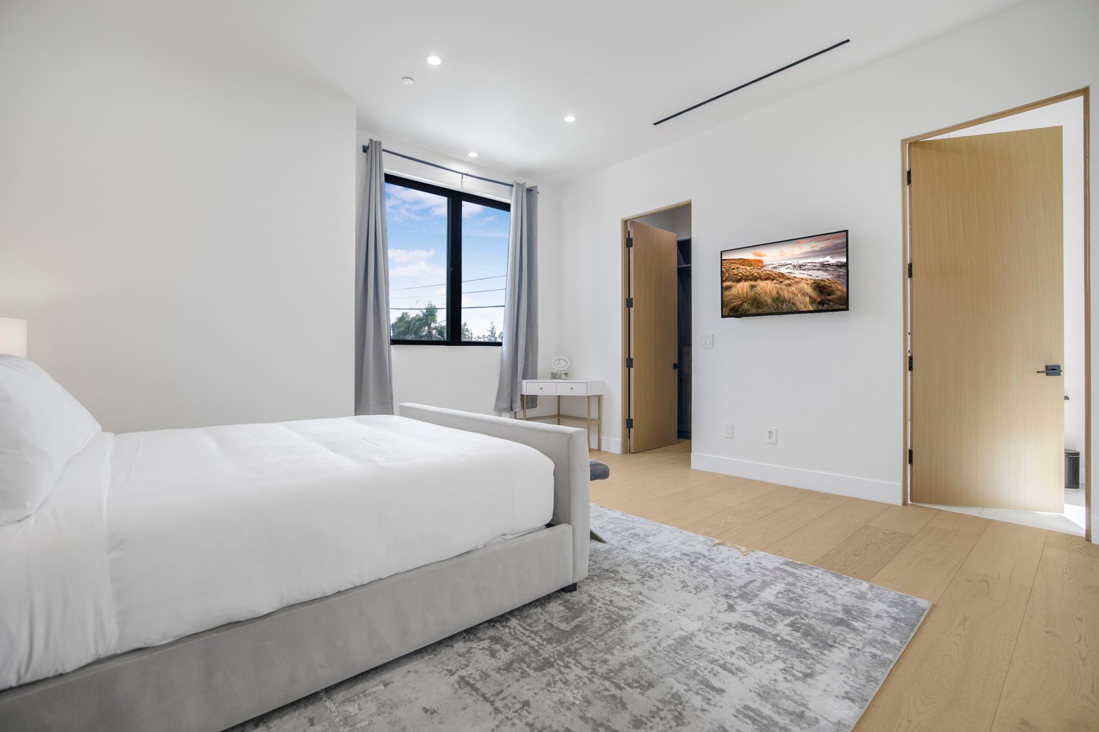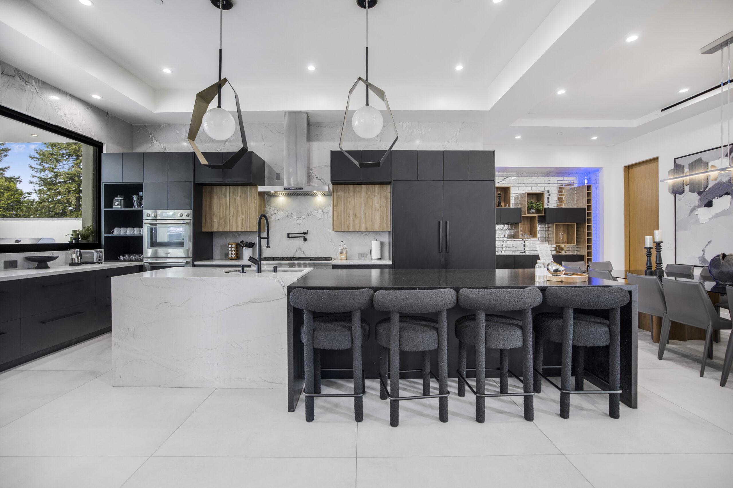 The chef’s kitchen is a culinary dream, equipped with a 6-burner stove, premium appliances, a large island, walk-in pantry, and both an extra fridge and wine fridge. The spacious primary suite offers a serene retreat with a generous walk-in closet and a spa-like bathroom complete with a soaking tub and his-and-hers toilets, providing both comfort and sophistication.