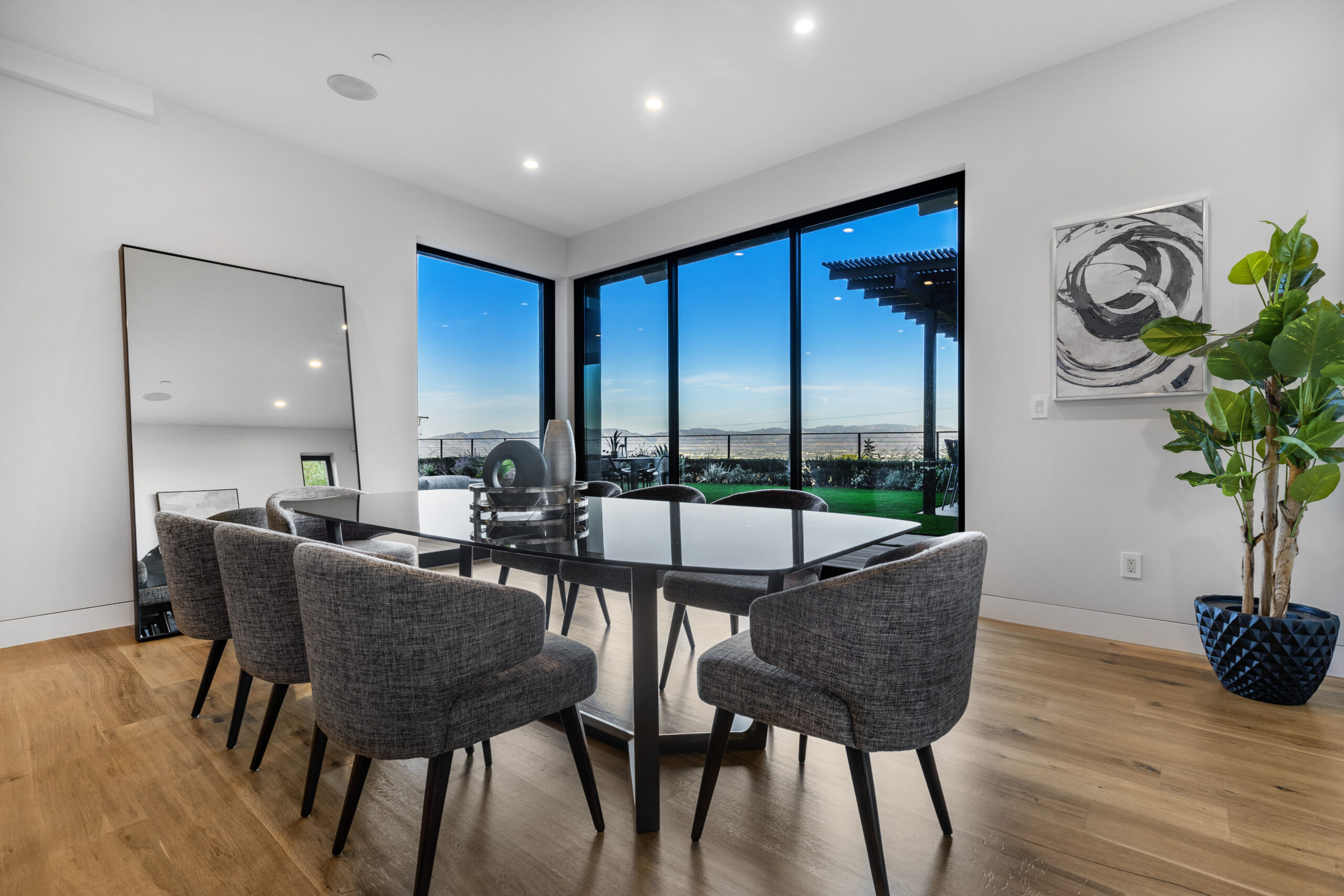 Discover this newly built, fully furnished villa perfectly situated in a tranquil cul-de-sac, offering breathtaking panoramic views of the valley. The expansive open floor plan showcases soaring ceilings, a formal living area, and an elegant dining room complete with a wine cellar, creating an atmosphere of refined sophistication. The gourmet kitchen stands out as a chef’s dream, featuring a large island and top-of-the-line appliances designed for both style and functionality.