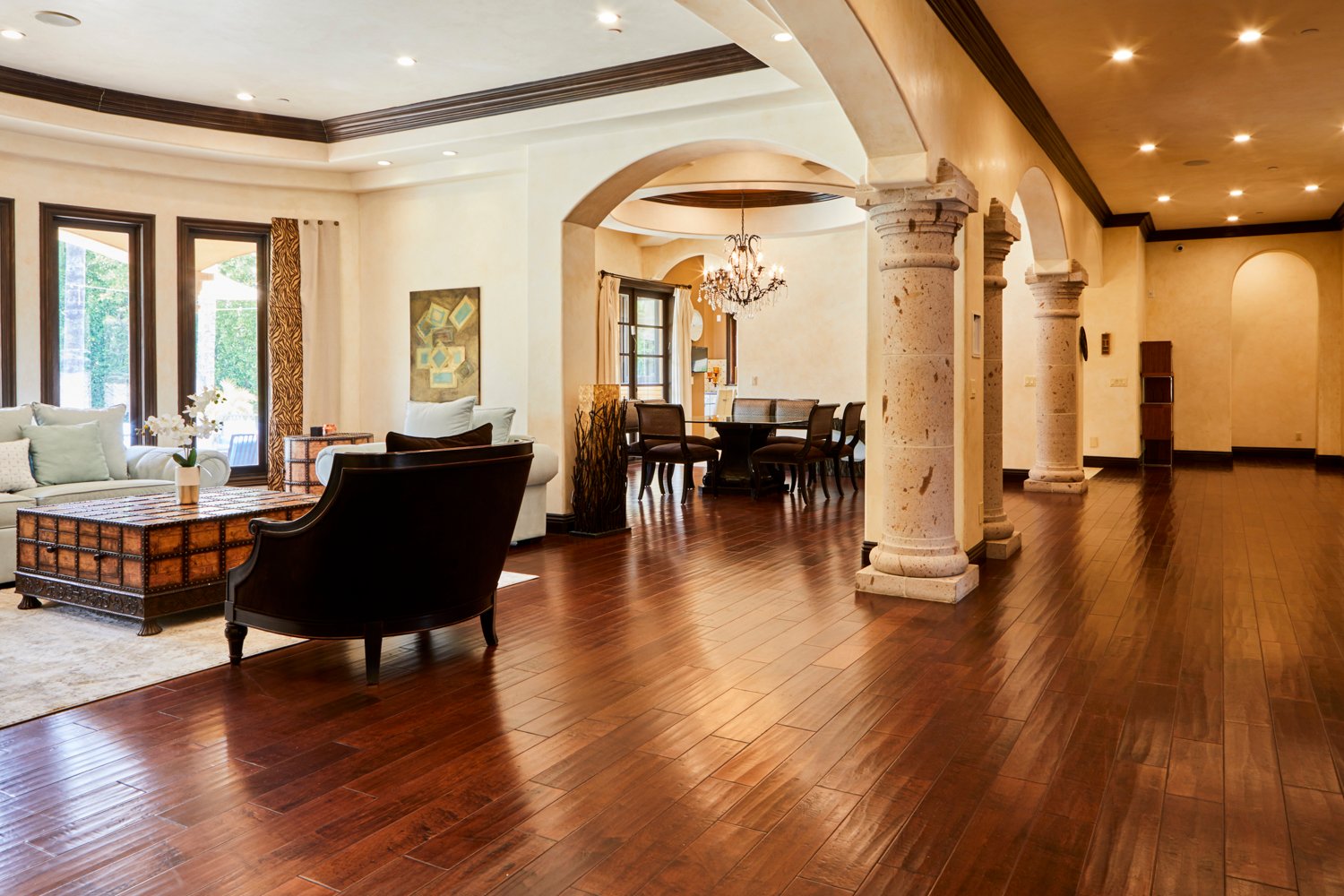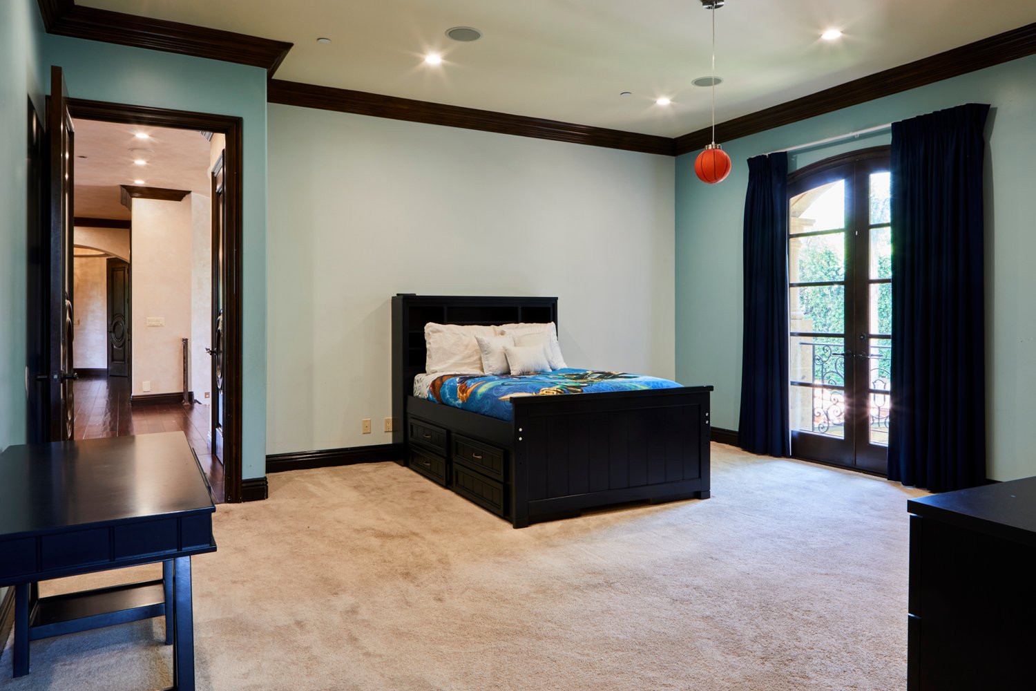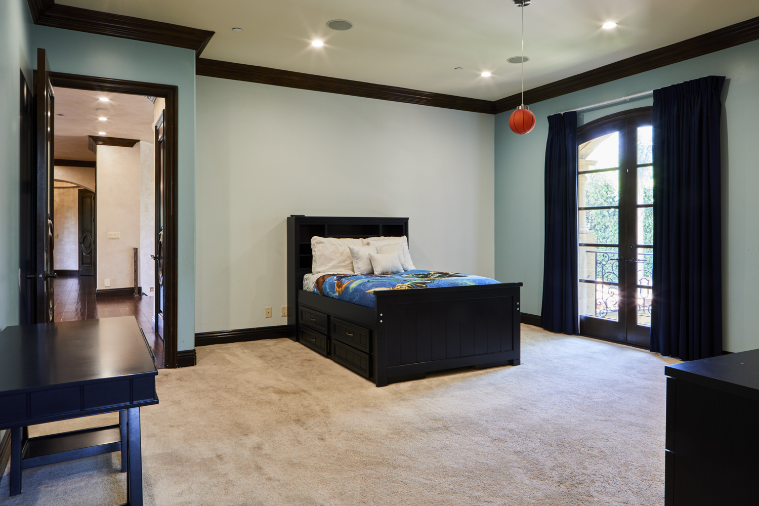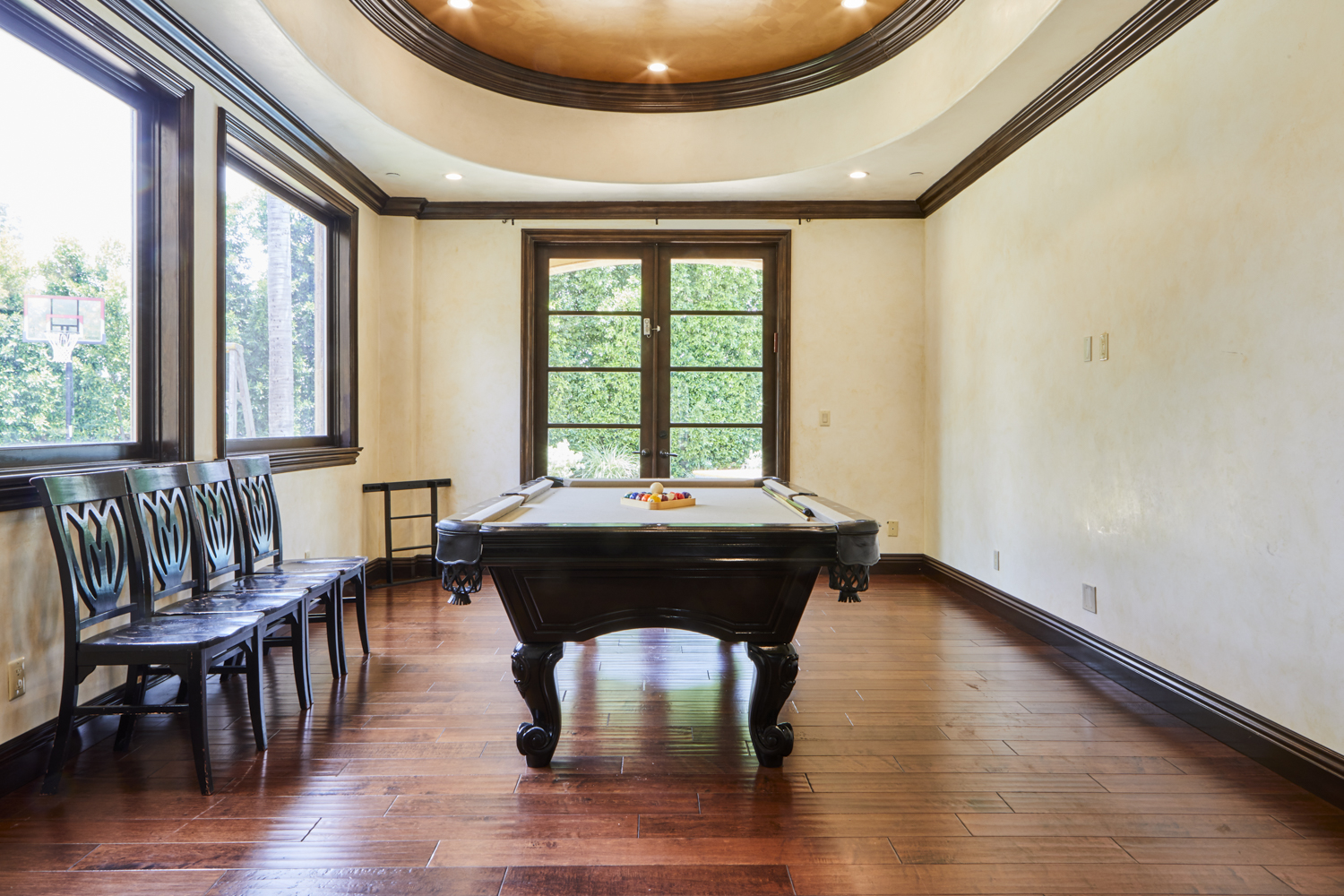 Featuring 7 spacious bedrooms and 8 elegant bathrooms, the residence is tucked away at the end of a peaceful cul-de-sac, just moments from Ventura Boulevard. The expansive open floor plan boasts soaring ceilings, a private theater room, a dedicated office space, and a modern, fully equipped kitchen perfect for entertaining. The expansive master suite serves as a tranquil retreat, complete with a cozy sitting area, custom walk-in closets, and a spa-inspired bathroom featuring dual sinks, a vanity, a walk-in shower, and a separate soaking tub. Outside, the generous backyard is a private oasis, showcasing a large pool with a fun slide, a relaxing Jacuzzi, and a playset, perfect for both relaxation and family fun.