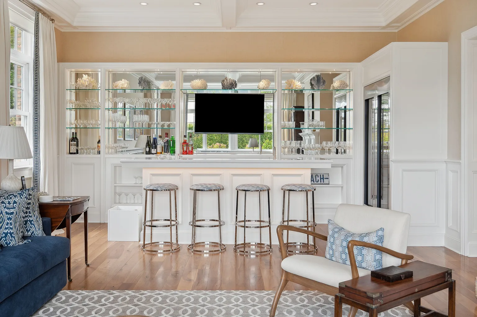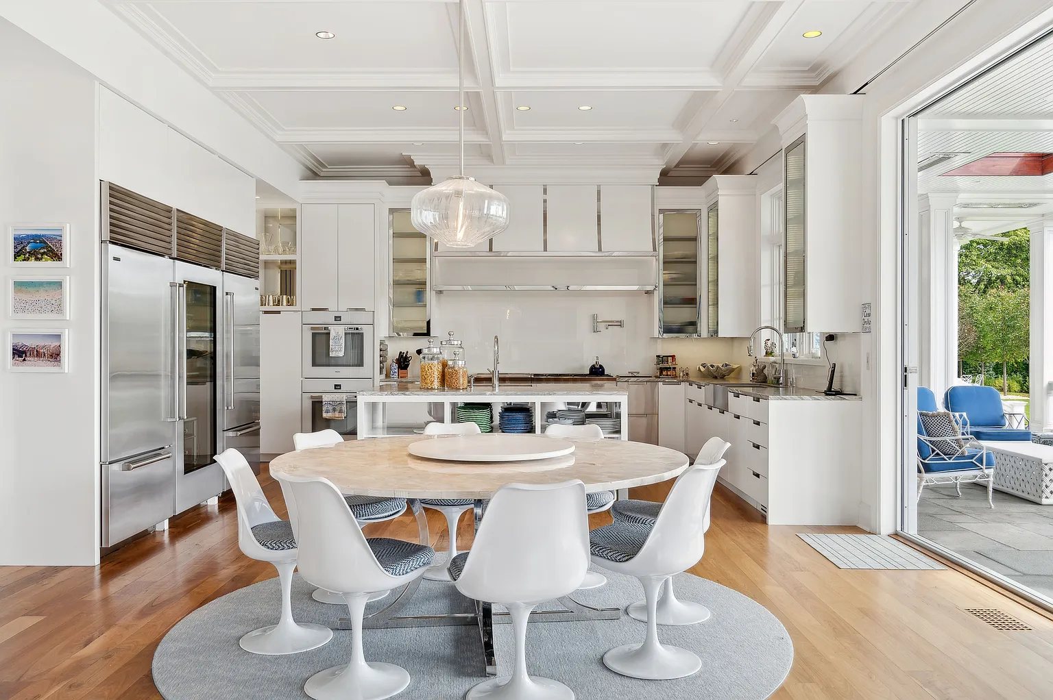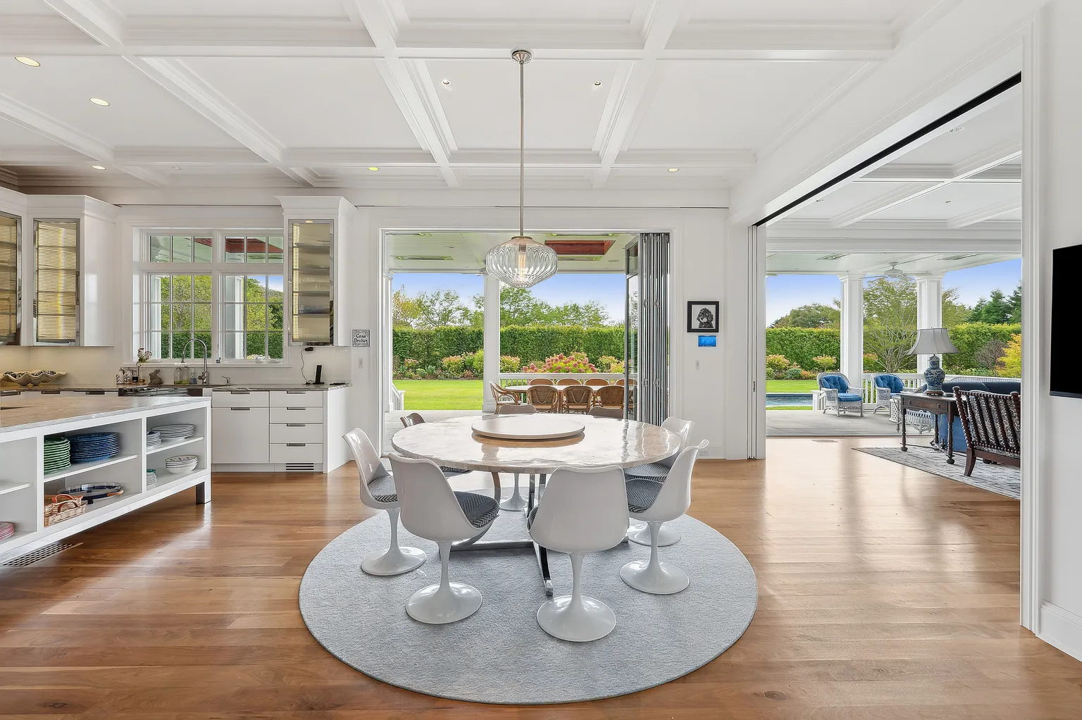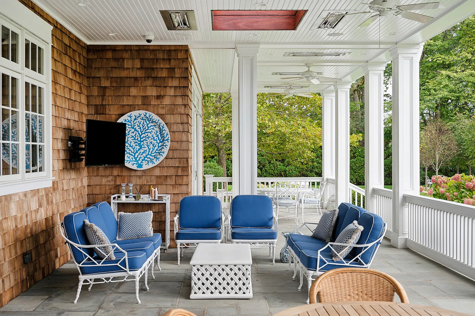 This prestigious Further Lane estate spans over 2 acres and features a 9,795 SF home with 10 bedrooms and 10 full plus 2 half bathrooms. Recently expanded with elegant architectural details, the residence offers seamless indoor-outdoor living with NanaWalls that open to a covered porch, a 55′ heated gunite pool with spa, and a stylish pool/tennis house complete with an outdoor kitchen and bathroom. Additional amenities include an outdoor grill adjacent to the main kitchen, mature gardens, hornbeam hedges, and landscape lighting throughout.