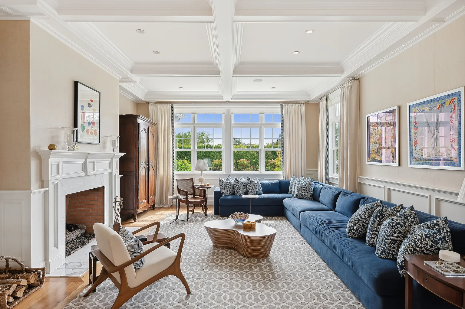 Inside, the home boasts a dramatic double-height foyer, chef’s kitchen with Miele appliances, formal dining, multiple fireplaces, and a junior primary suite on the first floor alongside staff quarters. Upstairs, the primary suite features ocean-view terraces, dual closets, and a radiant-heated bath, accompanied by six ensuite bedrooms. The lower level includes a guest or staff bedroom, billiards and game room, family TV room, gym with steam and sauna, plus an elevator and heated 2-car garage. Ideally situated in the sought-after Further Lane Estate, this home is just minutes from East Hampton Village’s shops and restaurants.