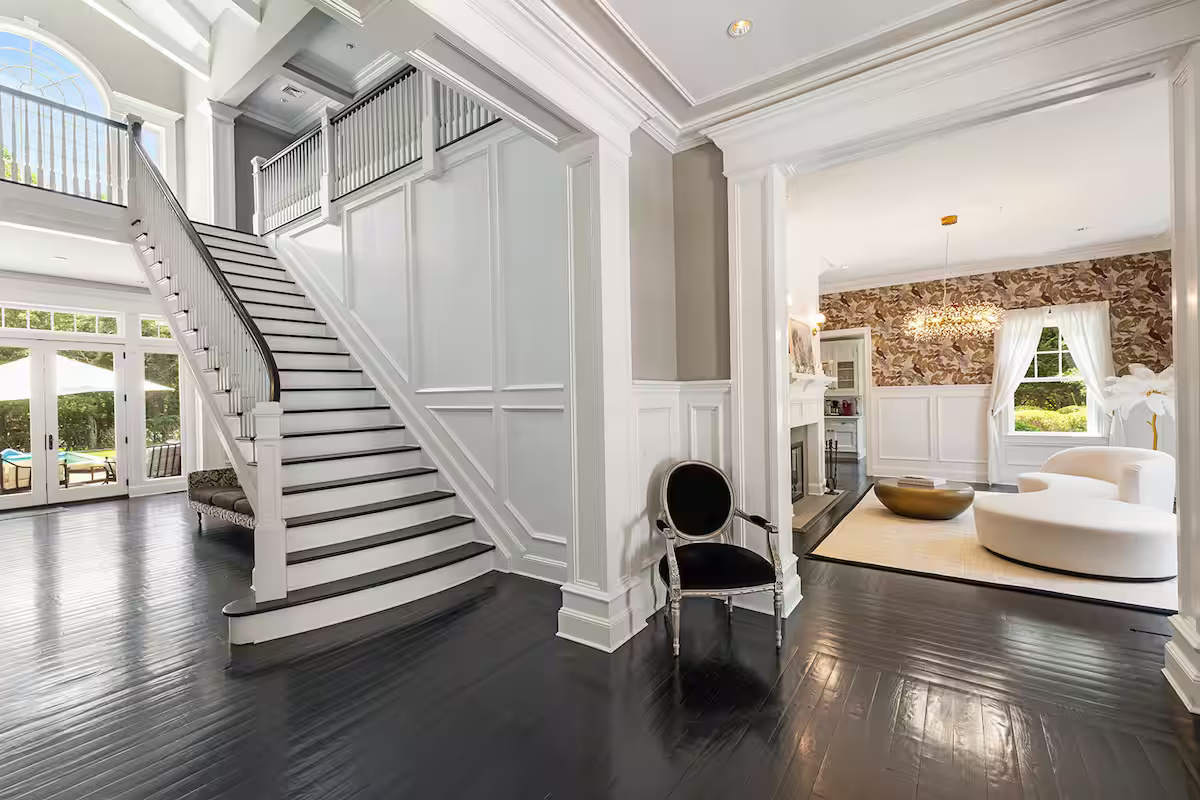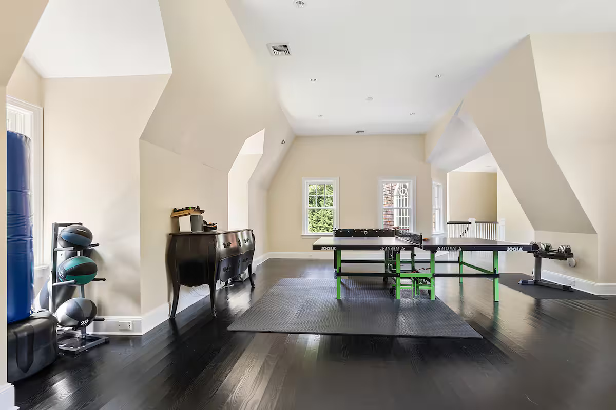 The expansive lounge and welcoming sitting area, complemented by a fully equipped bar, provide the perfect setting for entertaining. For added convenience, there are 3 designated laundry rooms. Enjoy the comfort of radiant heated floors in the basement, stay active in the fully equipped gym, or unwind in the private movie room. The outdoor deck features two dining tables and 8 sun loungers, ideal for soaking up the sun or dining al fresco. With a 9-zone Sonos sound system, this home seamlessly combines luxury, comfort, and entertainment.