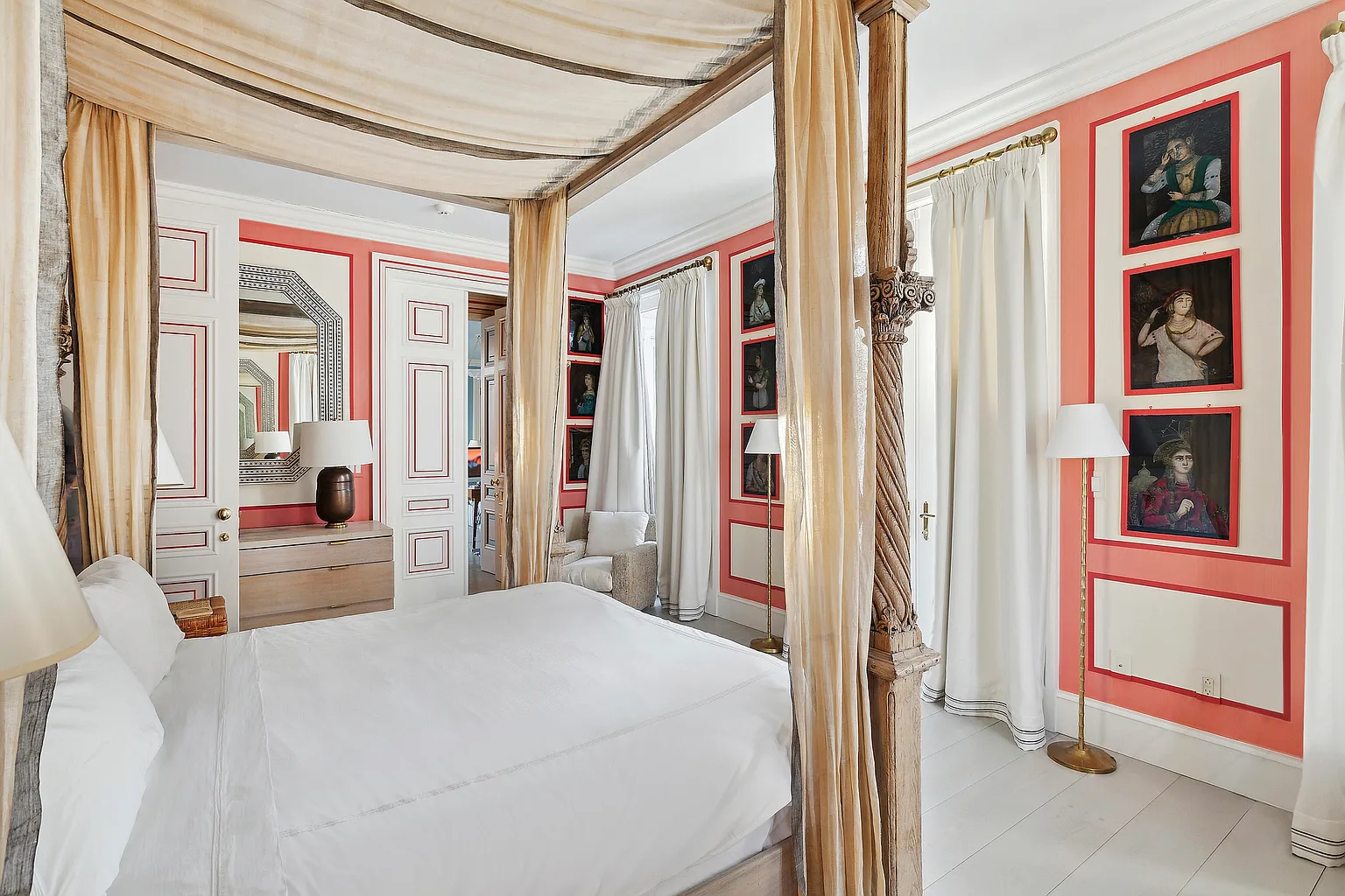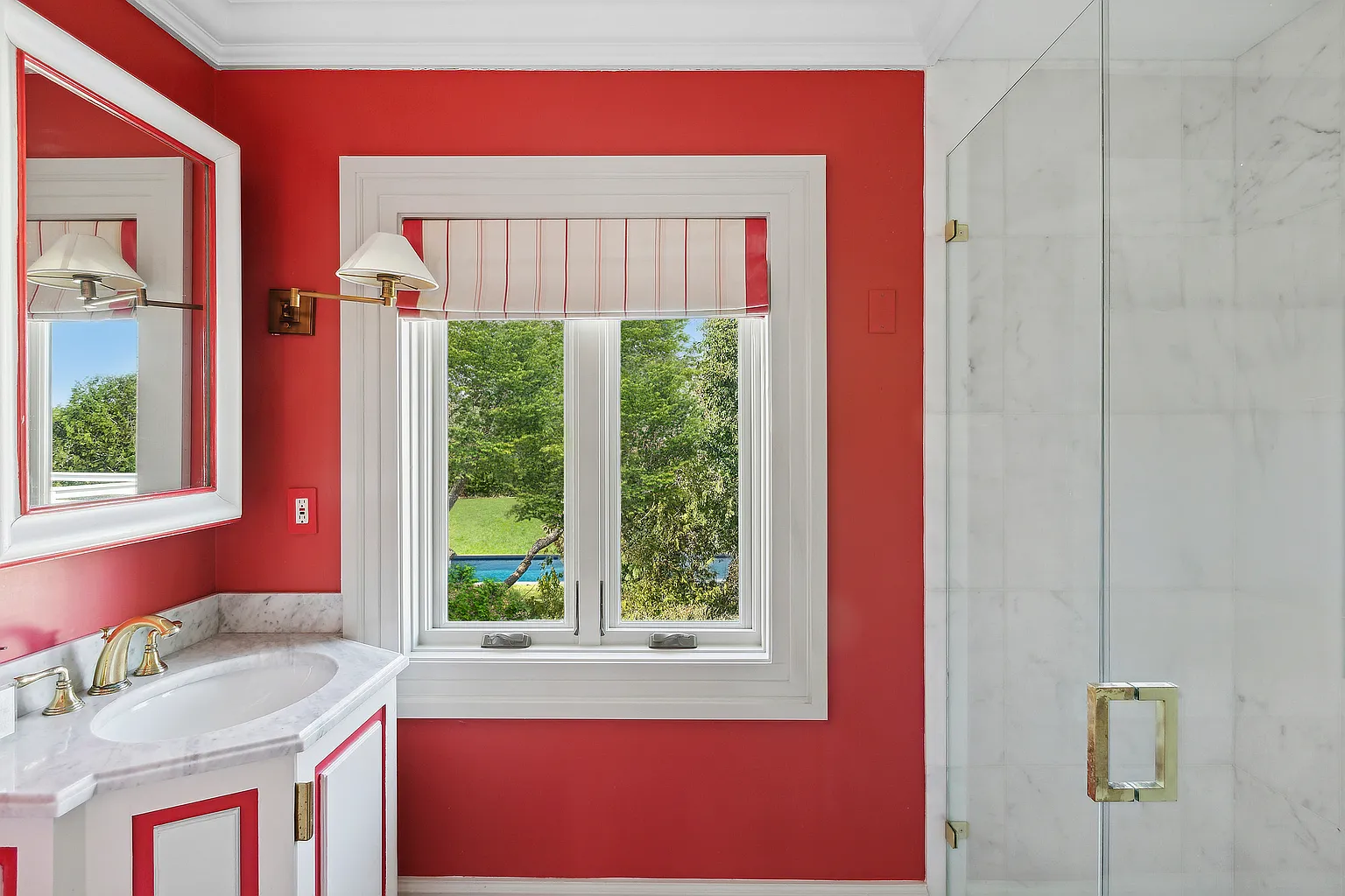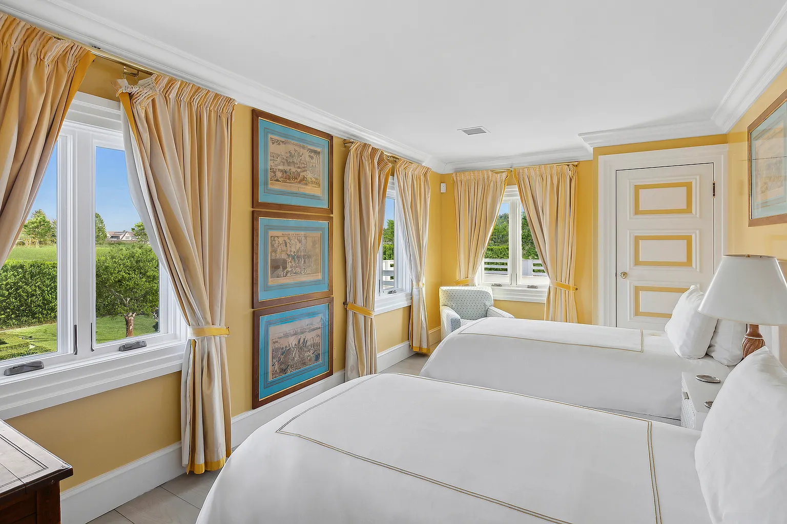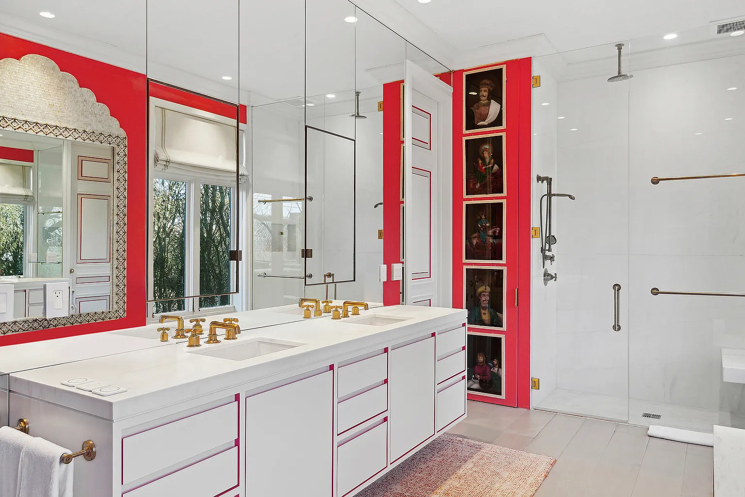 Covering over 7,500 square feet, this remarkable estate boasts eight elegantly designed bedrooms, six full bathrooms, and four powder rooms. Inspired by the stunning Lazienki Palace in Warsaw, Poland, this home masterfully combines timeless elegance with contemporary sophistication. Nestled on 1.5 meticulously landscaped acres, the property is accessed through a gated entrance, revealing a stunning 90-foot reflecting pond and a beautifully crafted English garden. The estate is a collaboration of acclaimed architect Peter Cook, renowned builder RLW, and celebrated designer Thomas Britt, showcasing exceptional craftsmanship and design expertise throughout. The open living spaces are impeccably decorated, offering sweeping views of the expansive grounds.