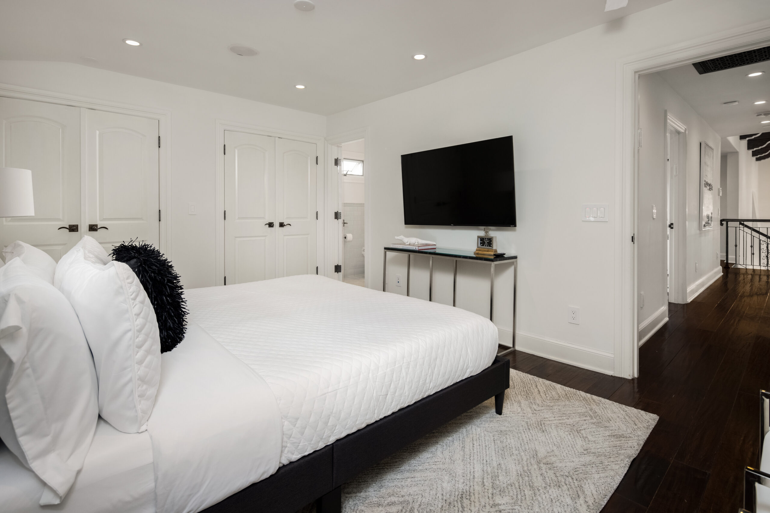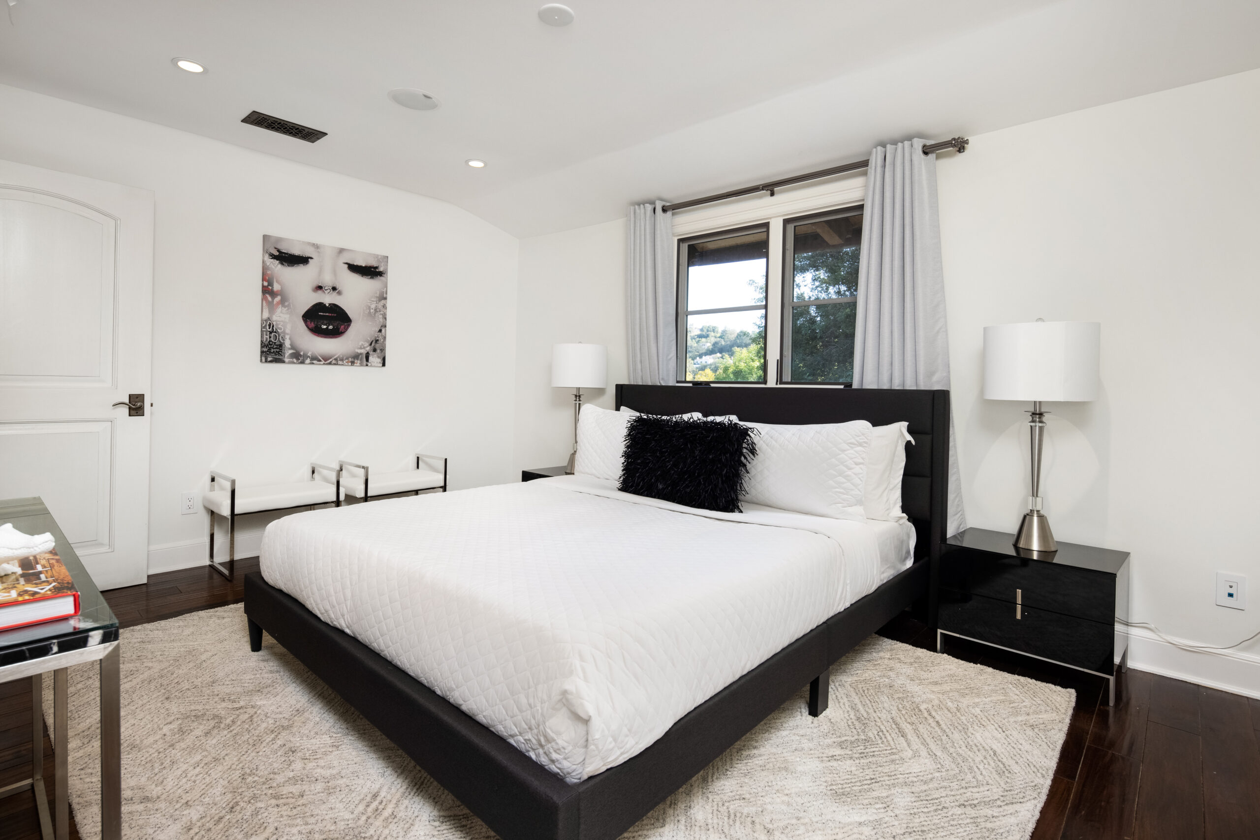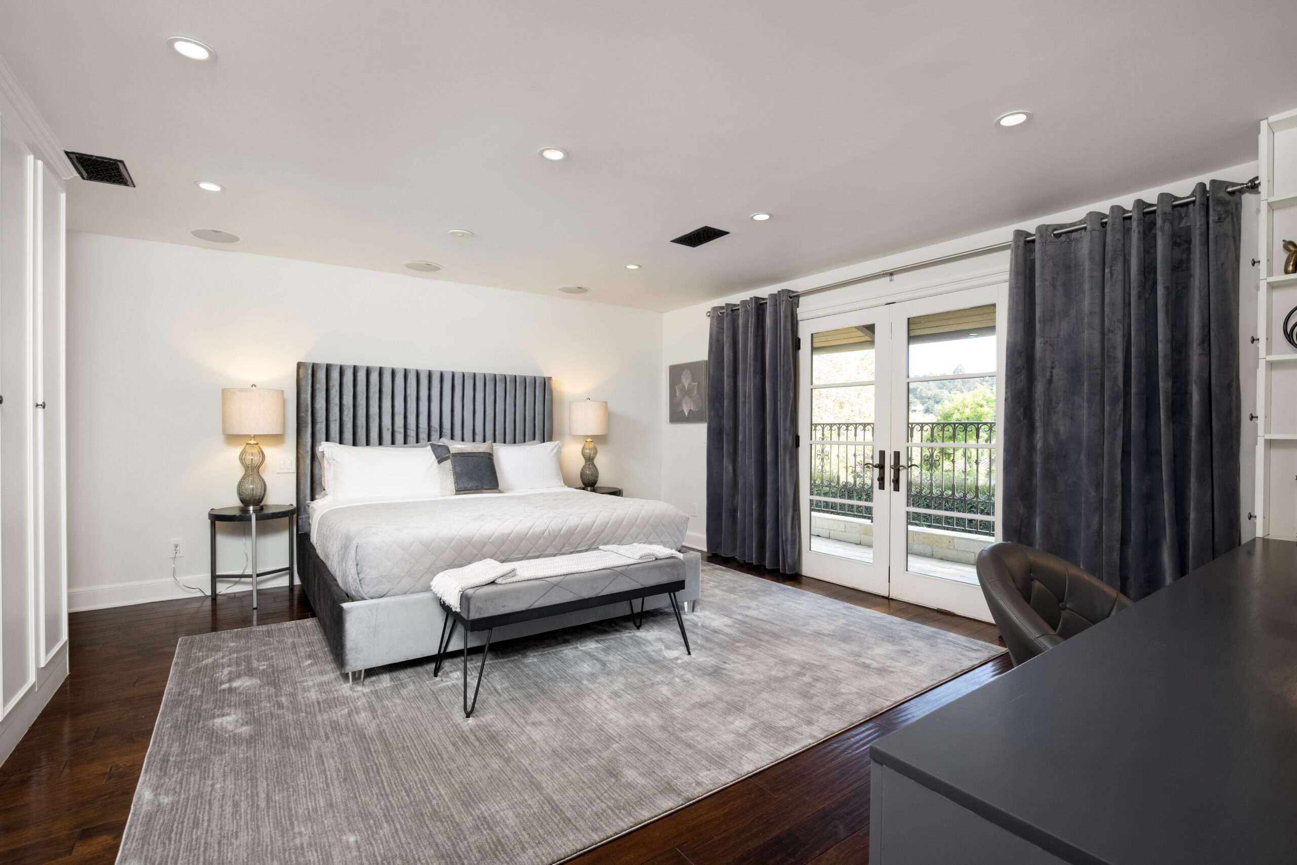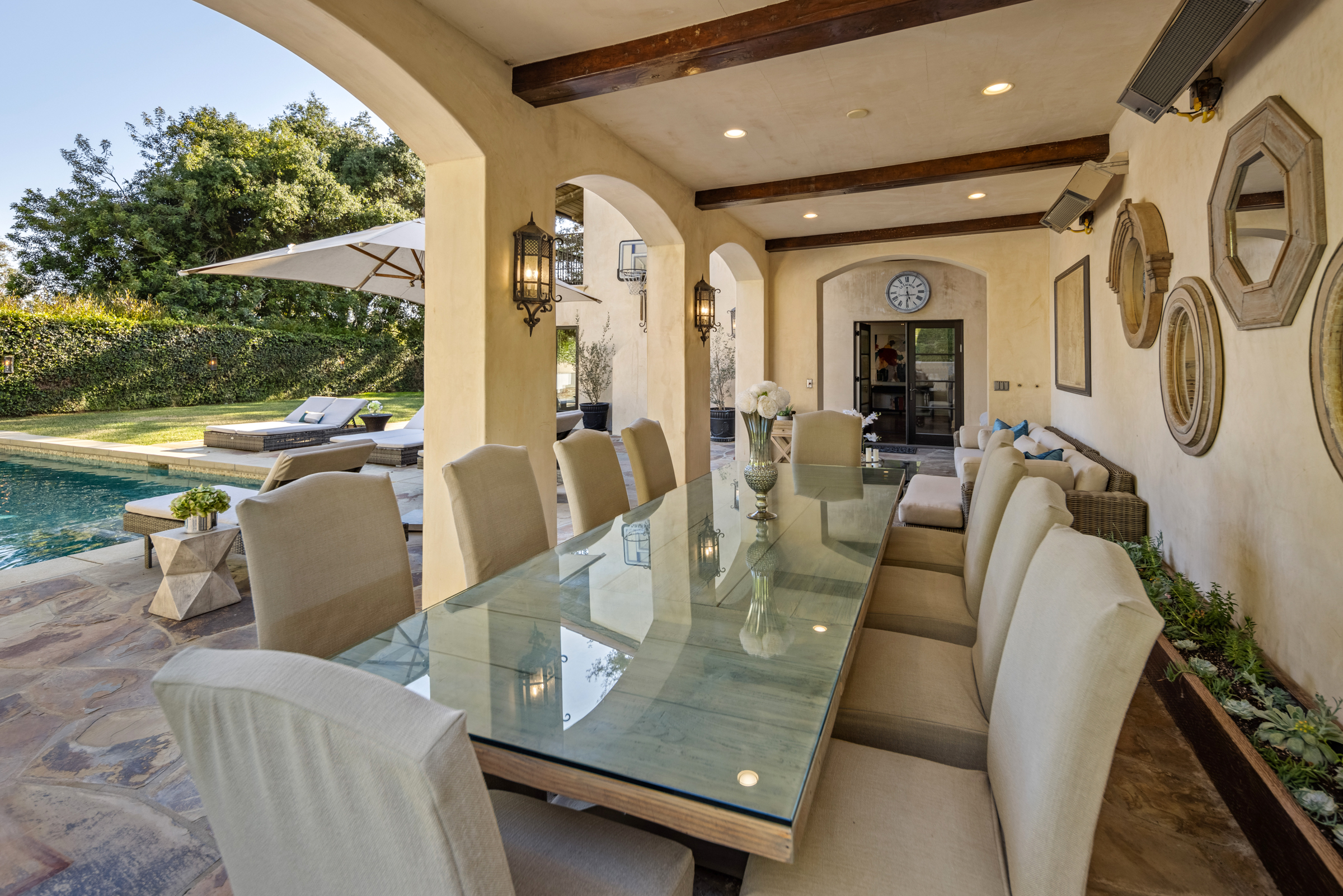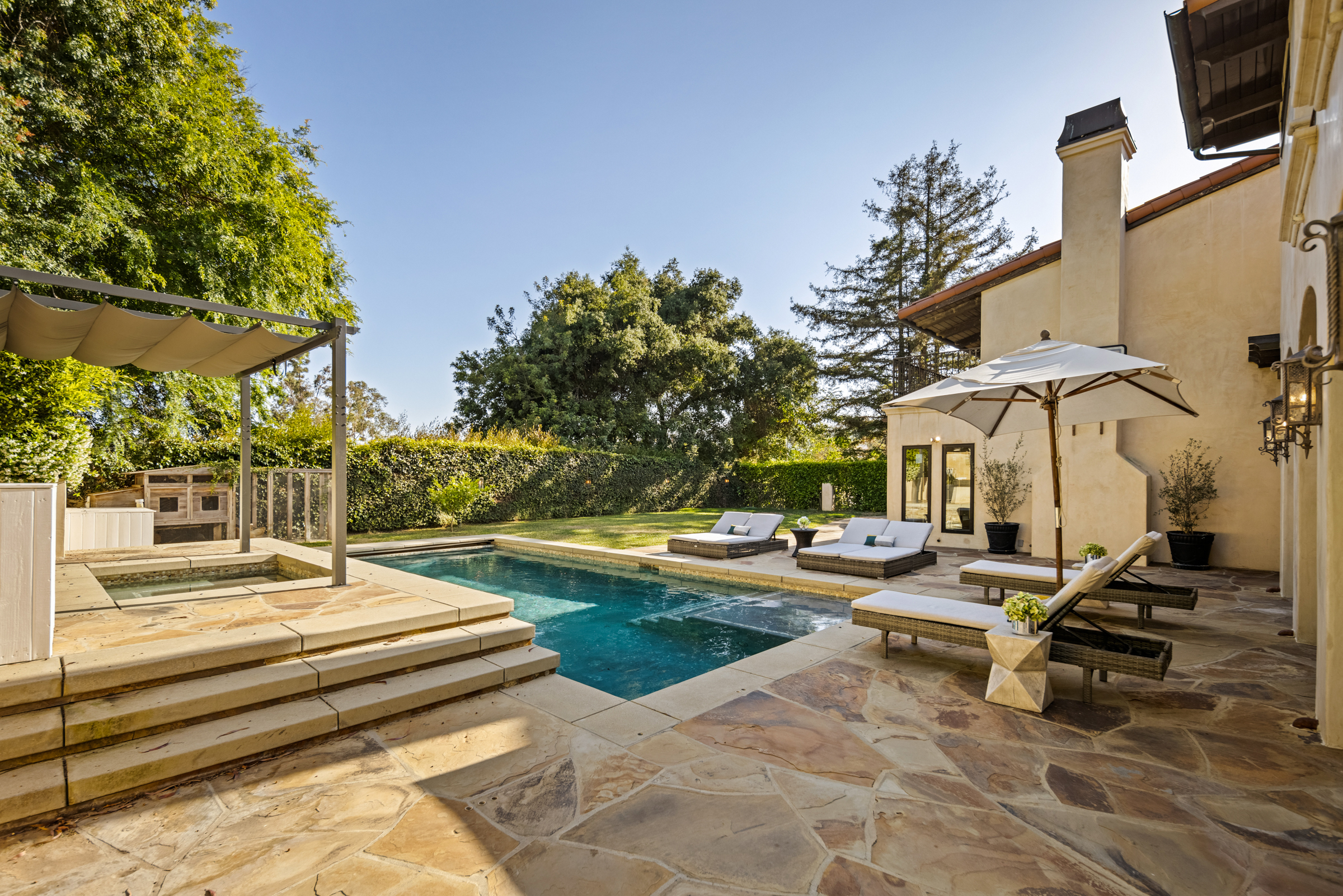 The backyard is a private retreat featuring a swimming pool, jacuzzi, multiple lounging areas, an outdoor dining space, and a dedicated art studio. Inside, unwind with a glass of wine at the designer bar adjacent to the spacious family room. All six bedrooms include private ensuite bathrooms and refined, hotel-style amenities, making this exceptional home perfectly suited for families of all sizes and lifestyles.
