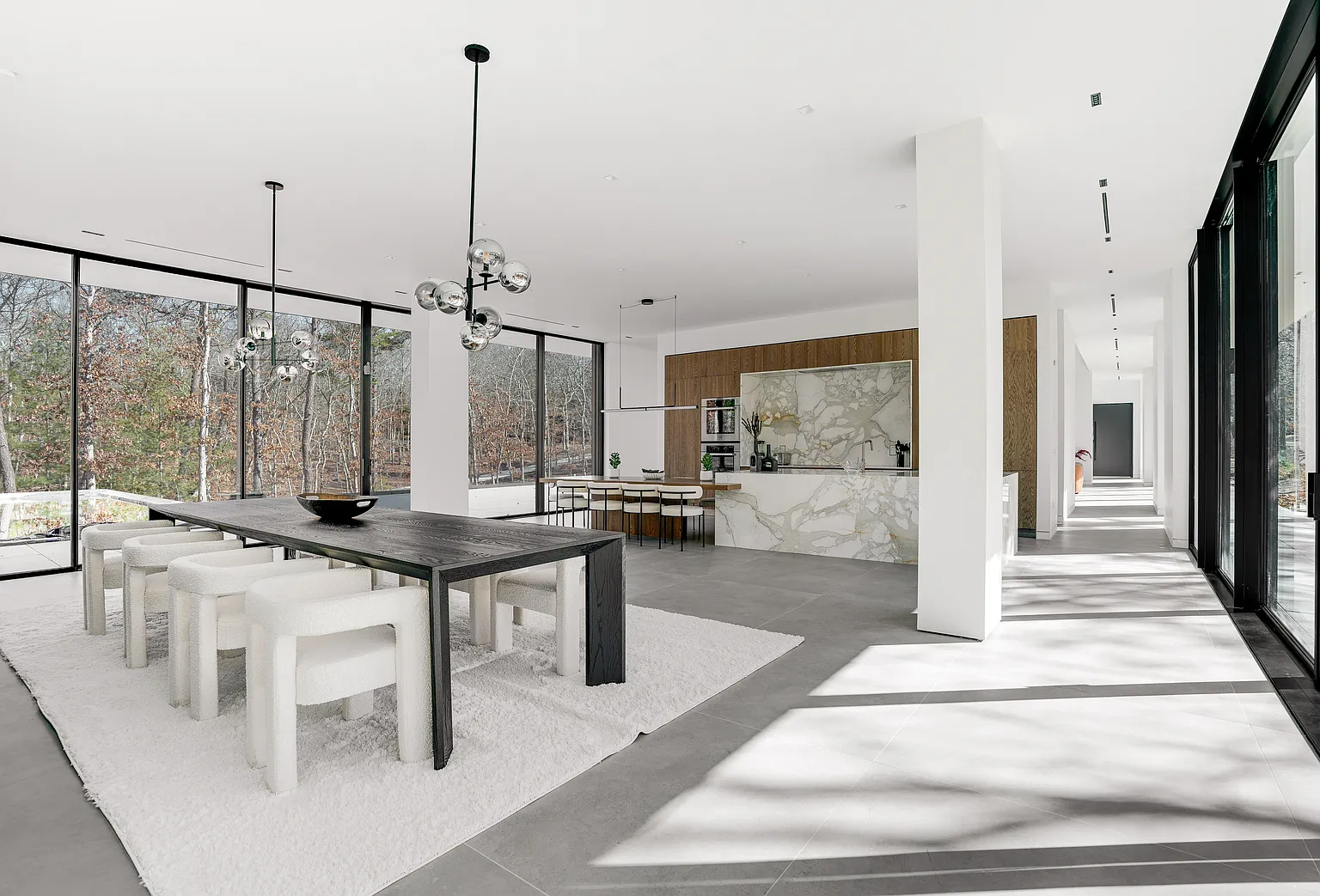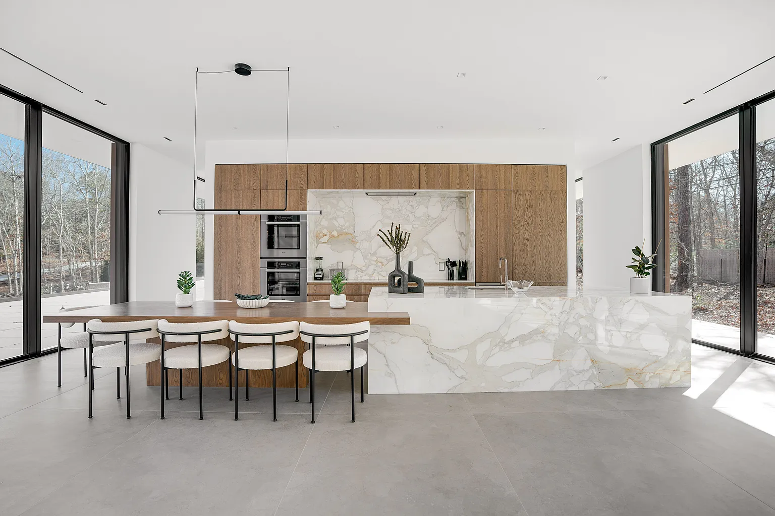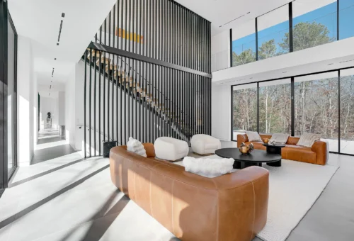 Where luxury meets sustainability, this home boasts solar panels, energy-efficient windows, and high-quality materials. Inside, you’ll find seven beautifully appointed bedrooms and seven bathrooms, each showcasing exquisite Italian design. The heart of the main floor is highlighted by a striking 22-foot marble fireplace, surrounded by a kitchen equipped with Italian oak cabinetry, sleek marble countertops, and top-of-the-line Miele appliances. The lower level is a haven of amenities, including a wellness center complete with a gym, sauna, and hammam, along with a lounge featuring a wet bar. The outdoor areas are equally captivating, featuring an infinity-edge pool, sundeck, and expansive terraces that offer stunning views of the picturesque landscape. Whether hosting gatherings or enjoying peaceful solitude, this home perfectly harmonizes luxury and nature.