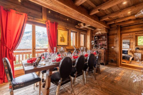 Ideally located in the heart of the Three Valleys, just 200 meters from the slopes and a short 10-minute drive from the center of Méribel, this stunning property offers unparalleled access to the region’s skiing. Upon entering, you are greeted by a welcoming hall that features a dedicated room for skis and boots. Behind a magnificent Afghan door lies a luxurious spa complete with a jacuzzi and hammam for up to eight guests, providing the perfect retreat after a day on the slopes.