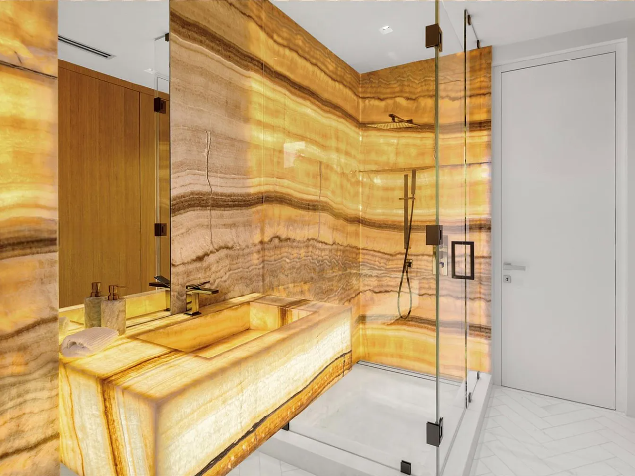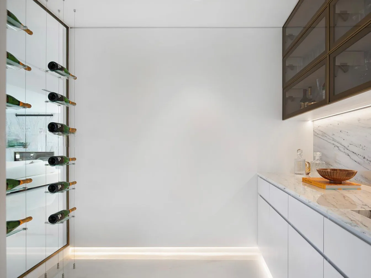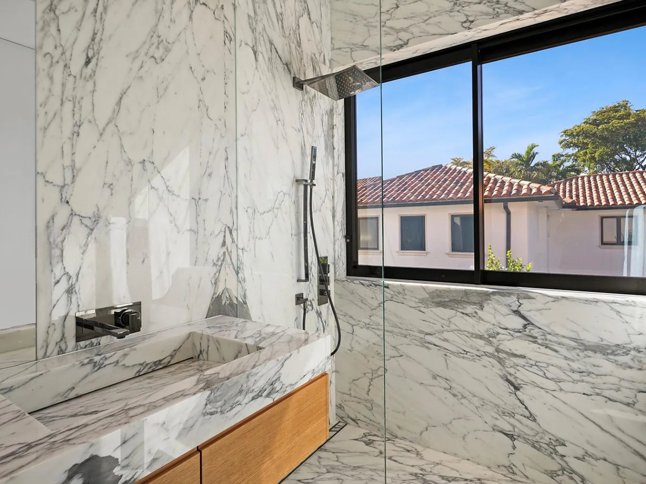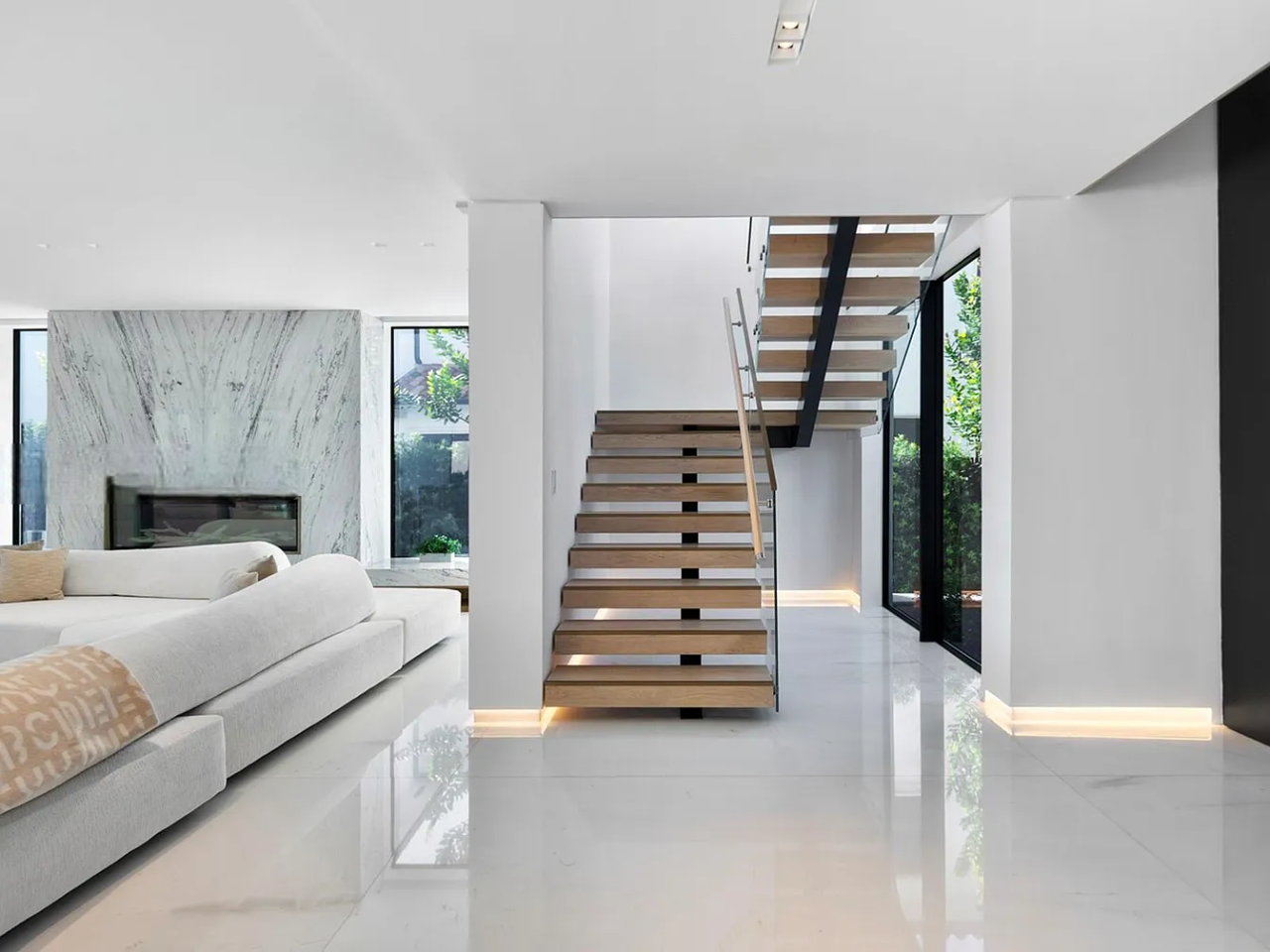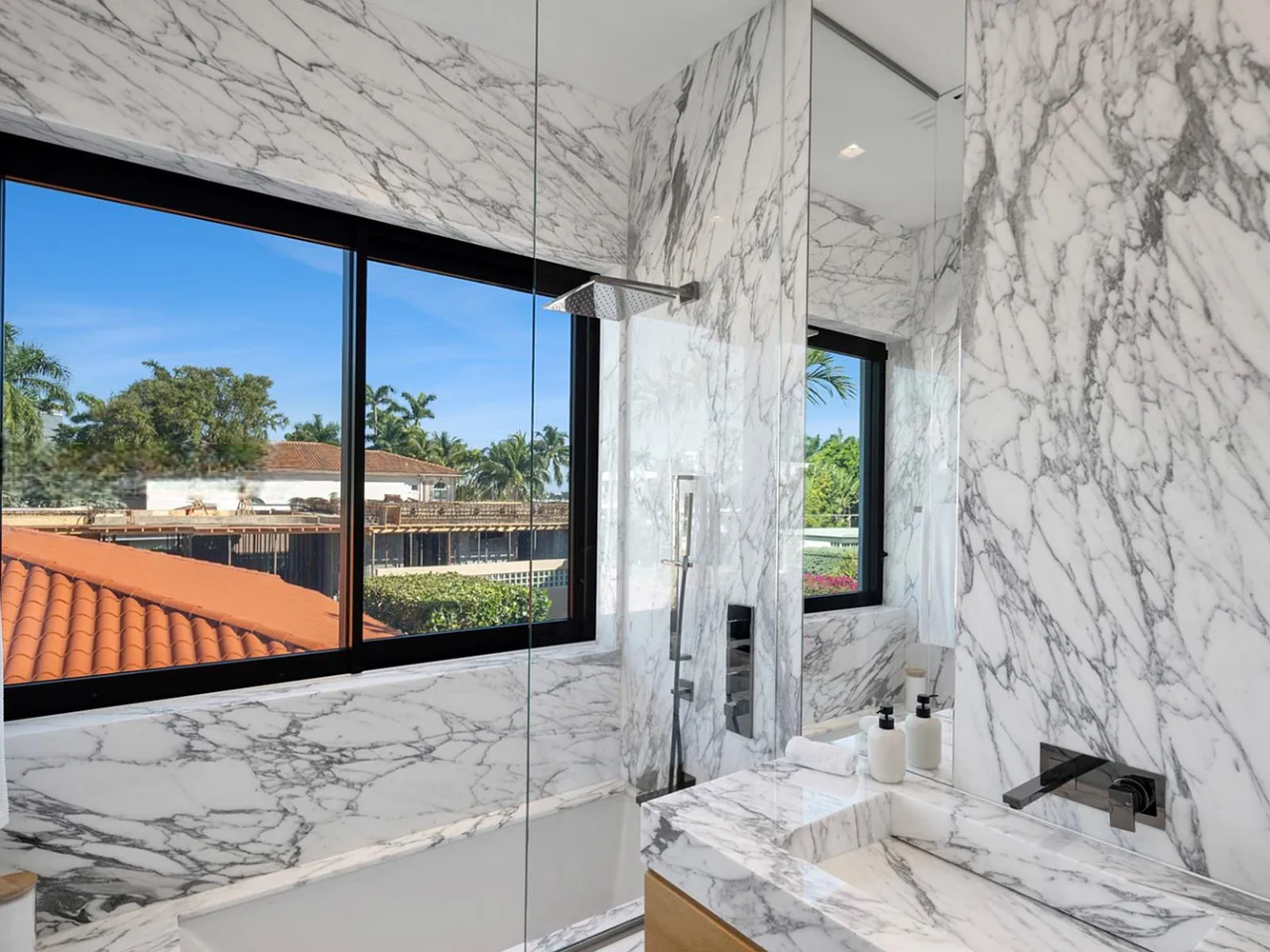 Welcome to this stunning modern home on gated Hibiscus Island, where exceptional design meets breathtaking downtown views. The impressive 23-foot steel door opens to a waterfront salon, beautifully illuminated by telescopic glass, complete with a cozy fireplace and sleek lighting. The culinary space is a chef’s dream, featuring marble and fluted oak finishes, a hosting island, a wine wall, and a bright dining area. A floating staircase leads to an office and four elegantly appointed suites with oak flooring. The primary suite is a true retreat, boasting two sitting lounges, a grand dressing room, a midnight bar, and a luxurious marble-clad bath that opens to an expansive terrace showcasing skyline vistas.