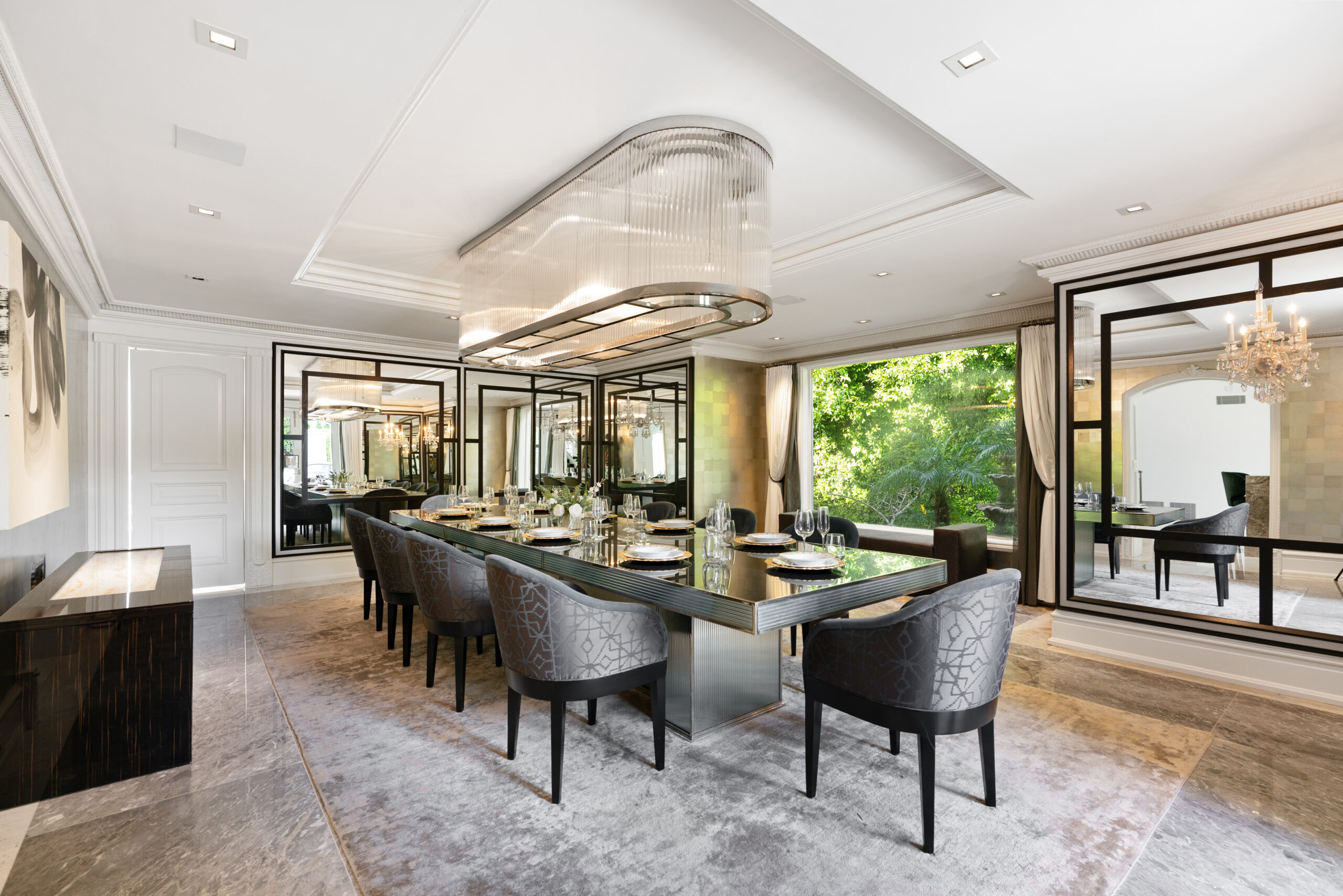 Recently renovated, the main house includes 8 bedrooms, a gourmet kitchen, a dining room that seats 10, and a grand entry hall. Behind the main residence, you’ll find a 20,000 sqft entertainment center and guest house. With complete privacy ensured by wrought iron gates and mature redwood trees, Villa St. Pierre stands as one of the most distinguished estates in Bel Air.