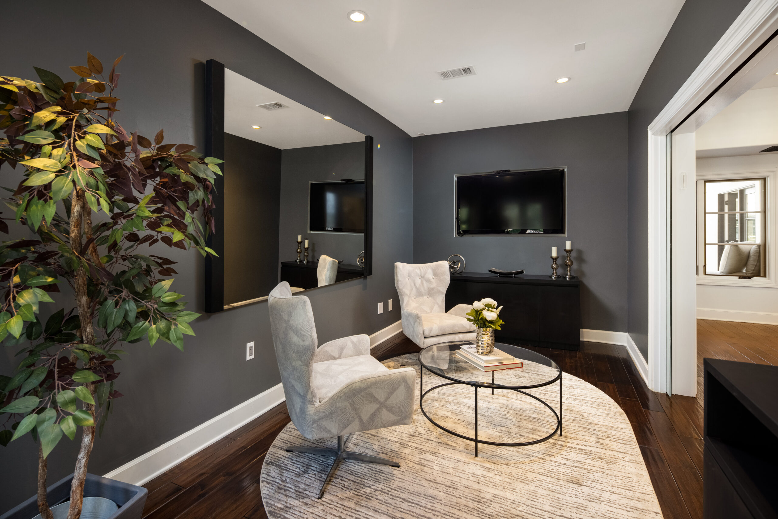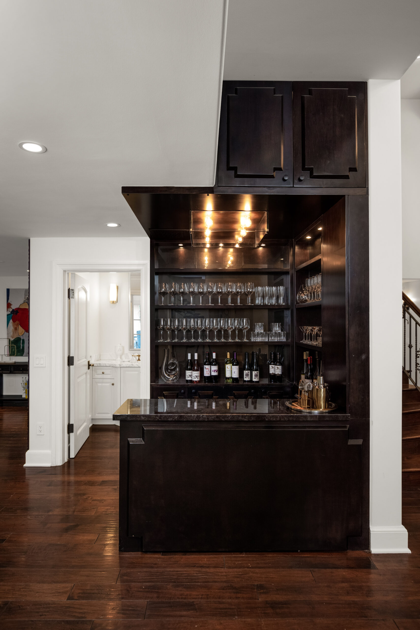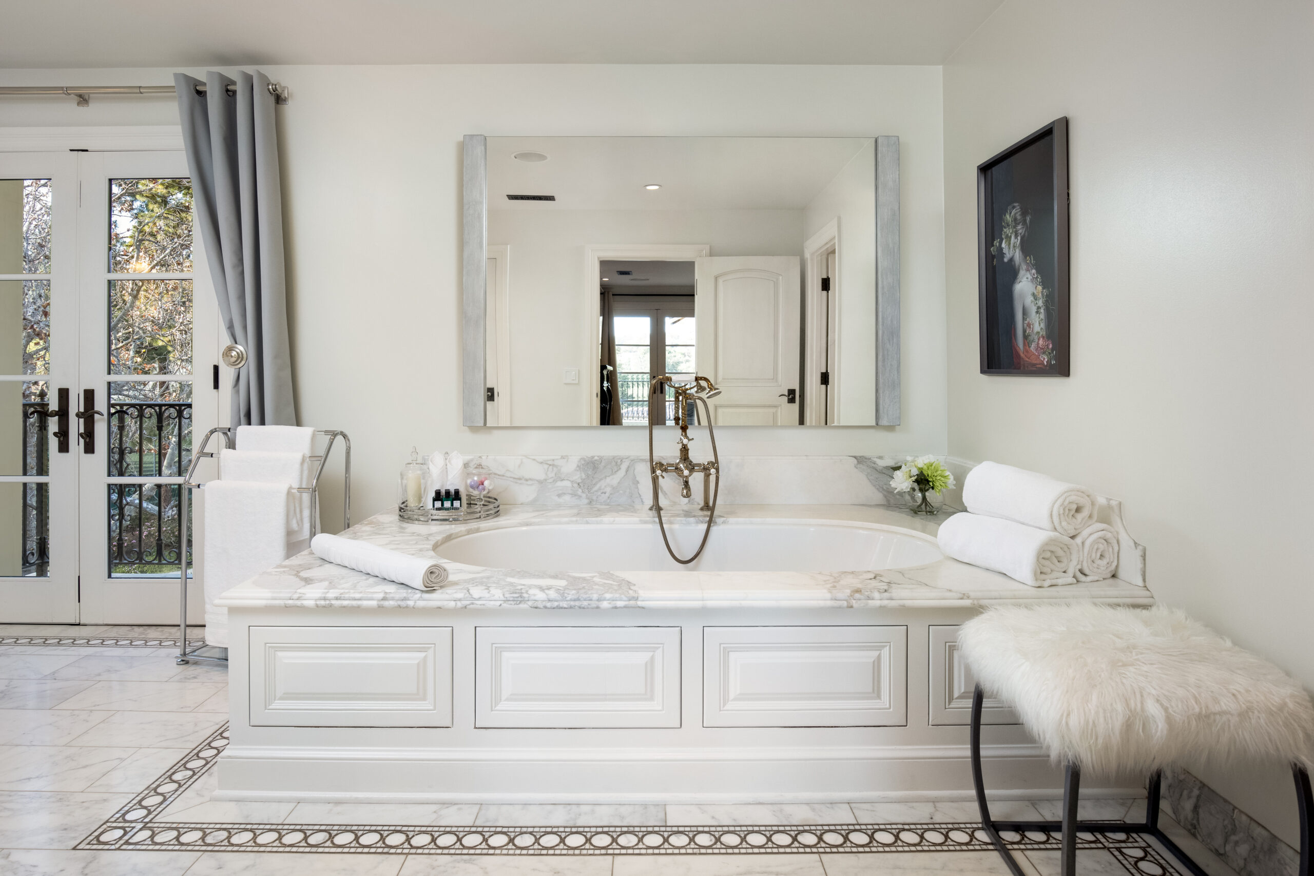 The estate’s outdoor oasis is meticulously designed for both grand-scale entertaining and serene relaxation, centered around a one-of-a-kind swimming pool with a striking custom-patterned floor. Sun-drenched lounging areas are thoughtfully curated with chic striped umbrellas, contemporary white furnishings, and a modern fire pit, all framed by a protective stone wall and elegant glass railings that preserve the unobstructed vistas. Whether enjoying the circular spa or dining al fresco against the backdrop of the illuminated hillside, every detail of this villa embodies an unparalleled standard of private, resort-style living.