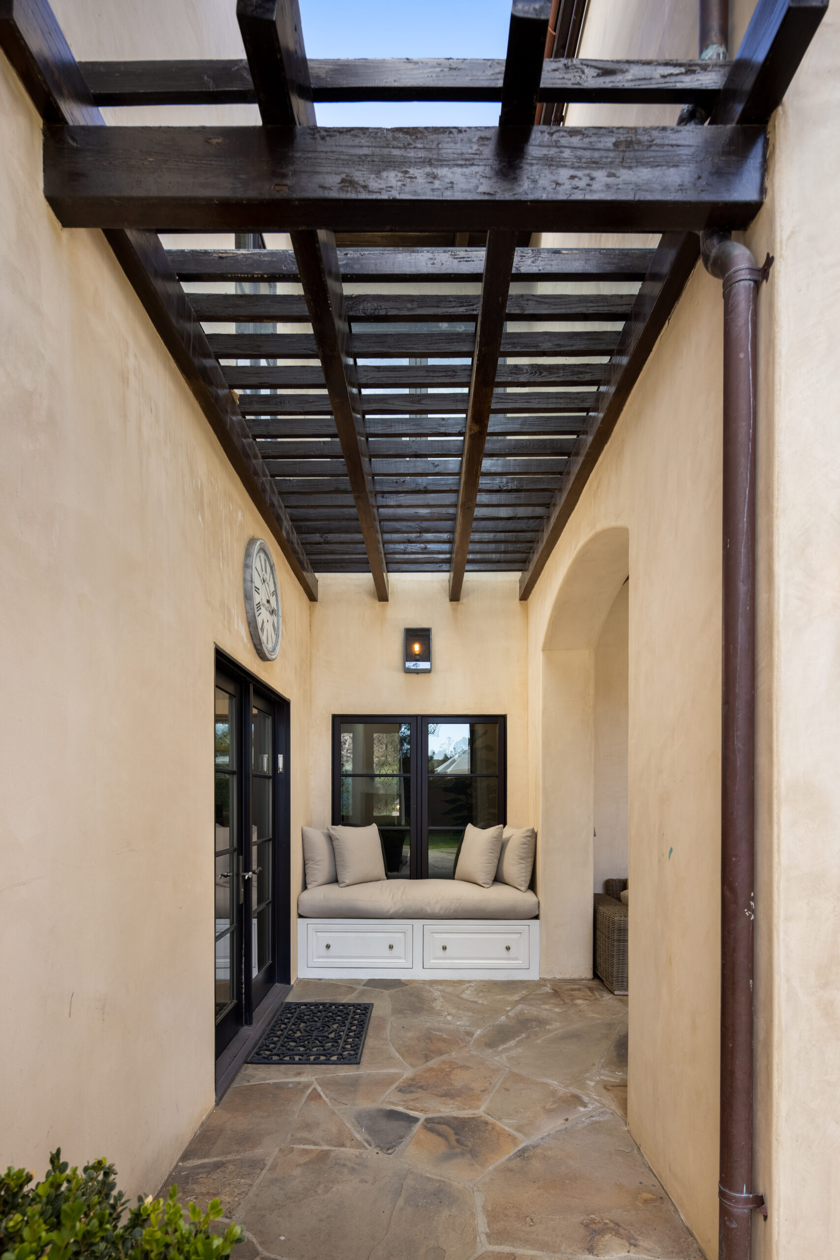 Perched dramatically on a rugged cliffside, this extraordinary architectural retreat offers a masterclass in coastal mountain luxury, where rustic charm meets high-end sophistication. The main residence features a classic shingle-style aesthetic with vaulted ceilings and integrated skylights that bathe the warm, voluminous interiors in natural light. Expansive glass walls and sliding doors provide a seamless transition to the outdoors, where a vast stone-paved terrace serves as the ultimate vantage point for breathtaking, panoramic views of the canyon and rolling hillsides under a vibrant sunset sky.