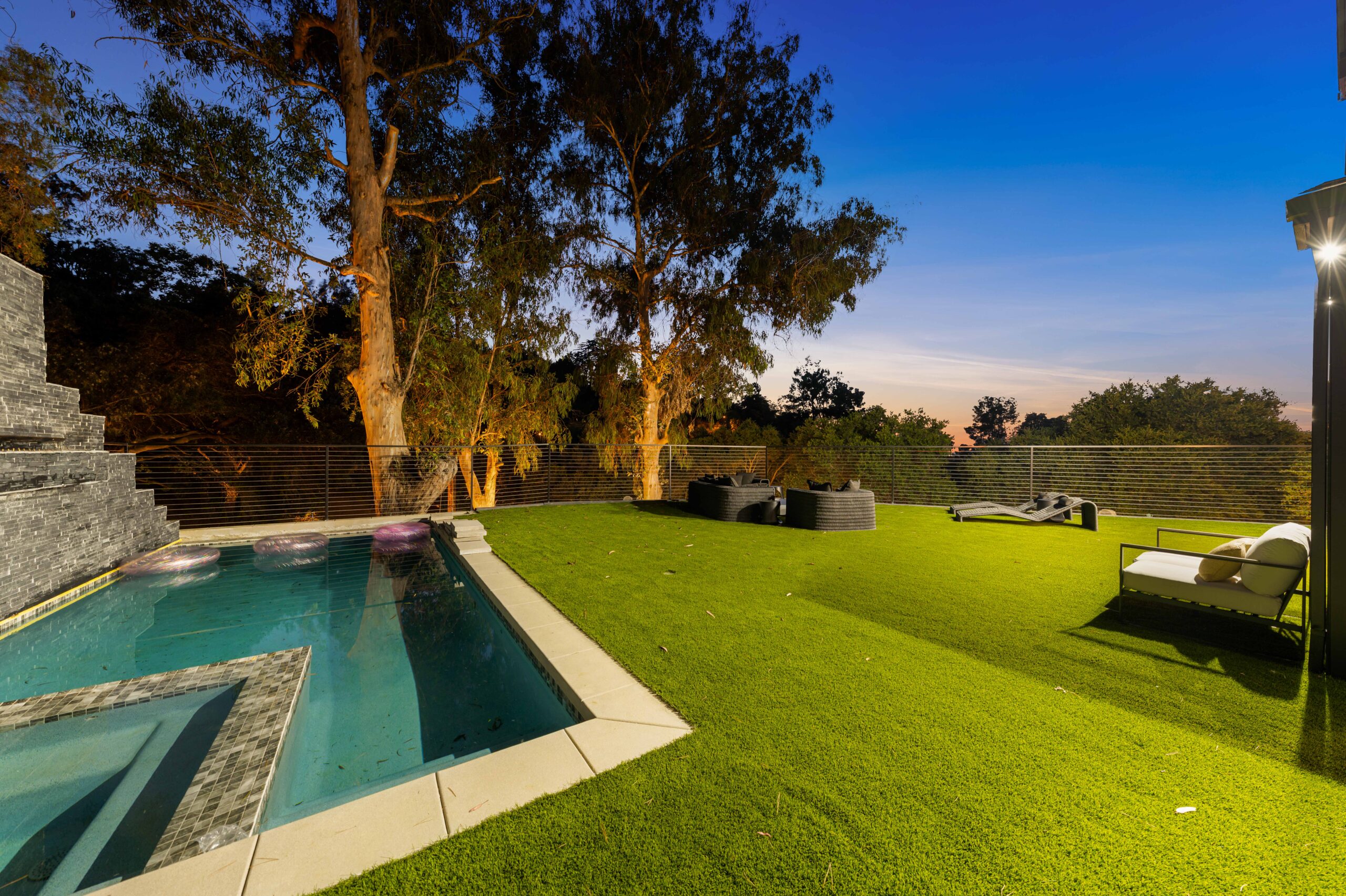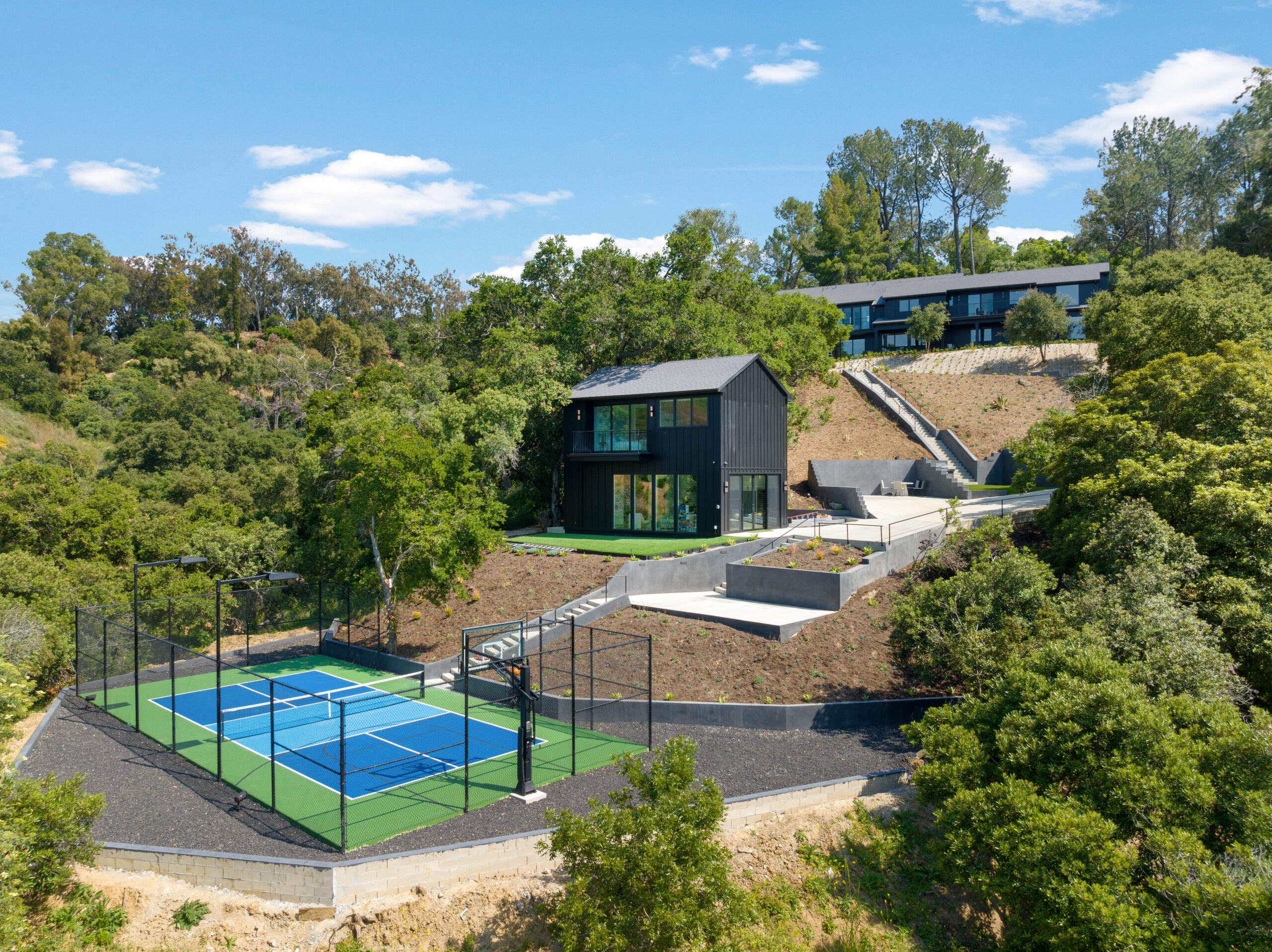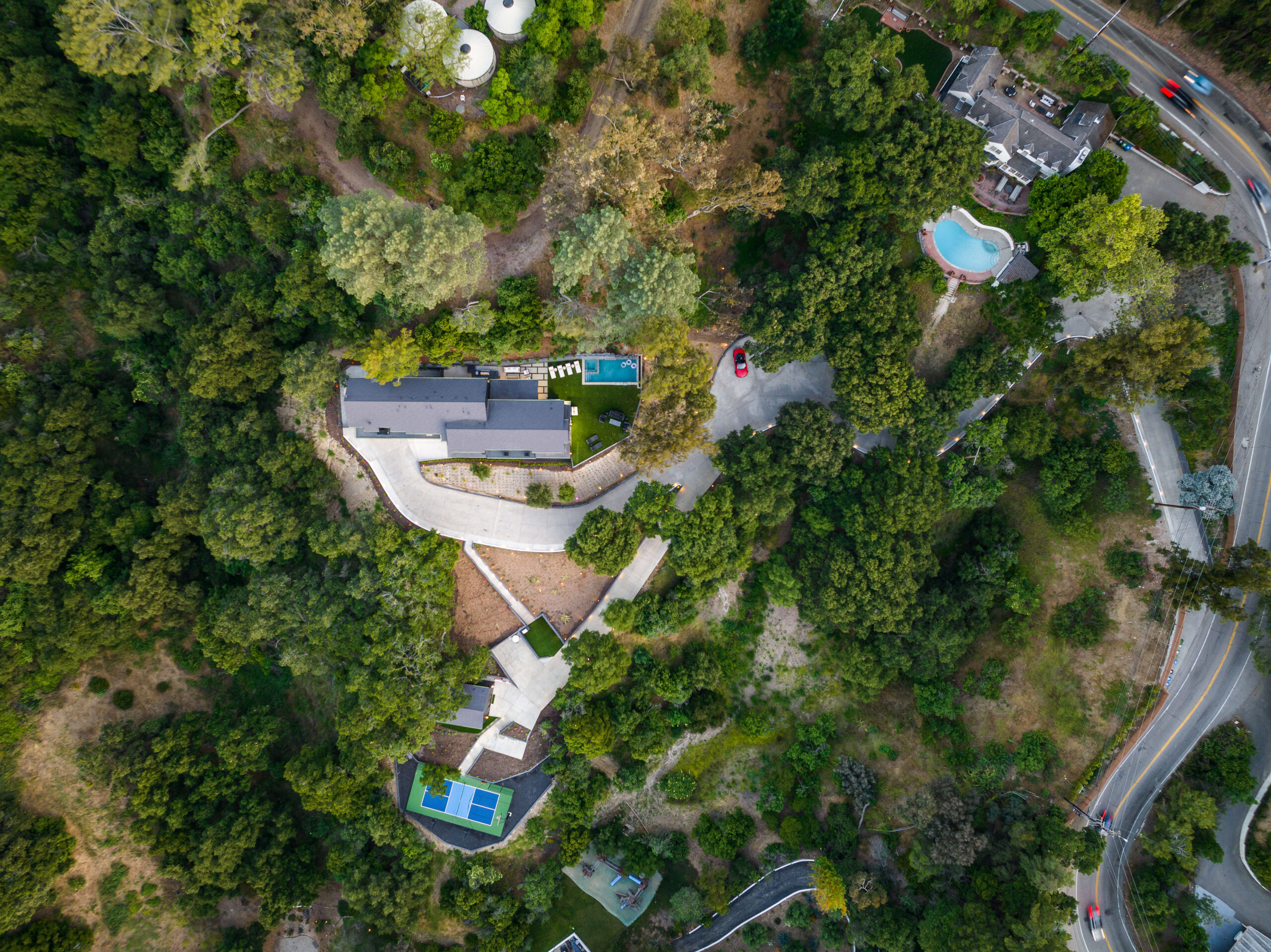 Tucked away on an extraordinary, private compound, this unique parcel of land hosts a magnificent main residence and guest house enveloped by ancient Oaks and verdant greenery. The journey begins with a scenic three-quarter-mile private driveway that winds through more than 1,000 protected mature trees, leading to a sanctuary where indigenous wildlife roams and private hiking trails offer breathtaking views of Studio City and the surrounding mountains. This is more than just a property; it is a sprawling, impeccably landscaped estate that harmonizes rustic tranquility with modern luxury.