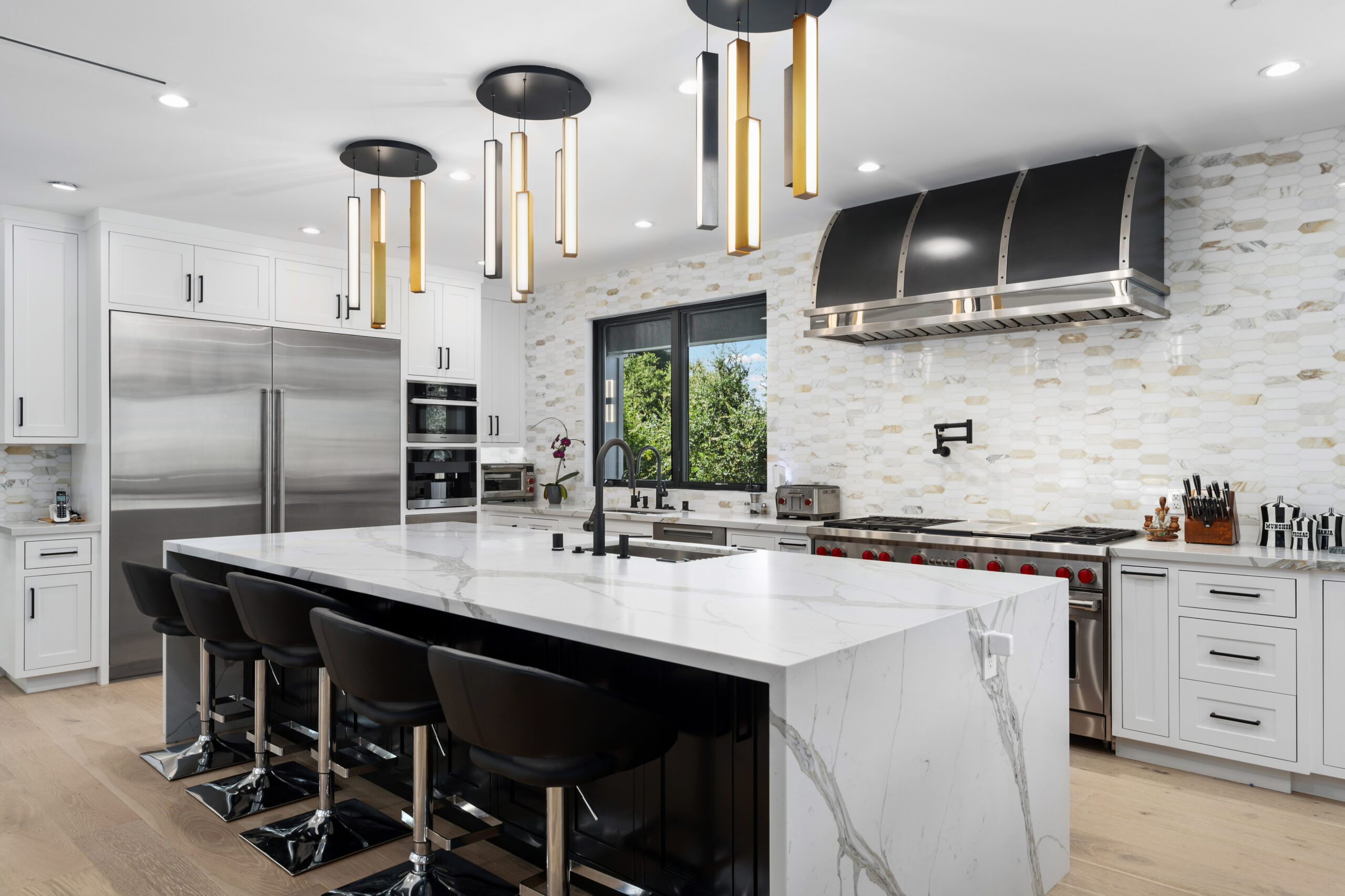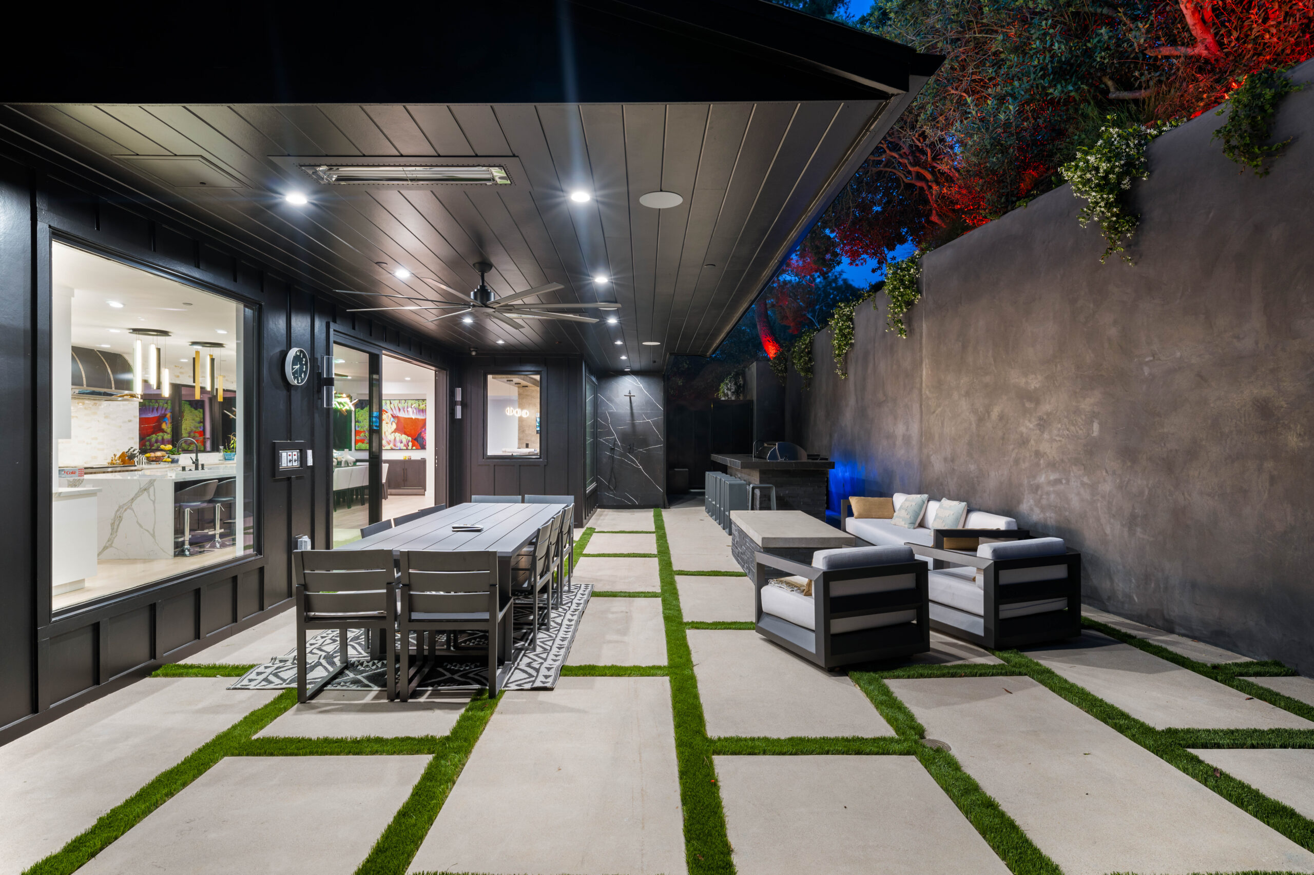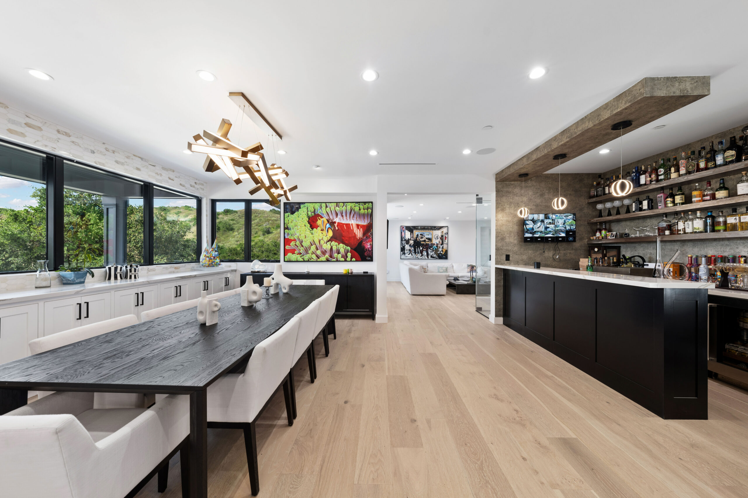 The residence itself is a masterfully upgraded farmhouse, boasting eight spacious bedrooms and ten bathrooms finished with White Oak flooring, Italian porcelain, and elegant quartz. Designed for the modern epicurean, the smart-home-equipped interior features a gourmet kitchen with Wolf and Subzero appliances, a Miele coffee system, and a temperature-controlled wine cellar. Seamless indoor-outdoor flow makes entertaining effortless, leading to an expansive outdoor kitchen and lounge areas. From the vaulted ceilings and en-suite baths to the comprehensive Lutron automation and security, every detail has been meticulously curated to provide a seamless, high-tech living experience in a timeless natural setting.