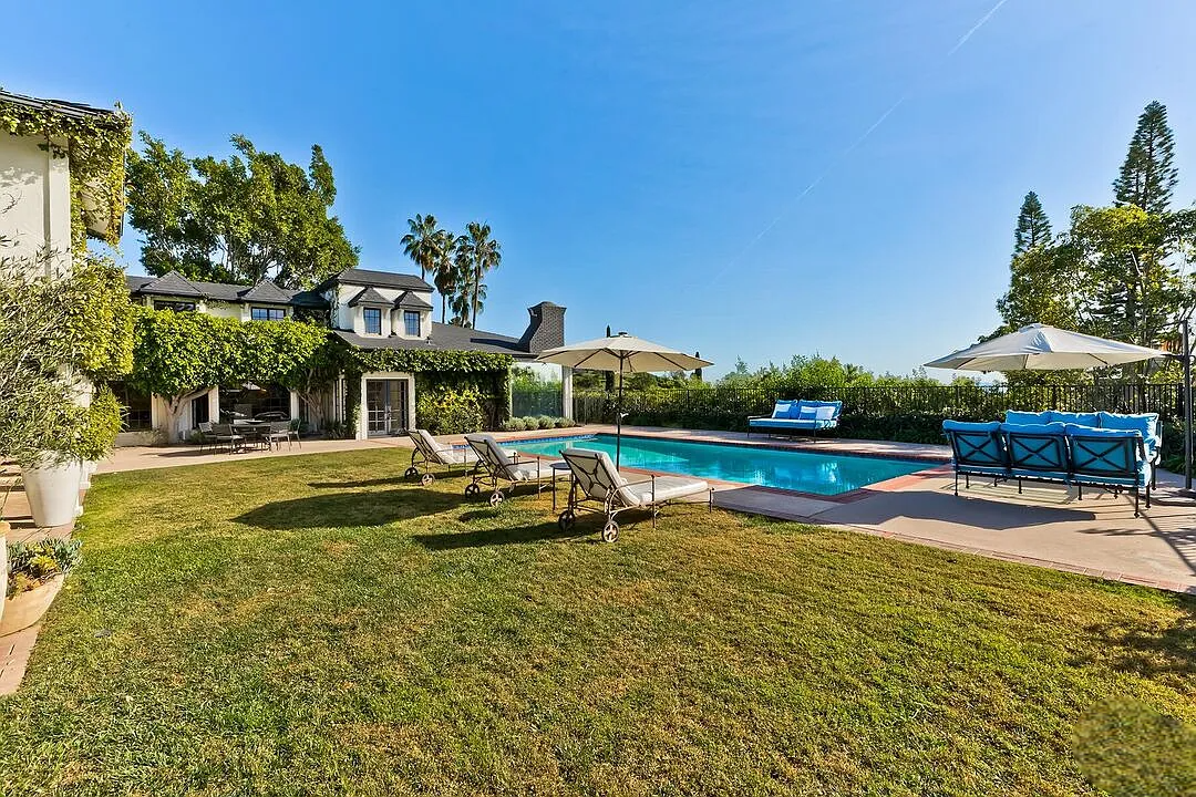 The property is defined by its exceptionally large, lush grounds, providing a level of scale and privacy that is truly unique for the area. Seamless indoor-outdoor flow is achieved through multiple French doors that open to expansive stone terraces, a generous lawn, and an oversized pool with a spa. The chef’s kitchen, equipped with premium stone finishes and custom cabinetry, flows naturally into casual family areas, making the home as functional for daily living as it is for grand-scale entertaining. With a three-car garage and a location just moments from the Sunset Strip, this estate offers an unparalleled retreat for executive relocation or a premier holiday residency.