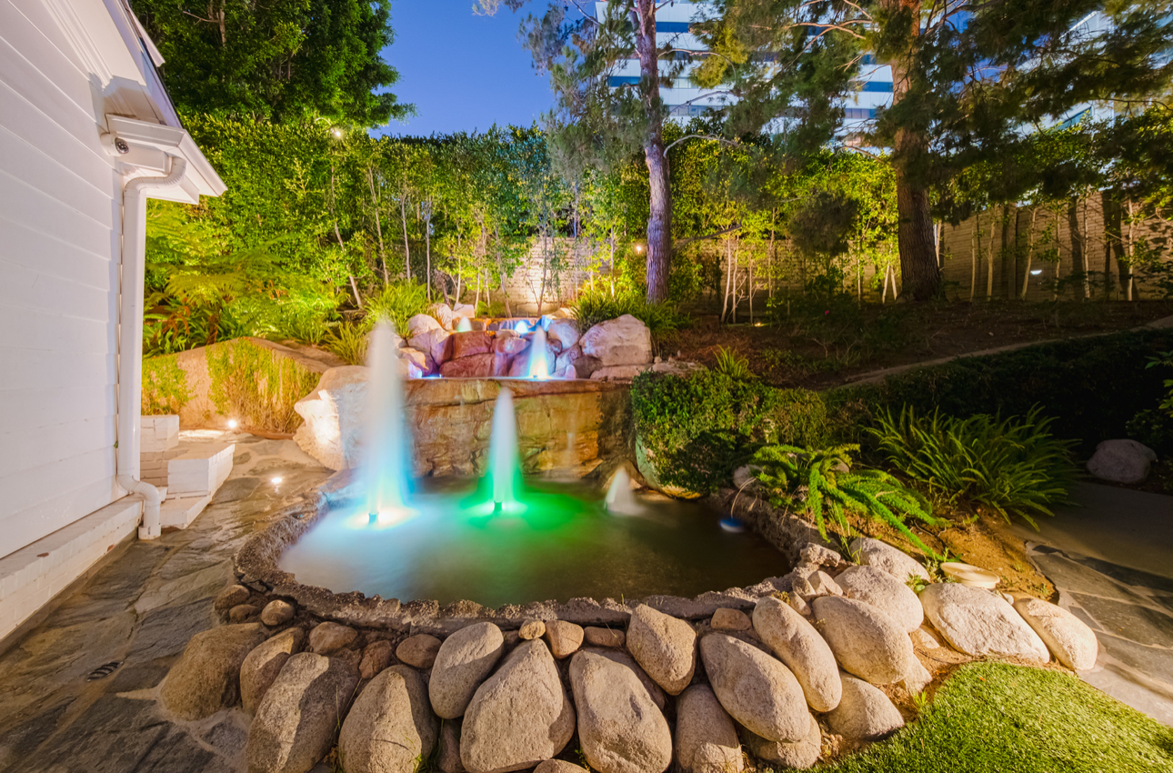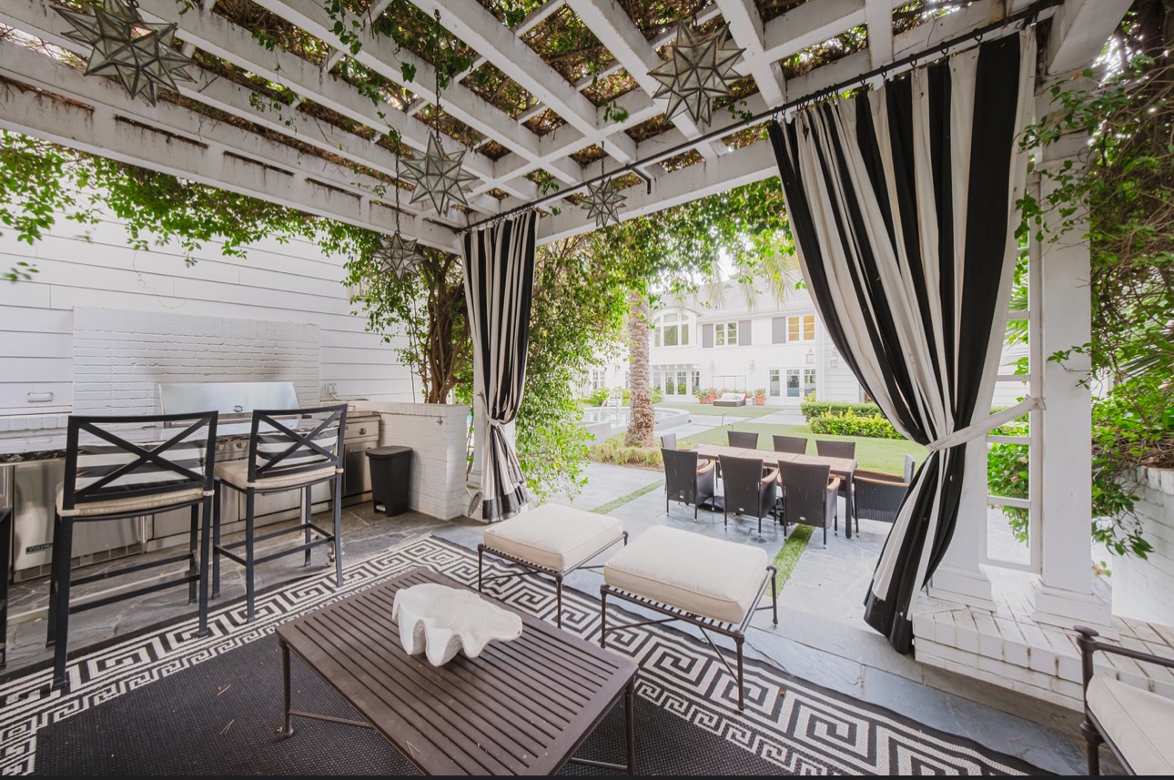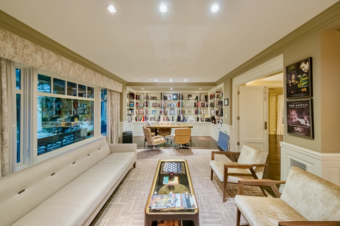 The estate’s entertainment and technology standards are unrivaled, highlighted by an 18-seat private theater designed by Theo Kalomirakis and a dramatic bar set beneath 23-foot ceilings. The entire property is powered by latest-generation Crestron automation, offering integrated control over sound, video, security, and climate at the touch of a button. Outside, the lush, private gardens serve as a secluded oasis, featuring an infinity pool, spa, and a striking water feature. This property is uniquely positioned to meet the demands of the most discerning clients, whether they are seeking a premier venue for a major event or an exceptional setting for an extended stay.