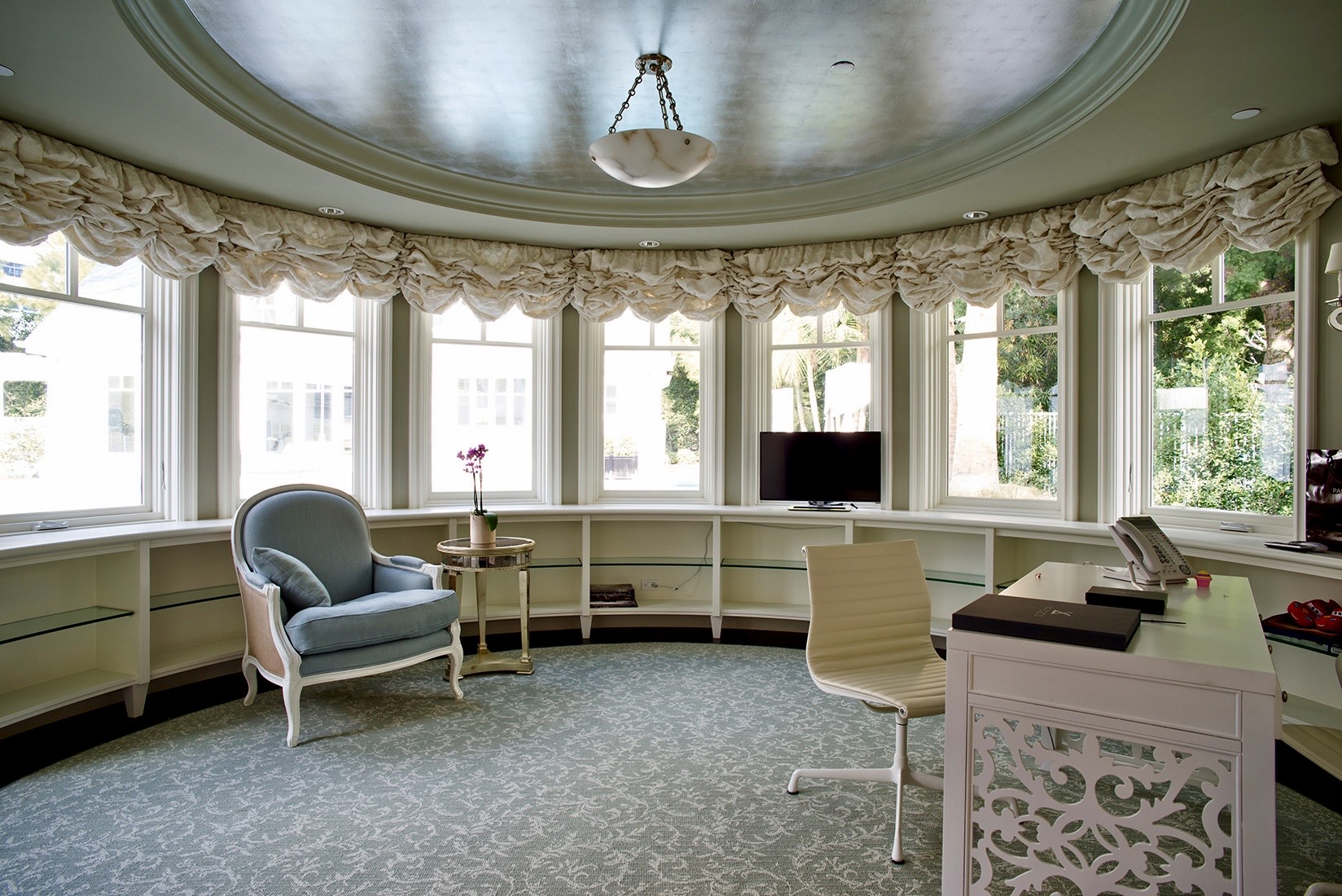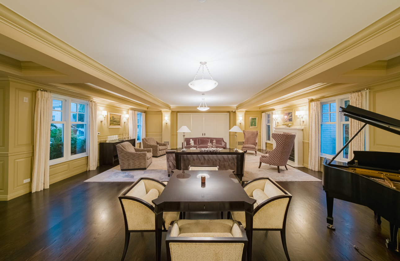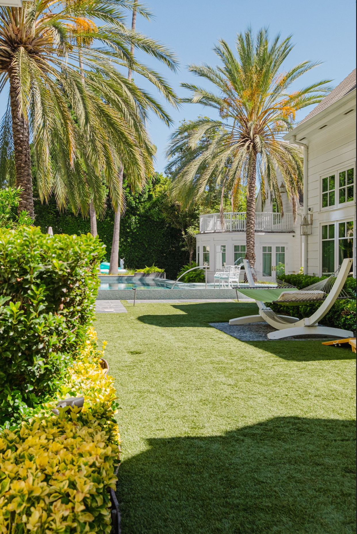 The estate’s entertainment and technology standards are unrivaled, highlighted by an 18-seat private theater designed by Theo Kalomirakis and a dramatic bar set beneath 23-foot ceilings. The entire property is powered by latest-generation Crestron automation, offering integrated control over sound, video, security, and climate at the touch of a button. Outside, the lush, private gardens serve as a secluded oasis, featuring an infinity pool, spa, and a striking water feature. This property is uniquely positioned to meet the demands of the most discerning clients, whether they are seeking a premier venue for a major event or an exceptional setting for an extended stay.